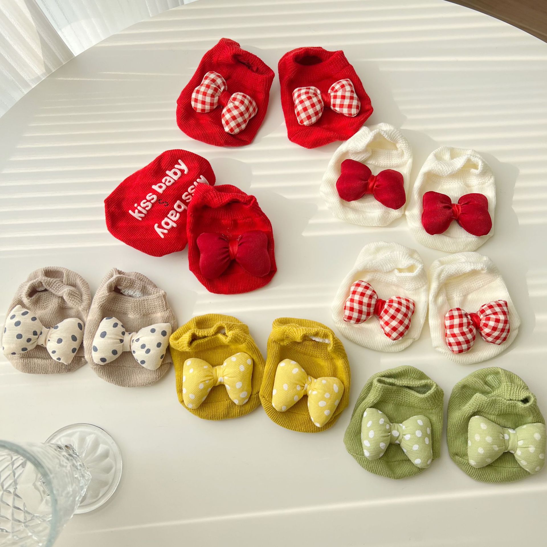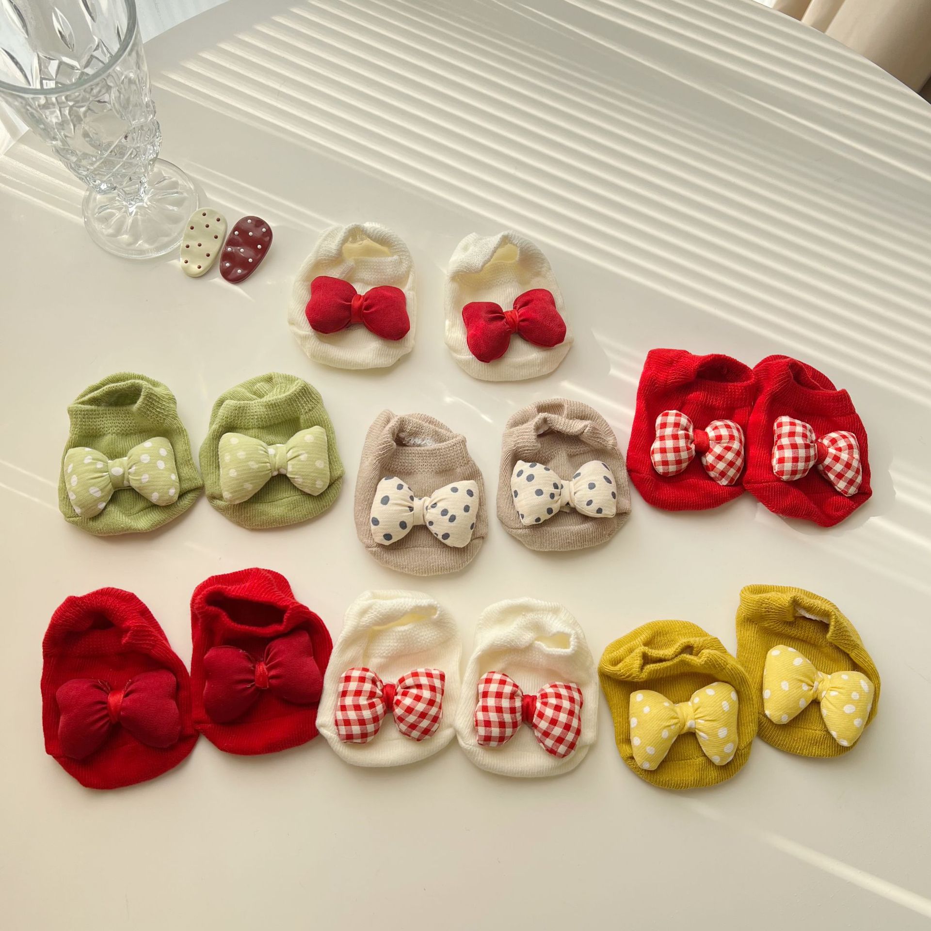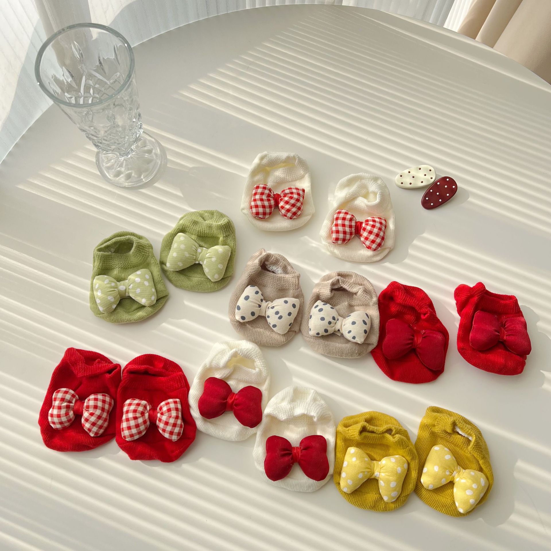 새로운 아기 미끄럼 방지 바닥 양말 아기 유아 짧은 보트 양말 공주 스타일 보우 도트 체크 어린이 양말