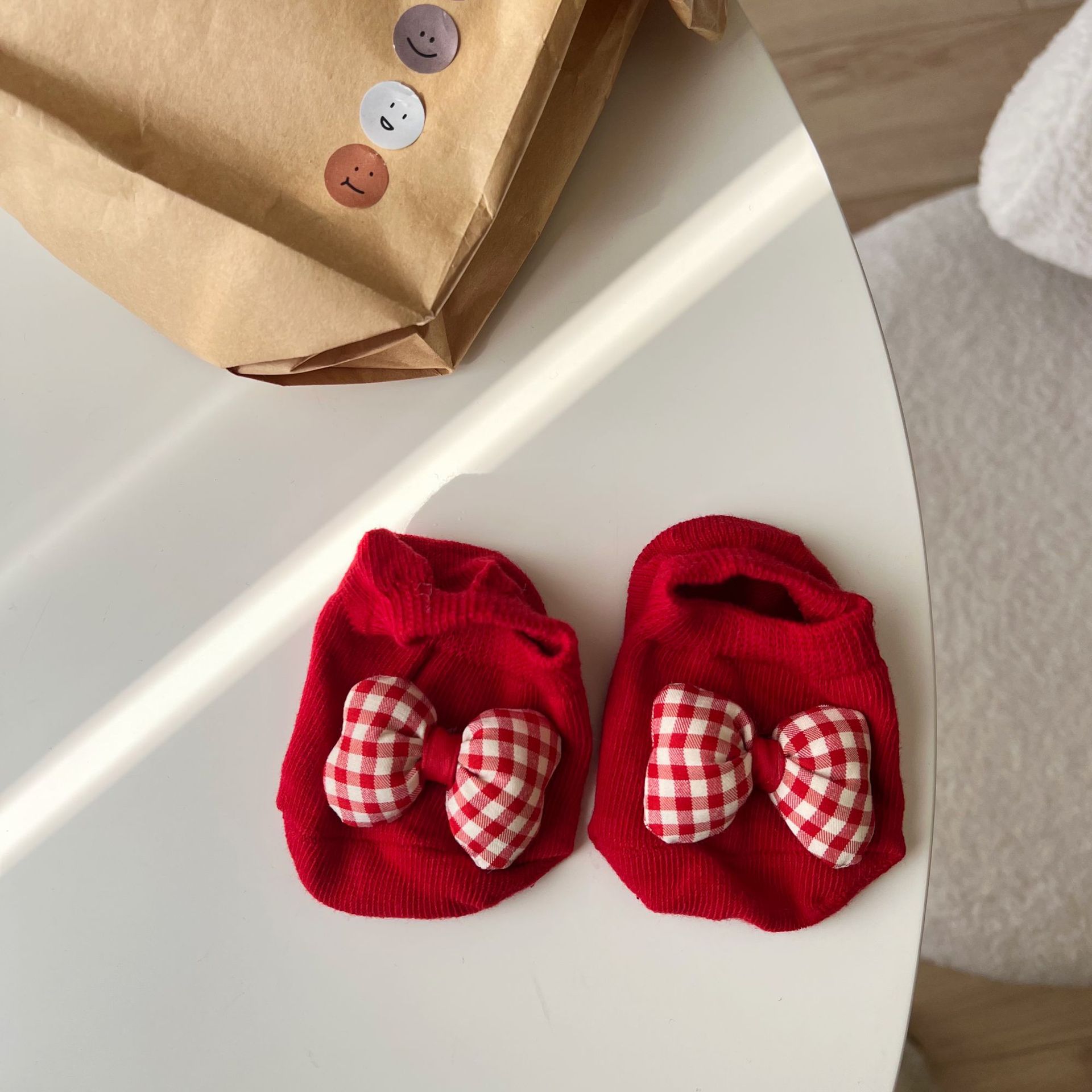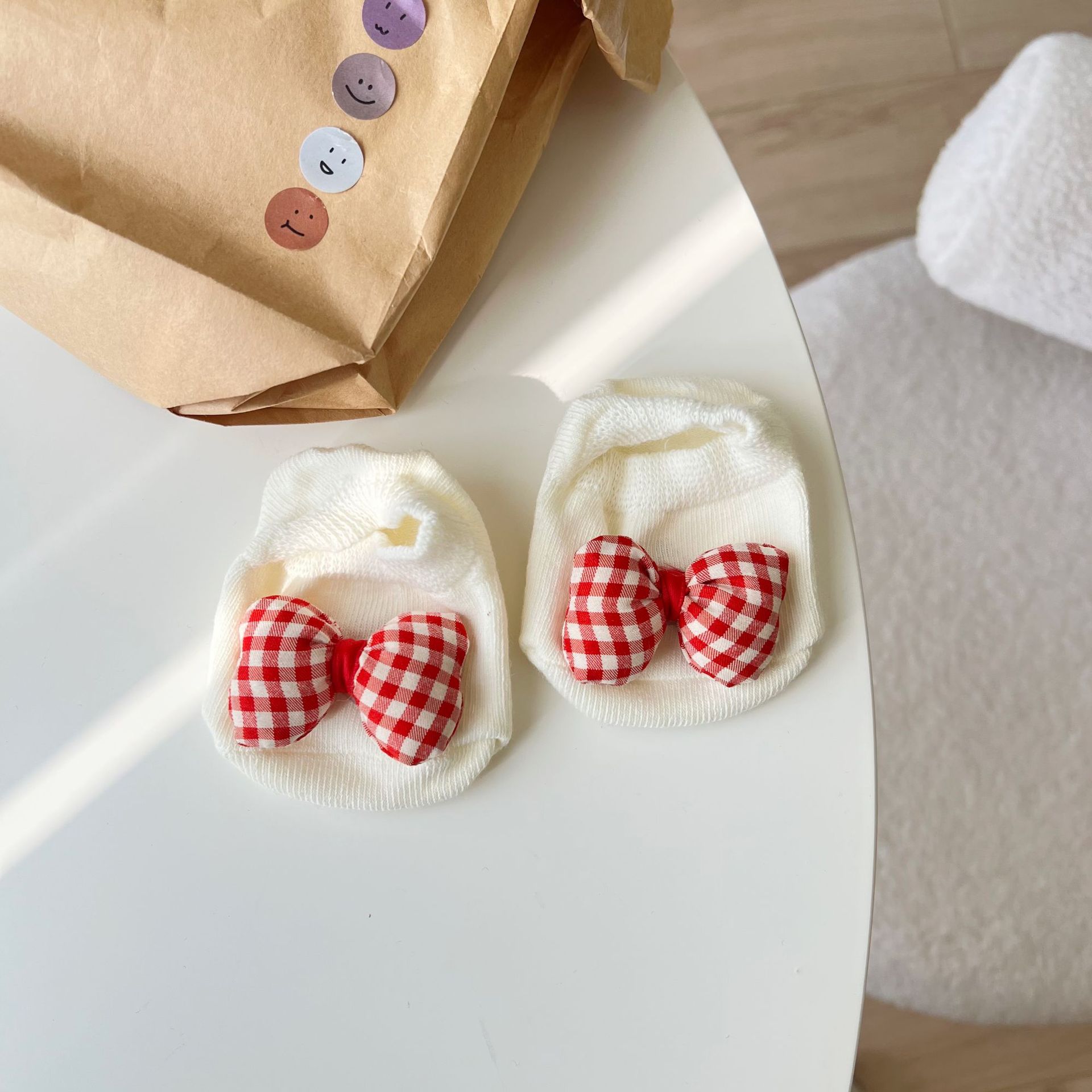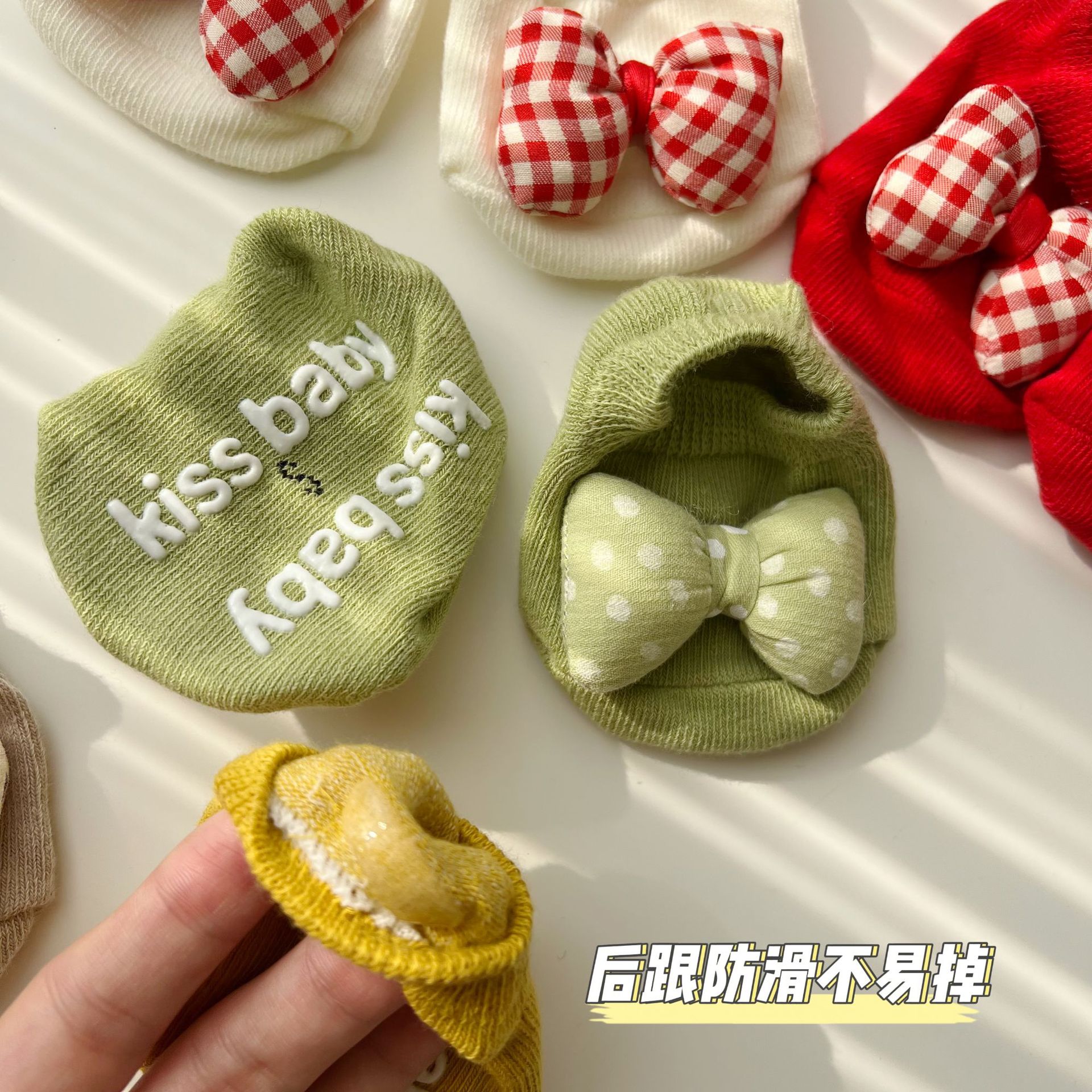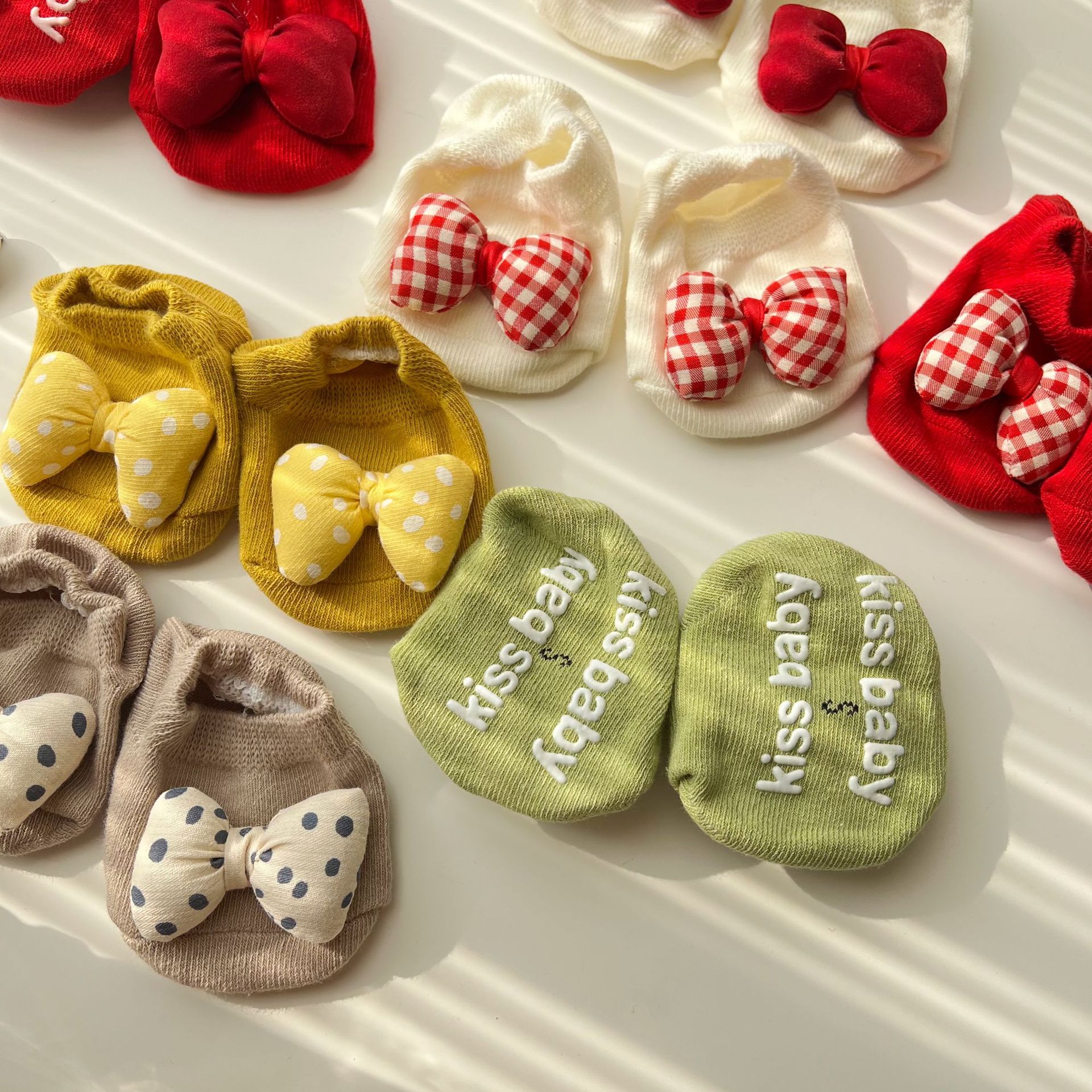 새로운 아기 미끄럼 방지 바닥 양말 아기 유아 짧은 보트 양말 공주 스타일 보우 도트 체크 어린이 양말