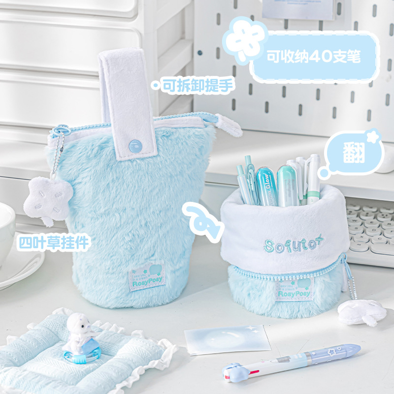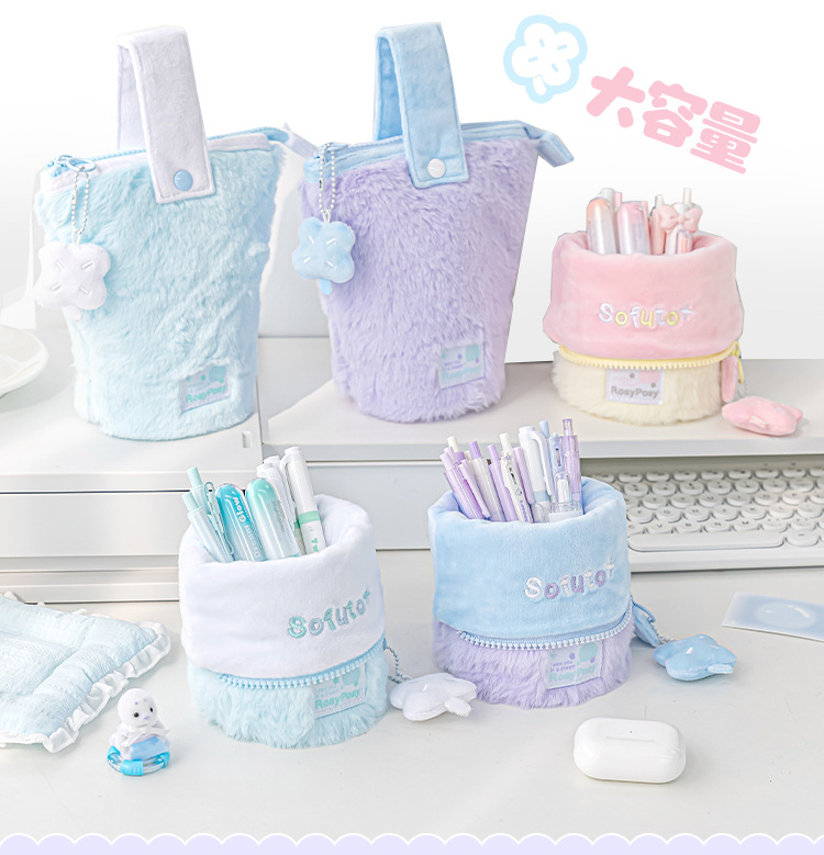 RosyPosy 부드러운 sofuto 플러시 수직 플립 휴대용 펜 케이스 귀여운 대용량 문구 펜 홀더