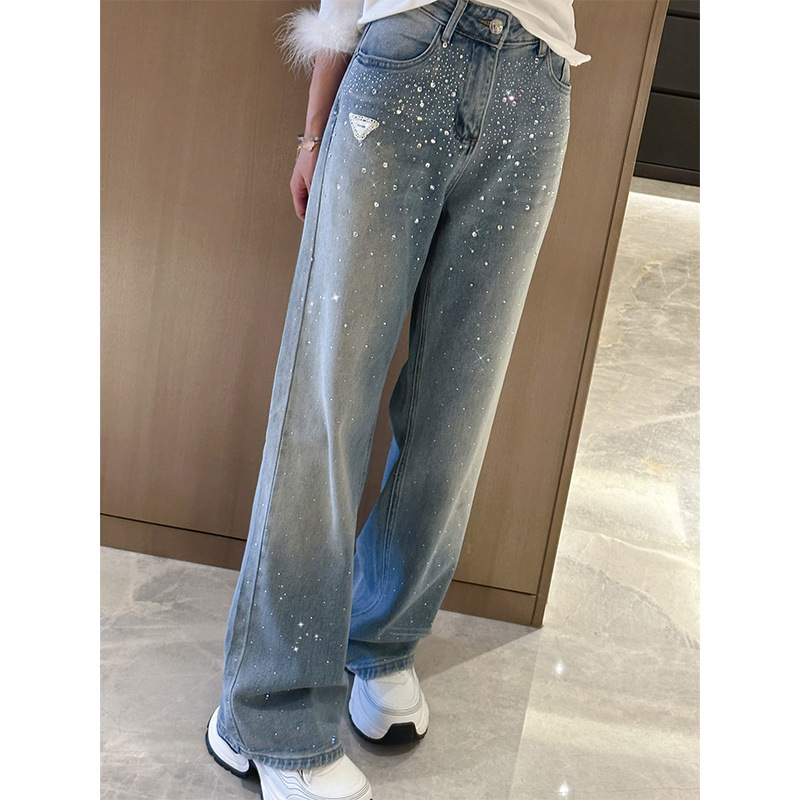레트로 중공업 핫 드릴링 디자인 센스 스트레이트 청바지 여성용 봄과 여름 2024 새로운 배 모양의 바디 통비 와이드 다리 바지스토어 가기