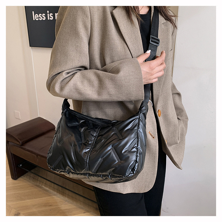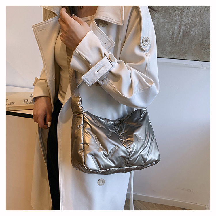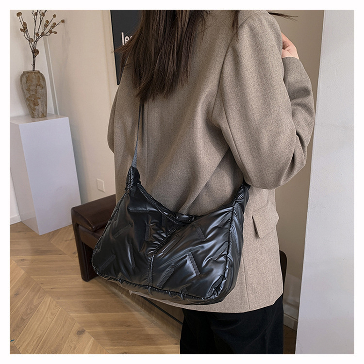 2024 새로운 패션 면 패딩 재킷 어깨 가방 나일론 헝겊 가방 여성용 캐주얼 토트 백 대용량 가을 및 겨울 캐주얼 가방