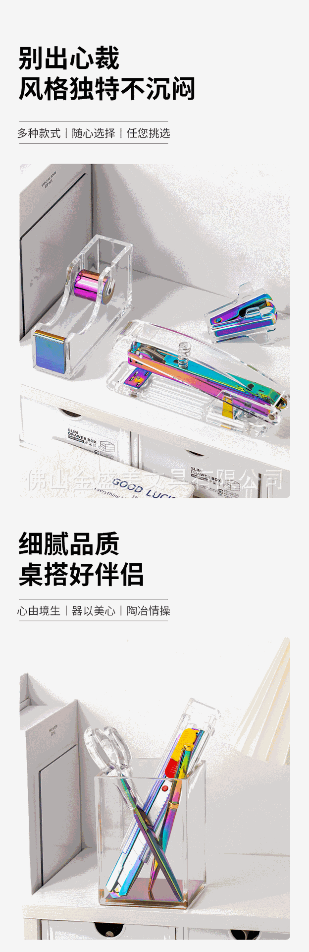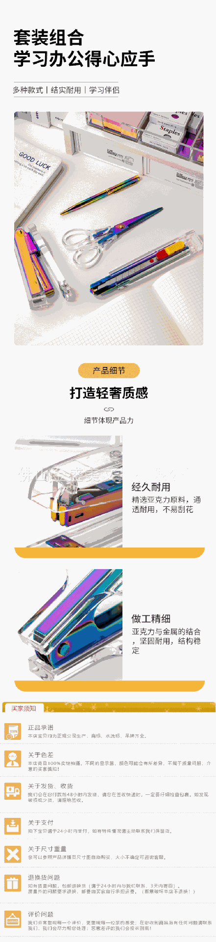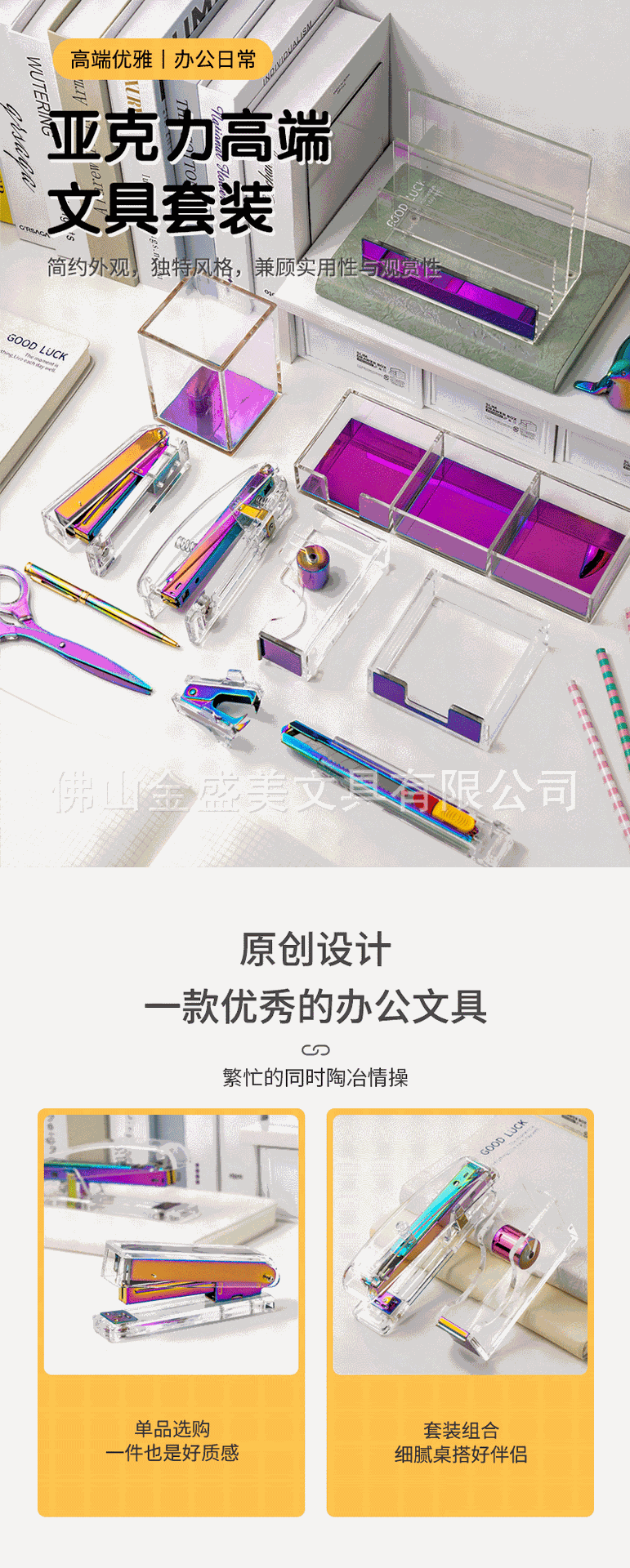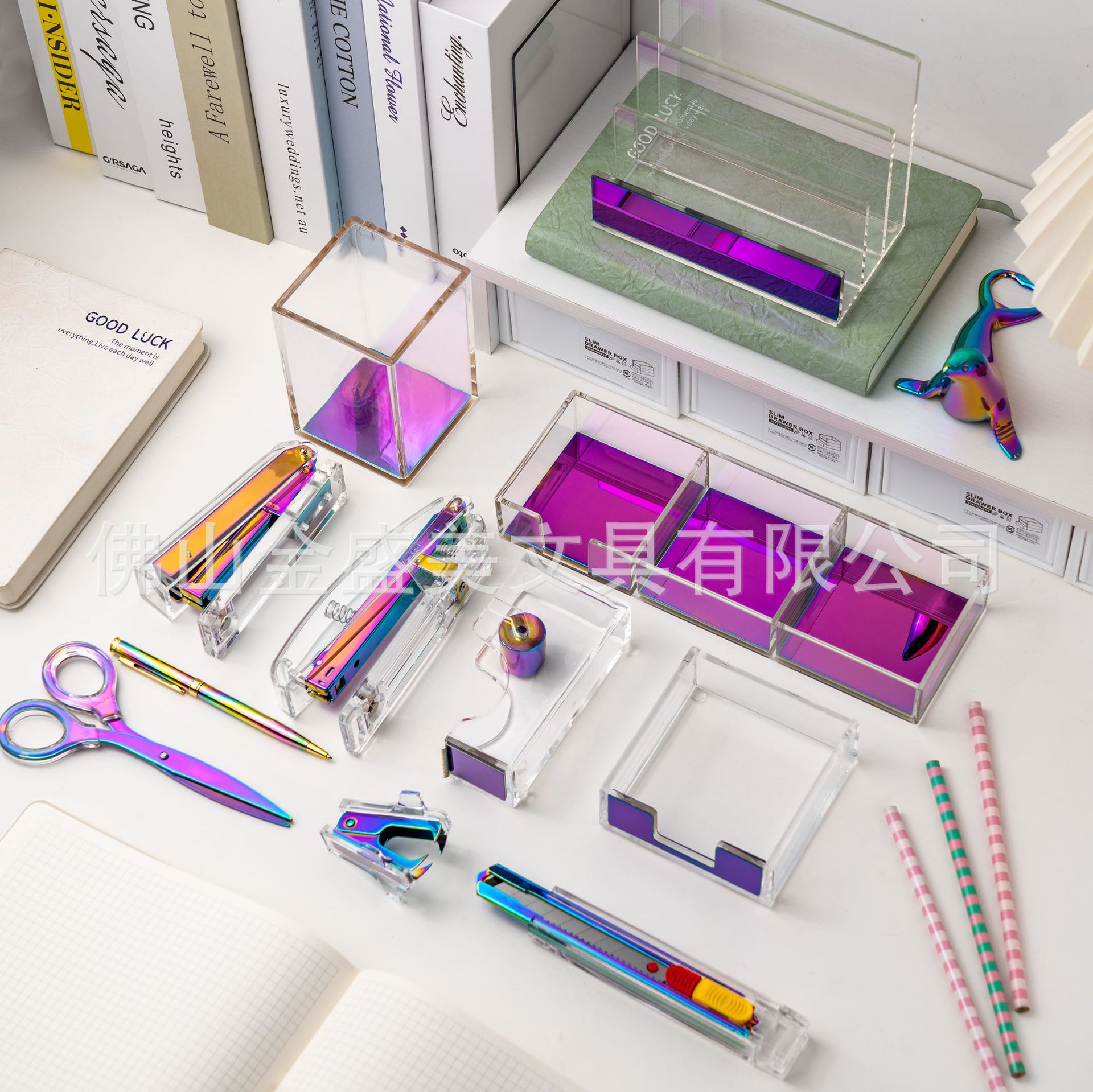 창조적 인 투명 아크릴 다채로운 세트 스테이플러 파일 저장 사무실 학생 학습 데스크탑 용품 도매