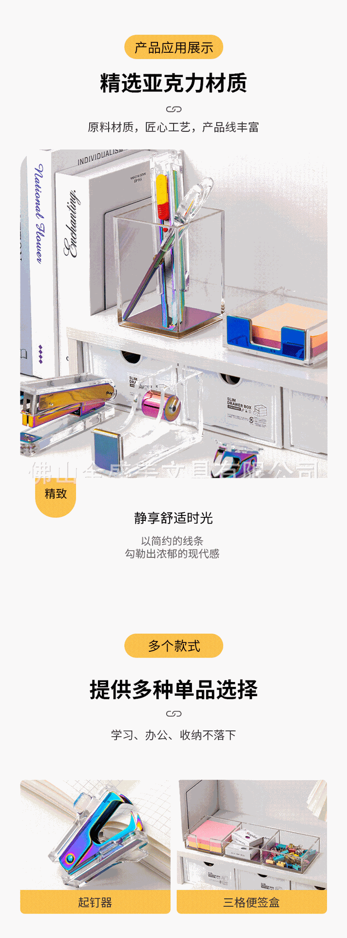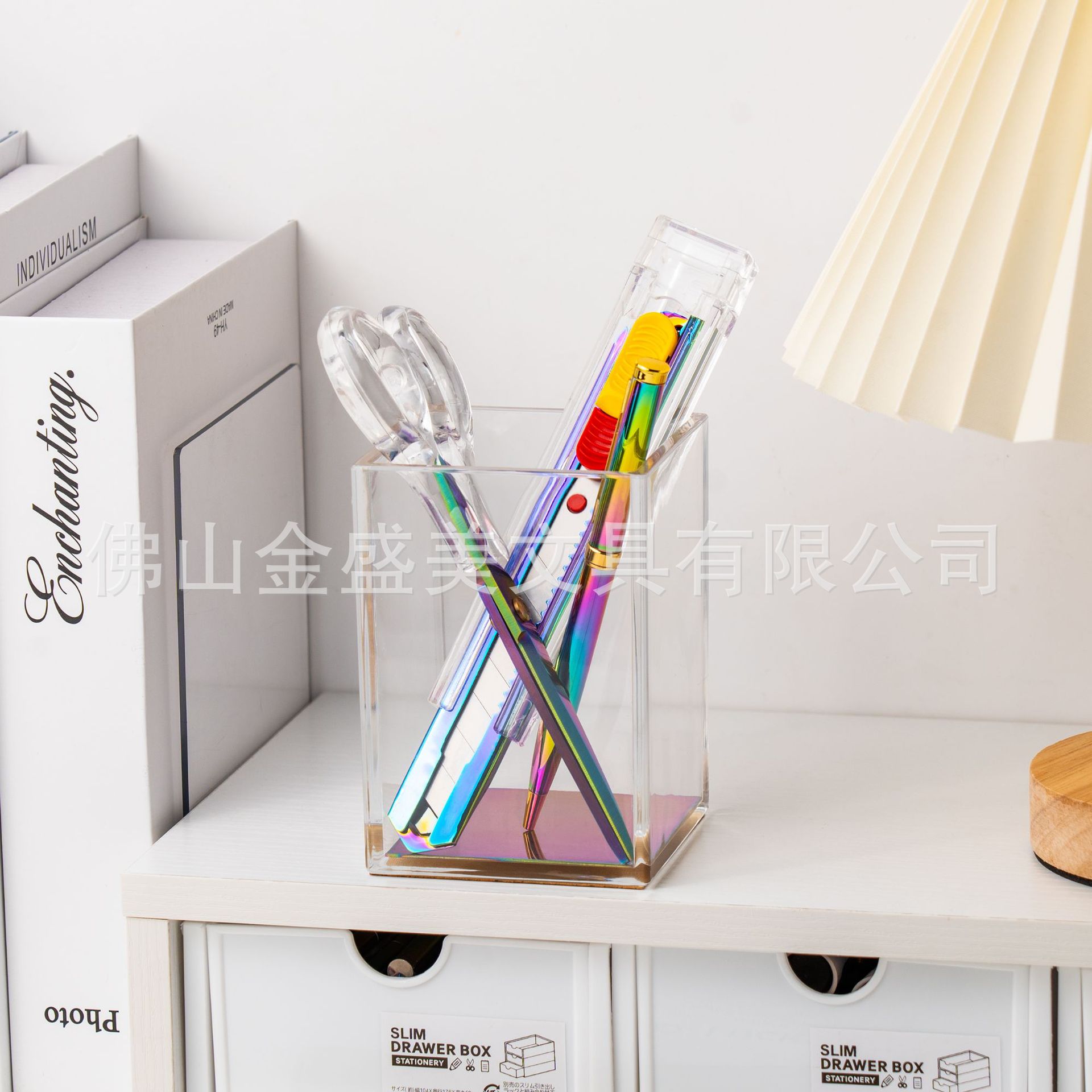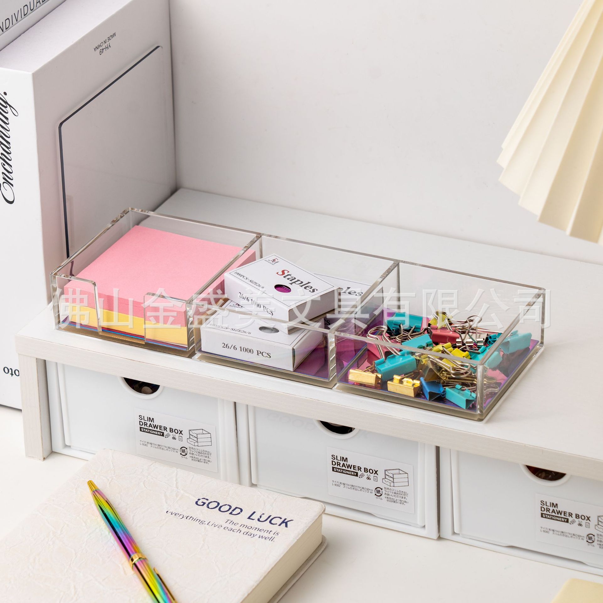 창조적 인 투명 아크릴 다채로운 세트 스테이플러 파일 저장 사무실 학생 학습 데스크탑 용품 도매