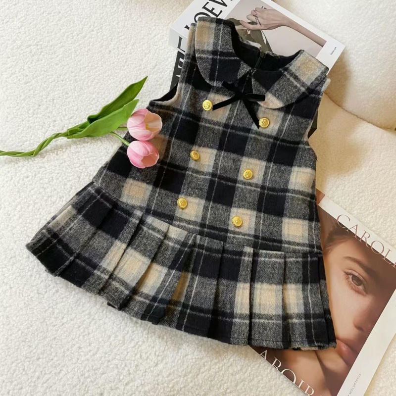 여자 아동복 2025 겨울 민소매 격자 무늬 드레스 여자 한국 패션 퀼트 두꺼운 따뜻한 드레스스토어 가기