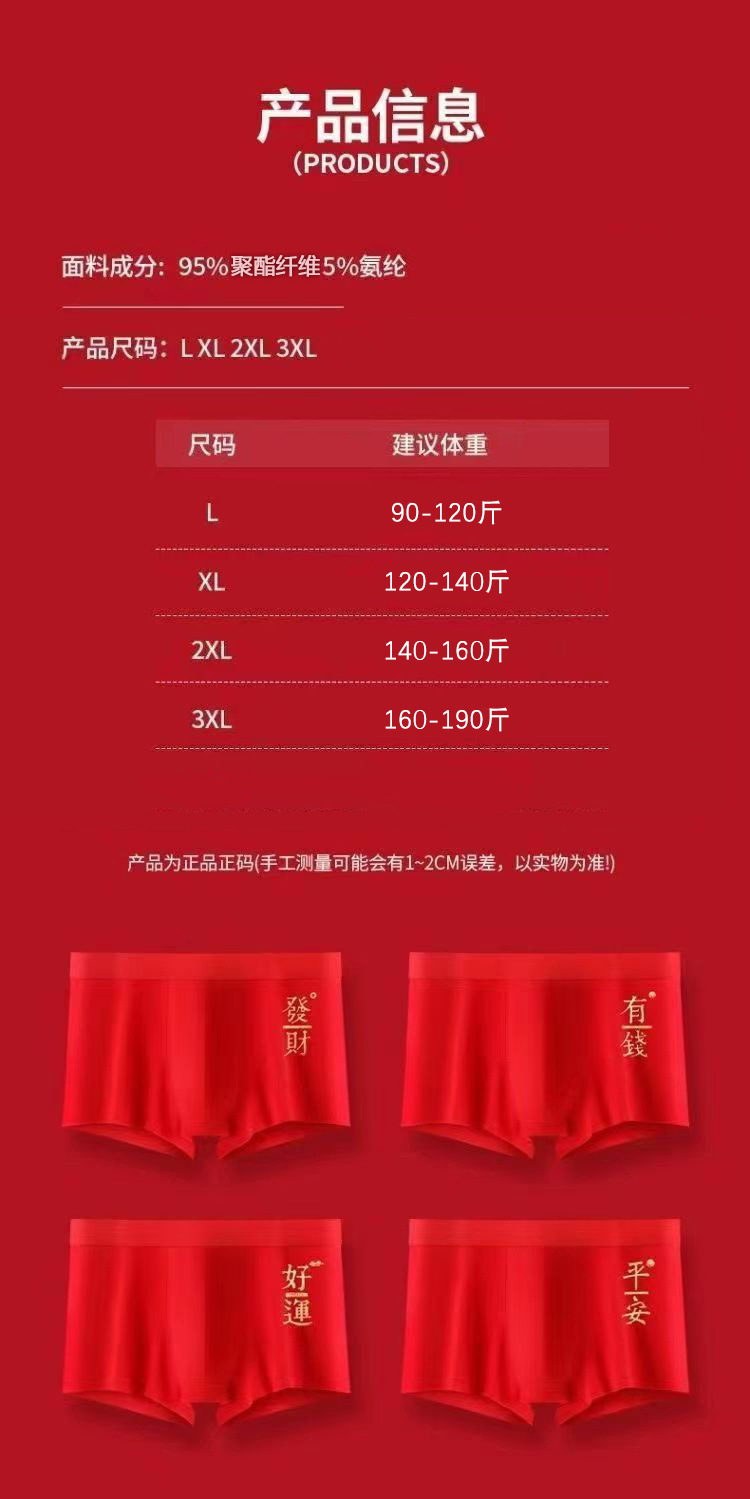뱀의 새해 선물 속옷 도매 세대의 통기성 뱀 년 플러스 사이즈 브림 니언 남성용 빨간 속옷 남성용 복서 바지스토어 가기