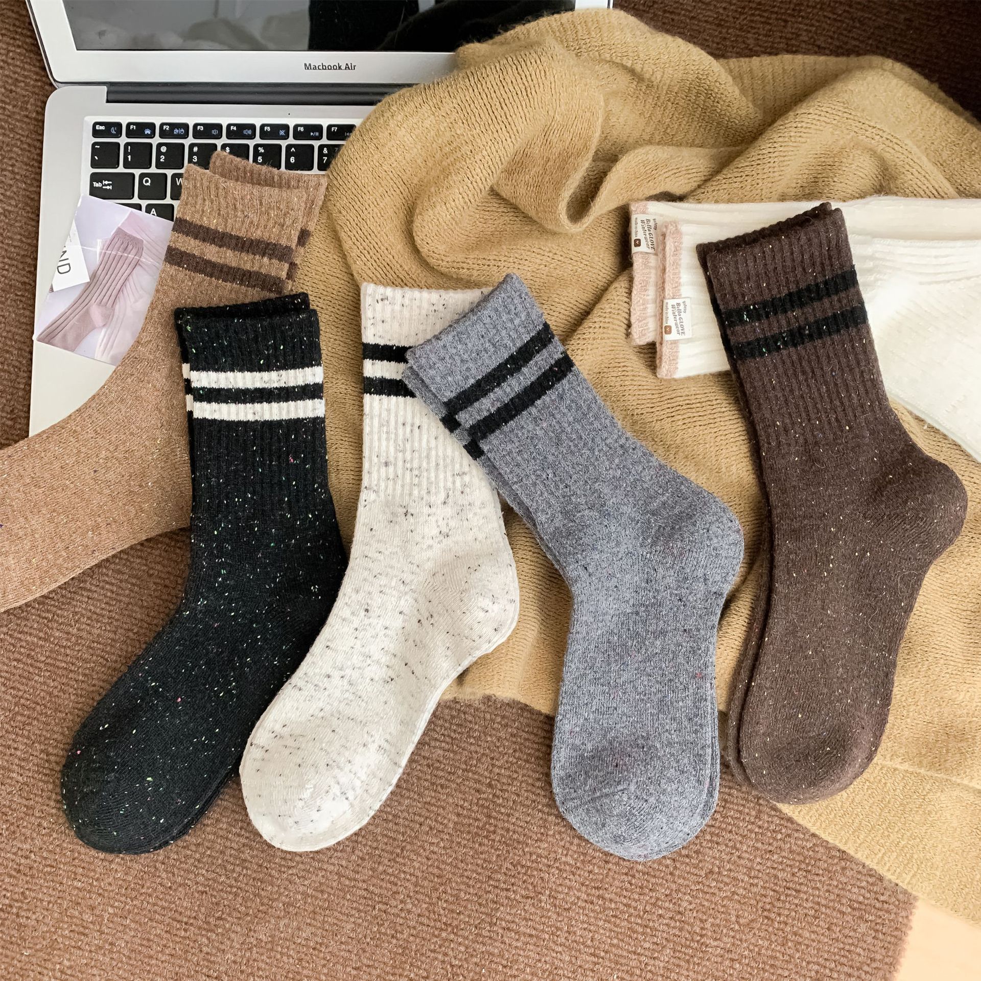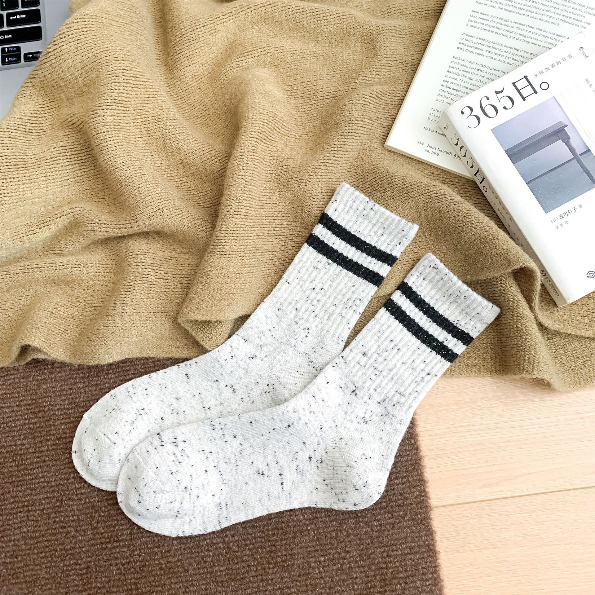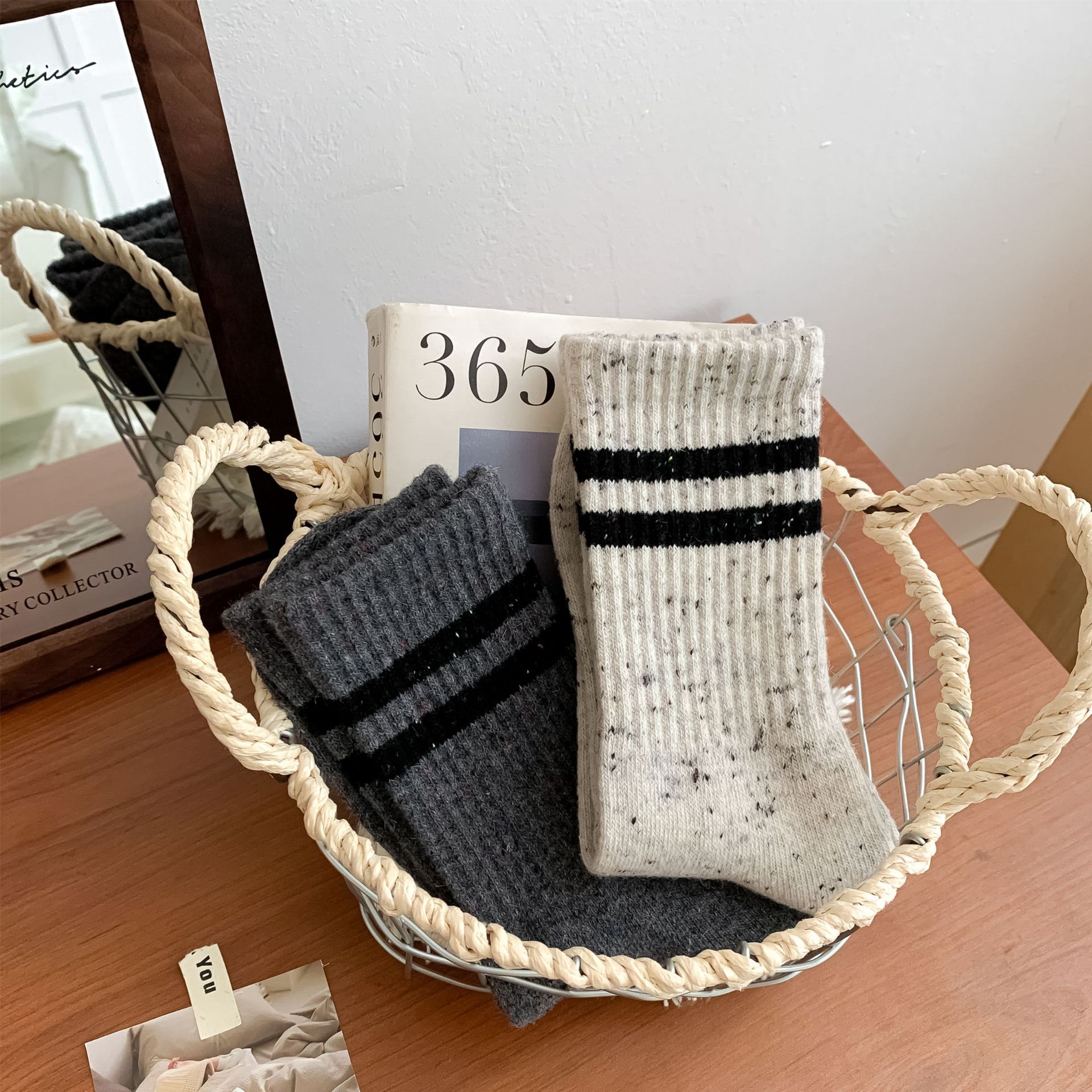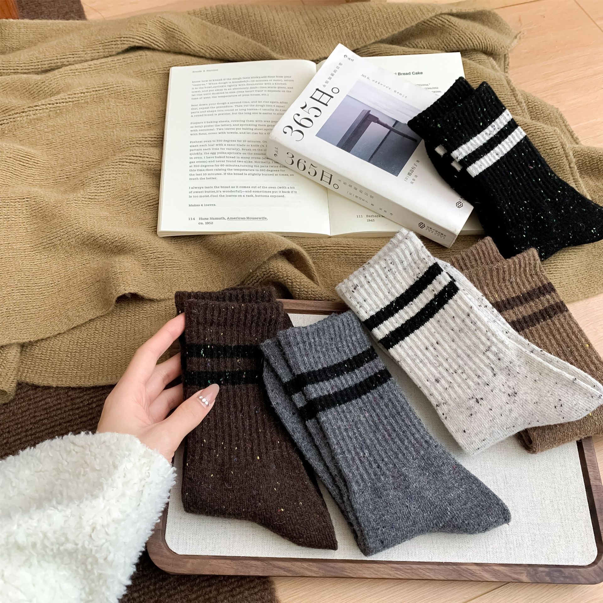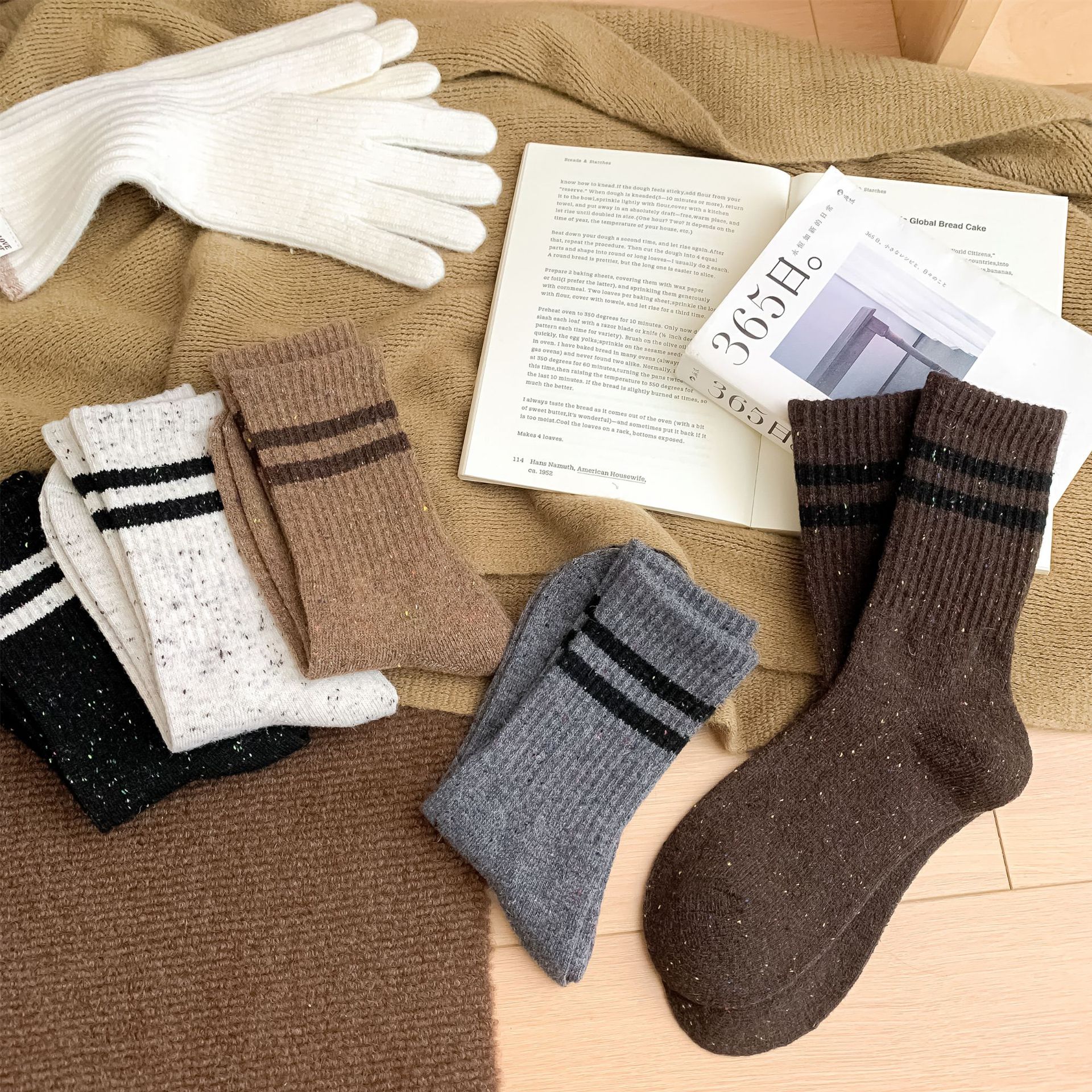 2024 년 가을과 겨울 새로운 2 바 포인트 원사 여성용 미드 튜브 양말 두꺼운 일본 단순 올 매치 따뜻한 팩