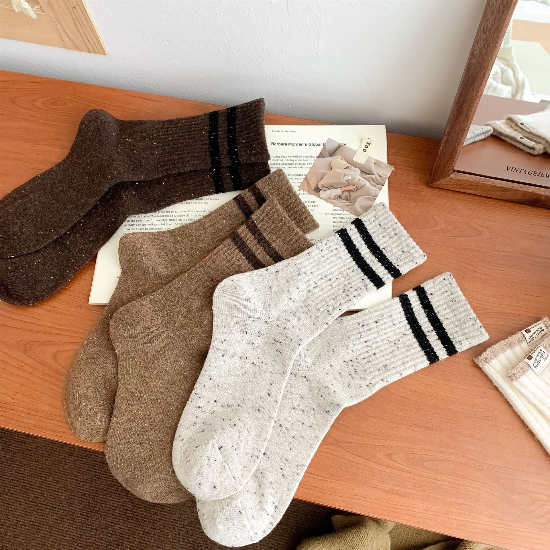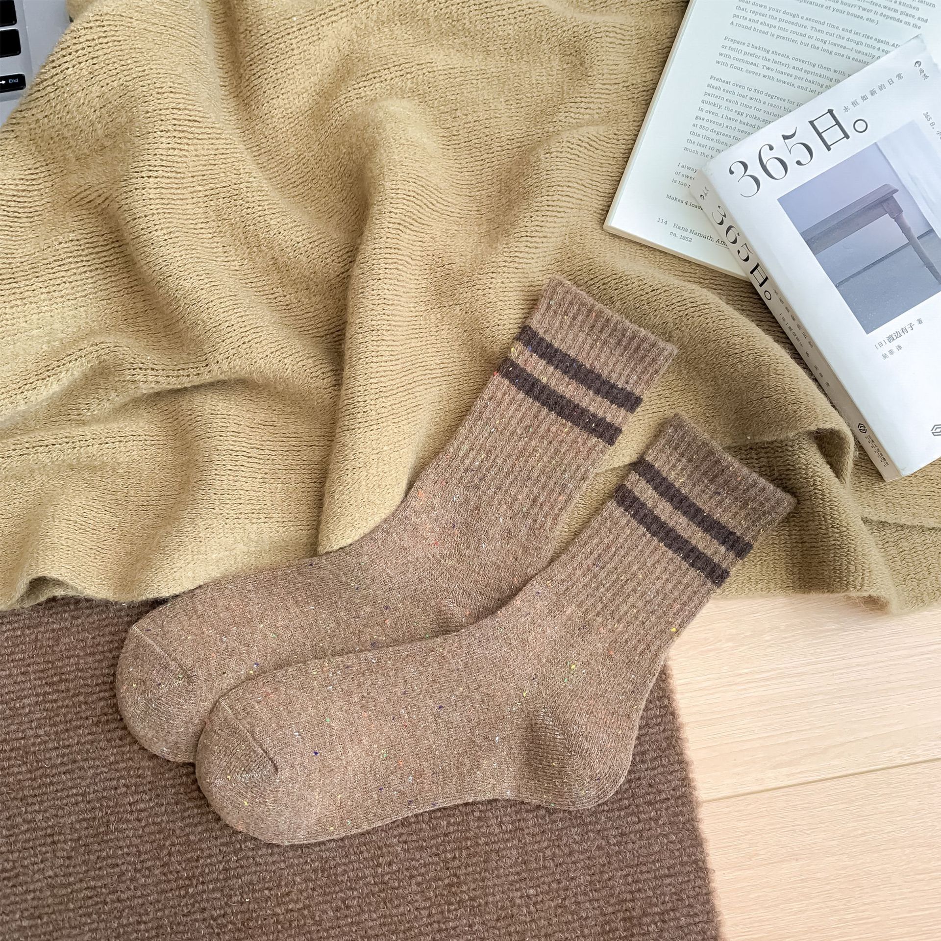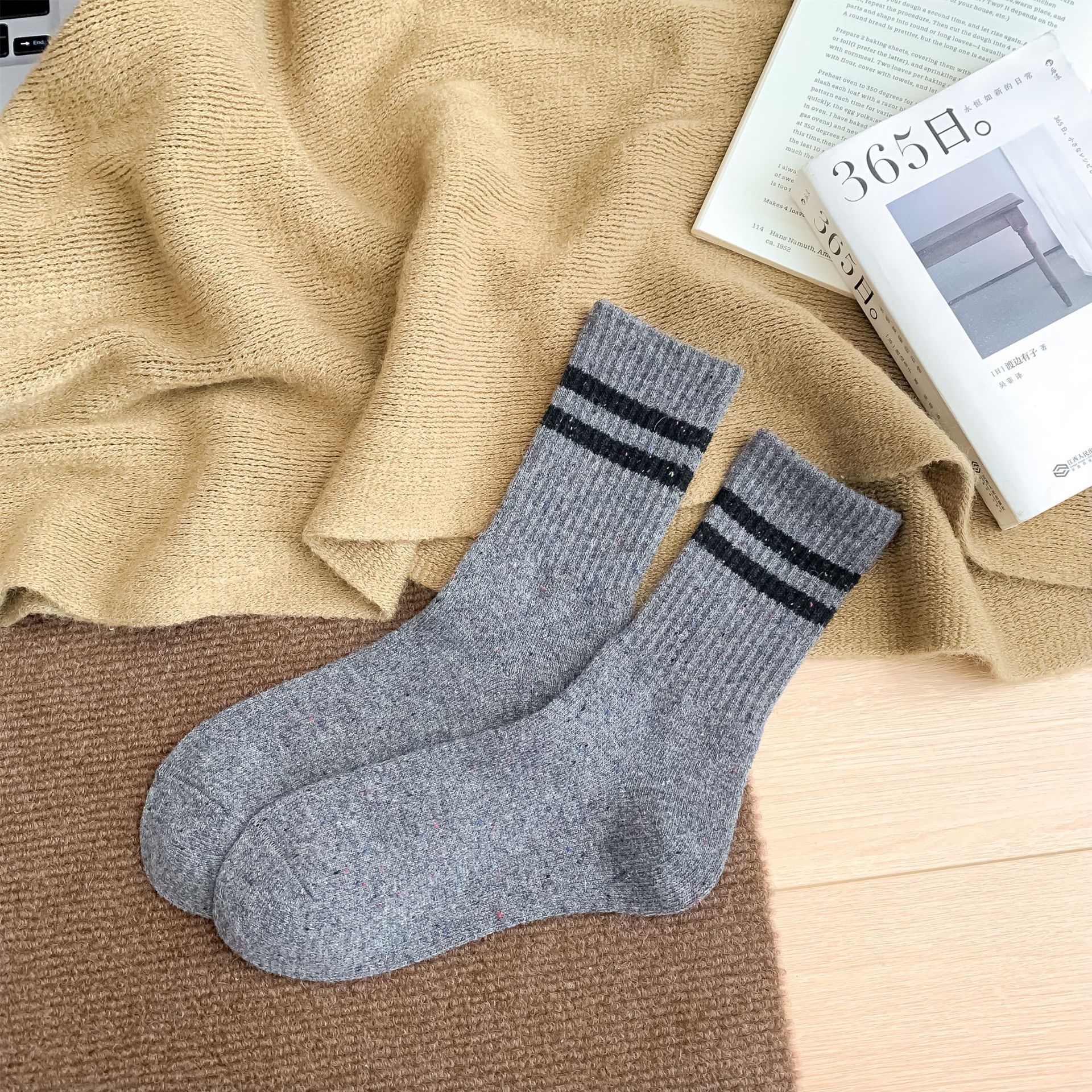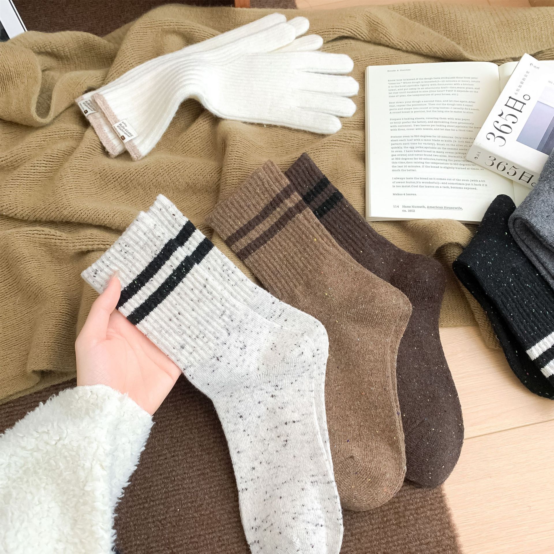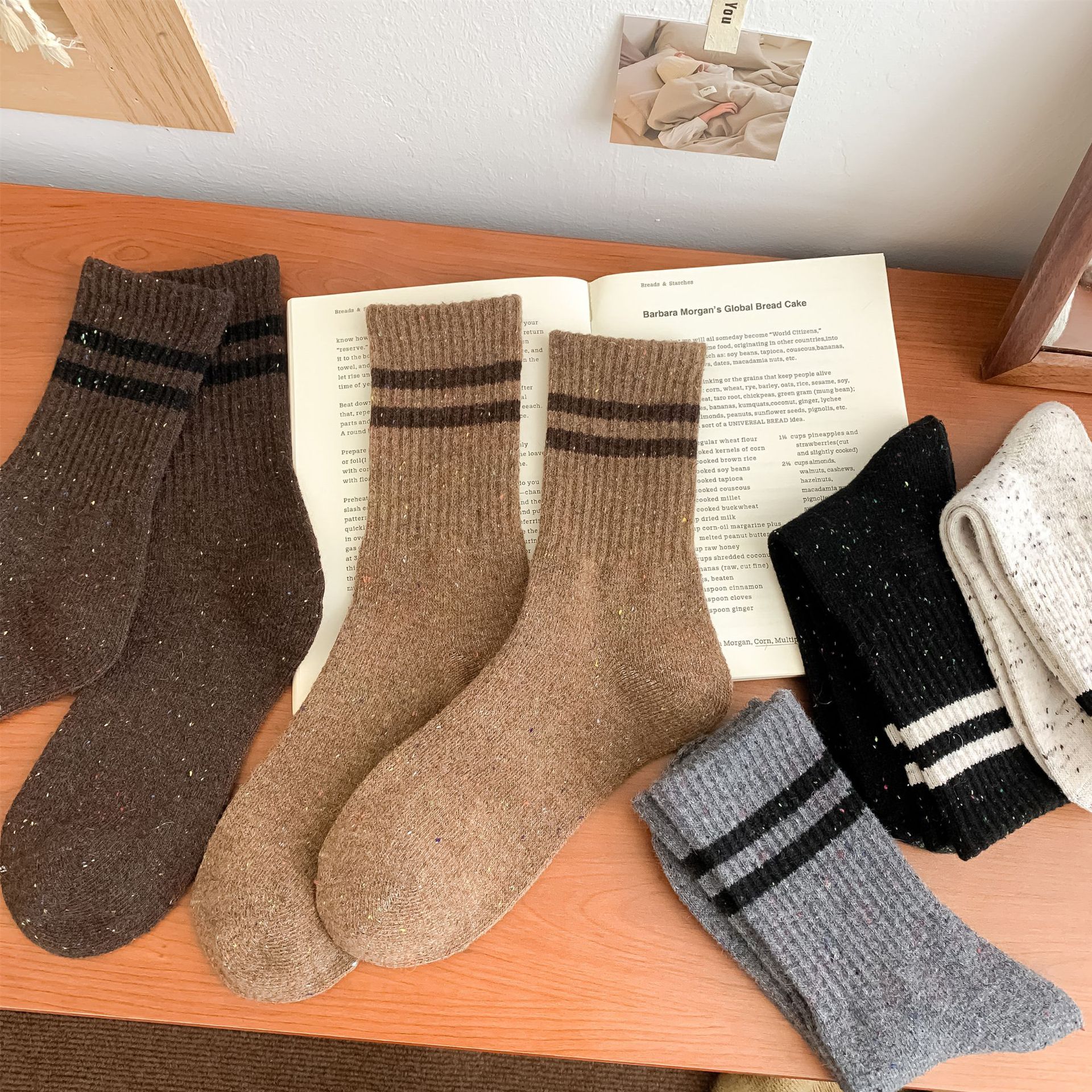 2024 년 가을과 겨울 새로운 2 바 포인트 원사 여성용 미드 튜브 양말 두꺼운 일본 단순 올 매치 따뜻한 팩