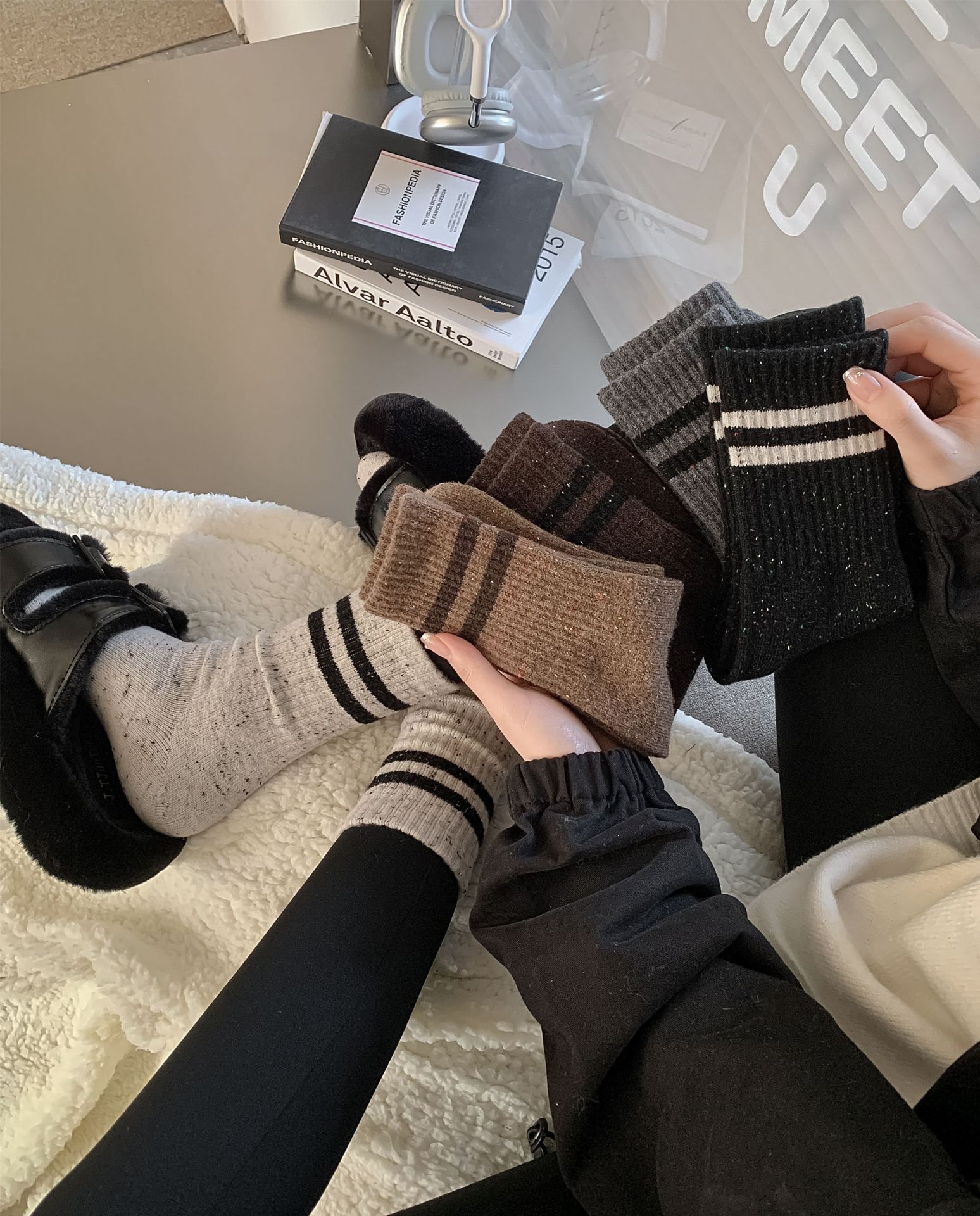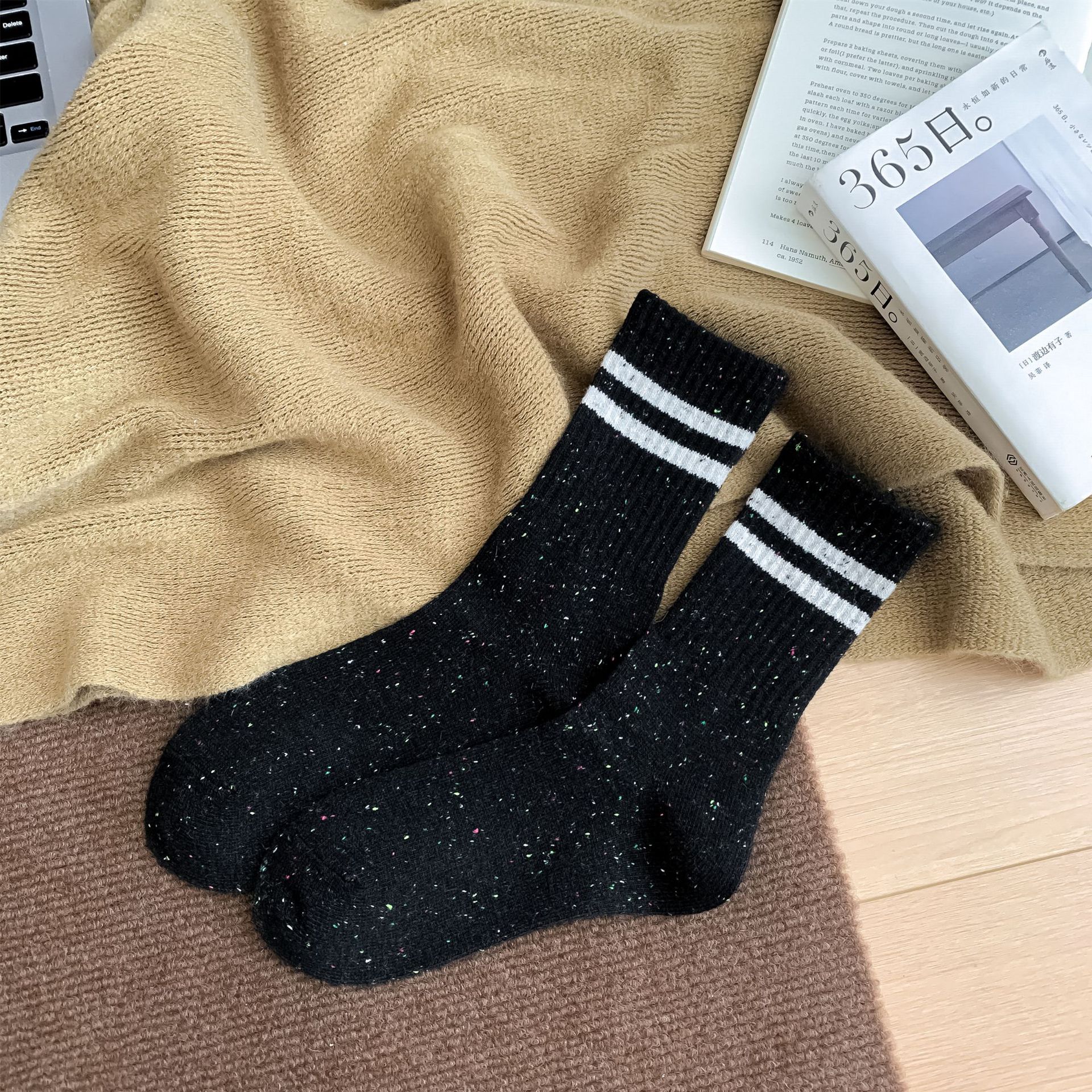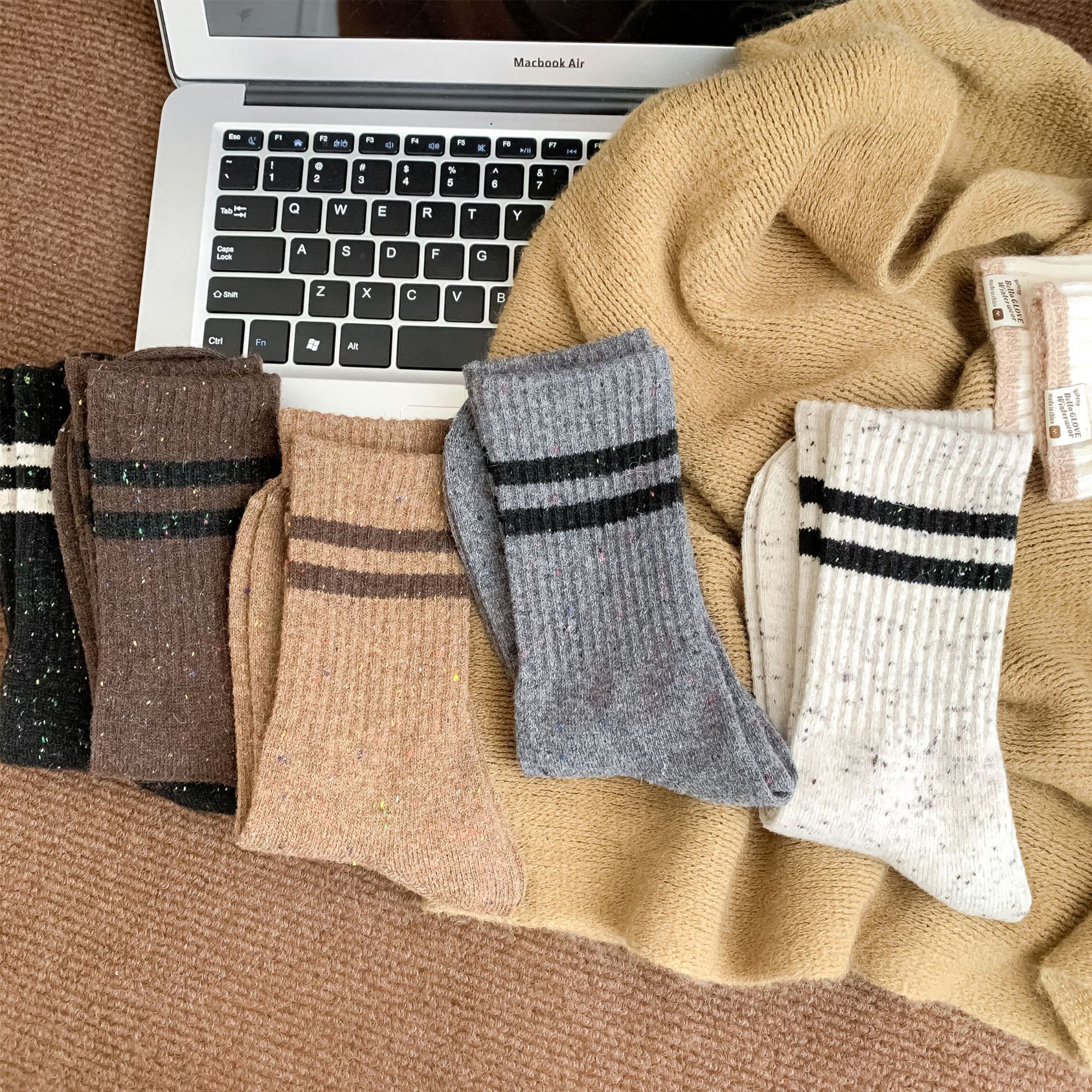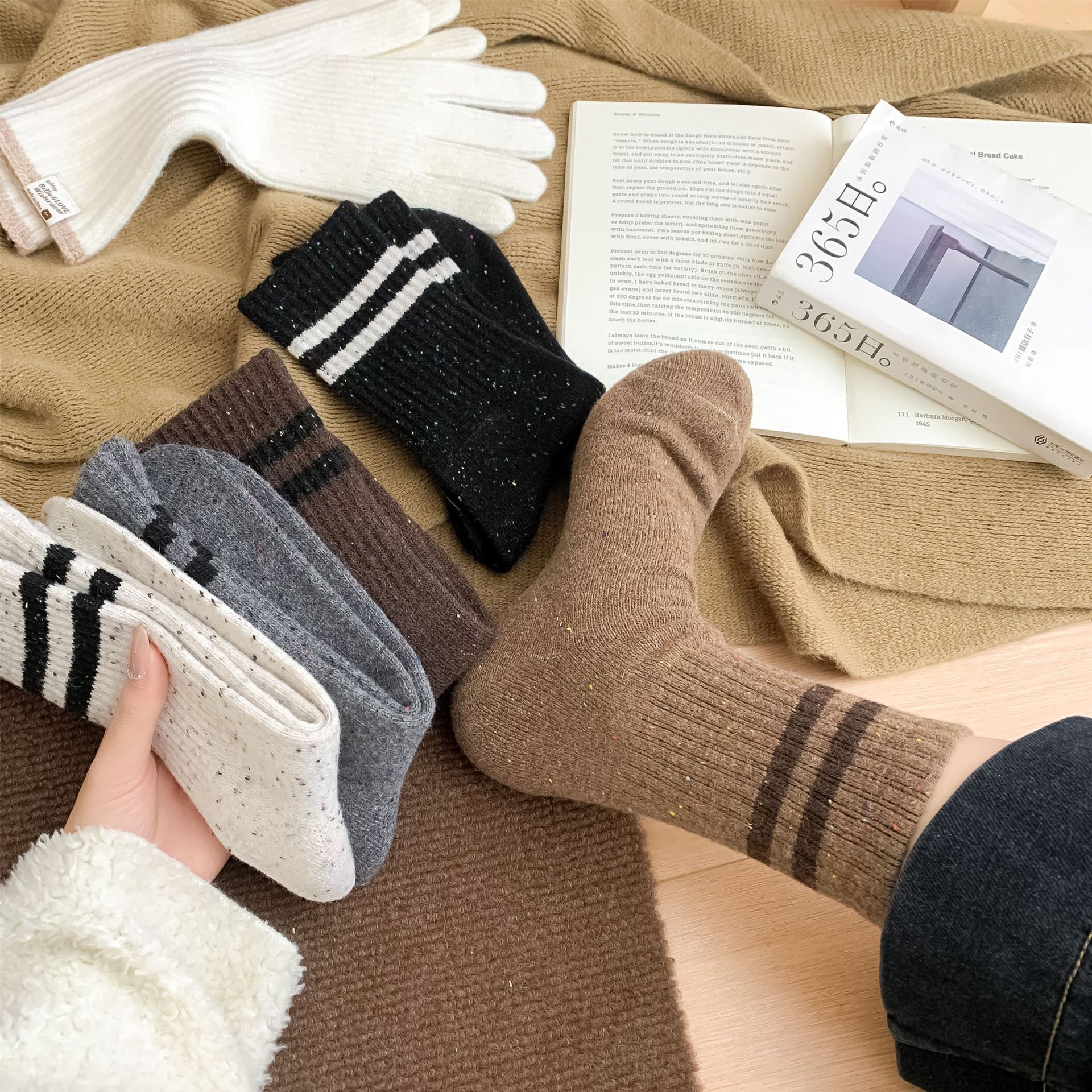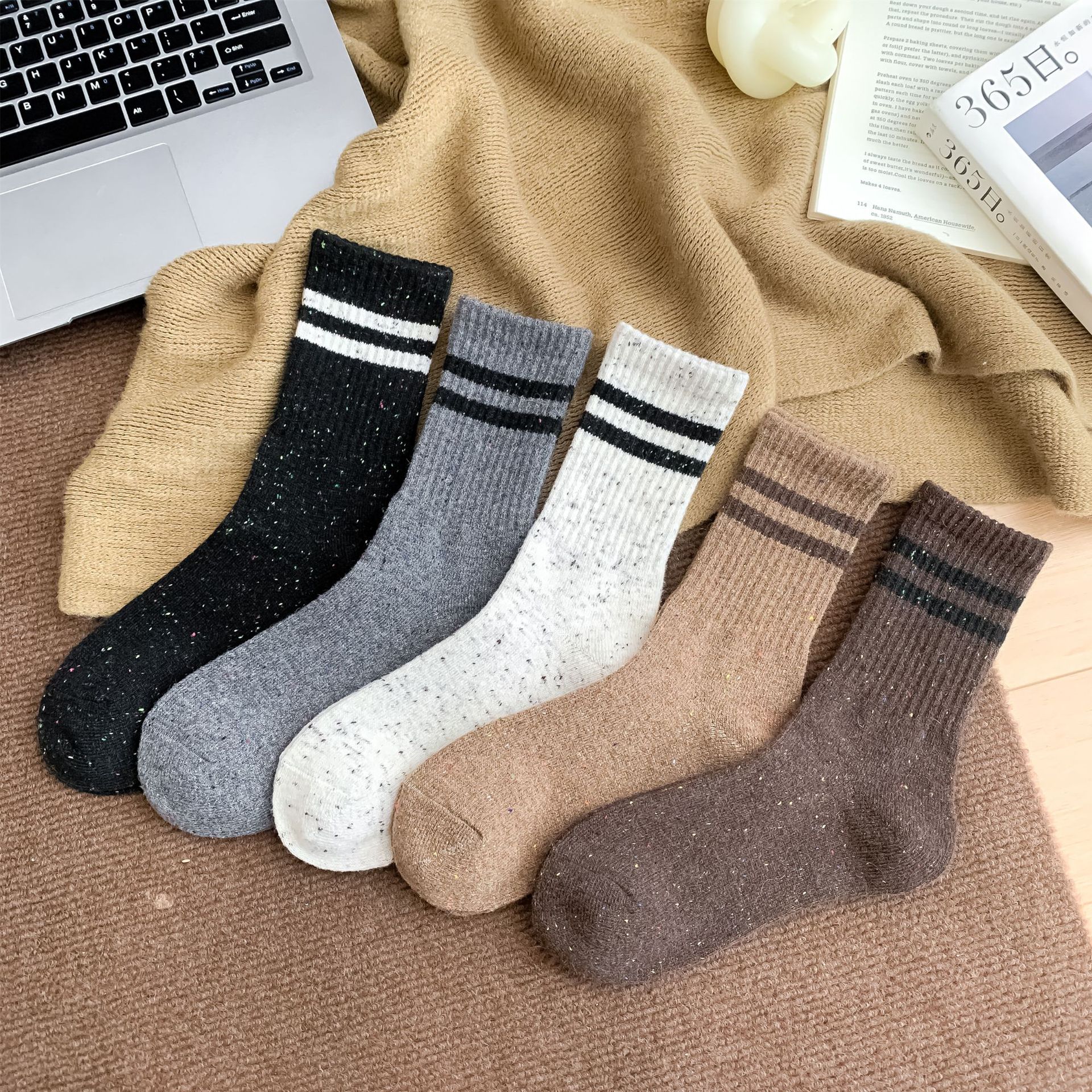 2024 년 가을과 겨울 새로운 2 바 포인트 원사 여성용 미드 튜브 양말 두꺼운 일본 단순 올 매치 따뜻한 팩