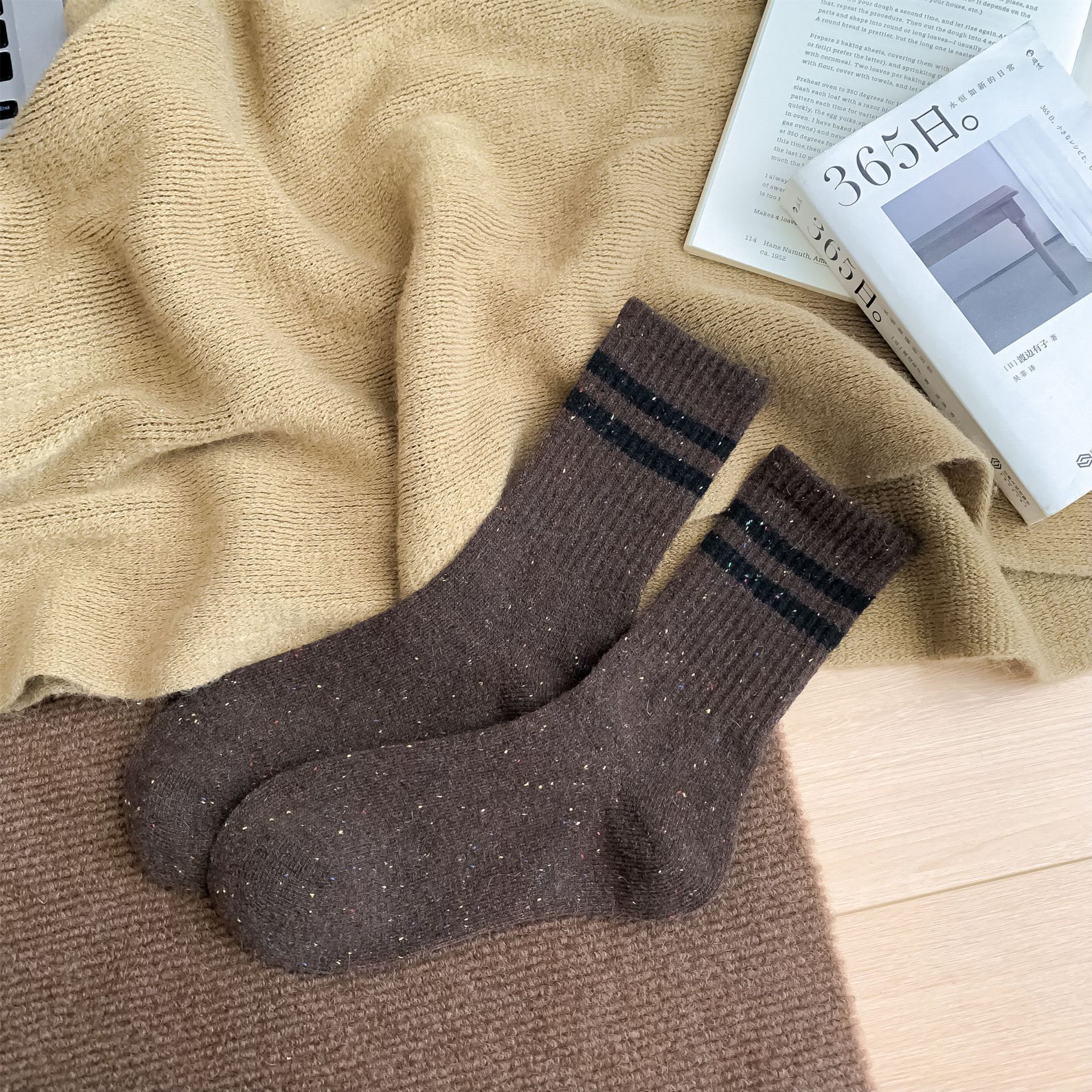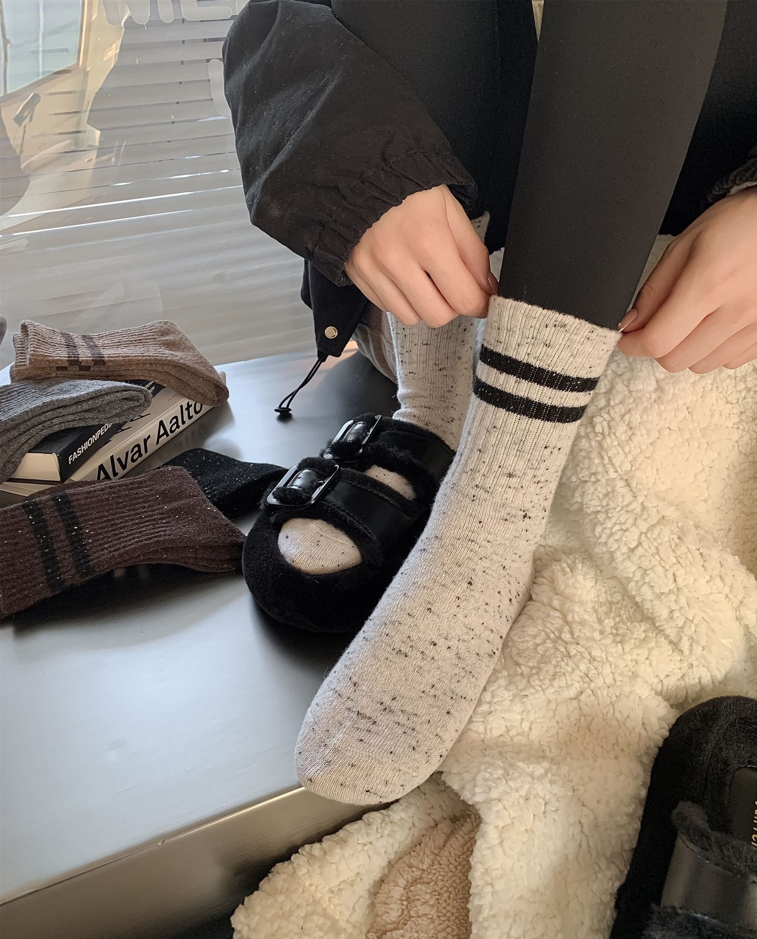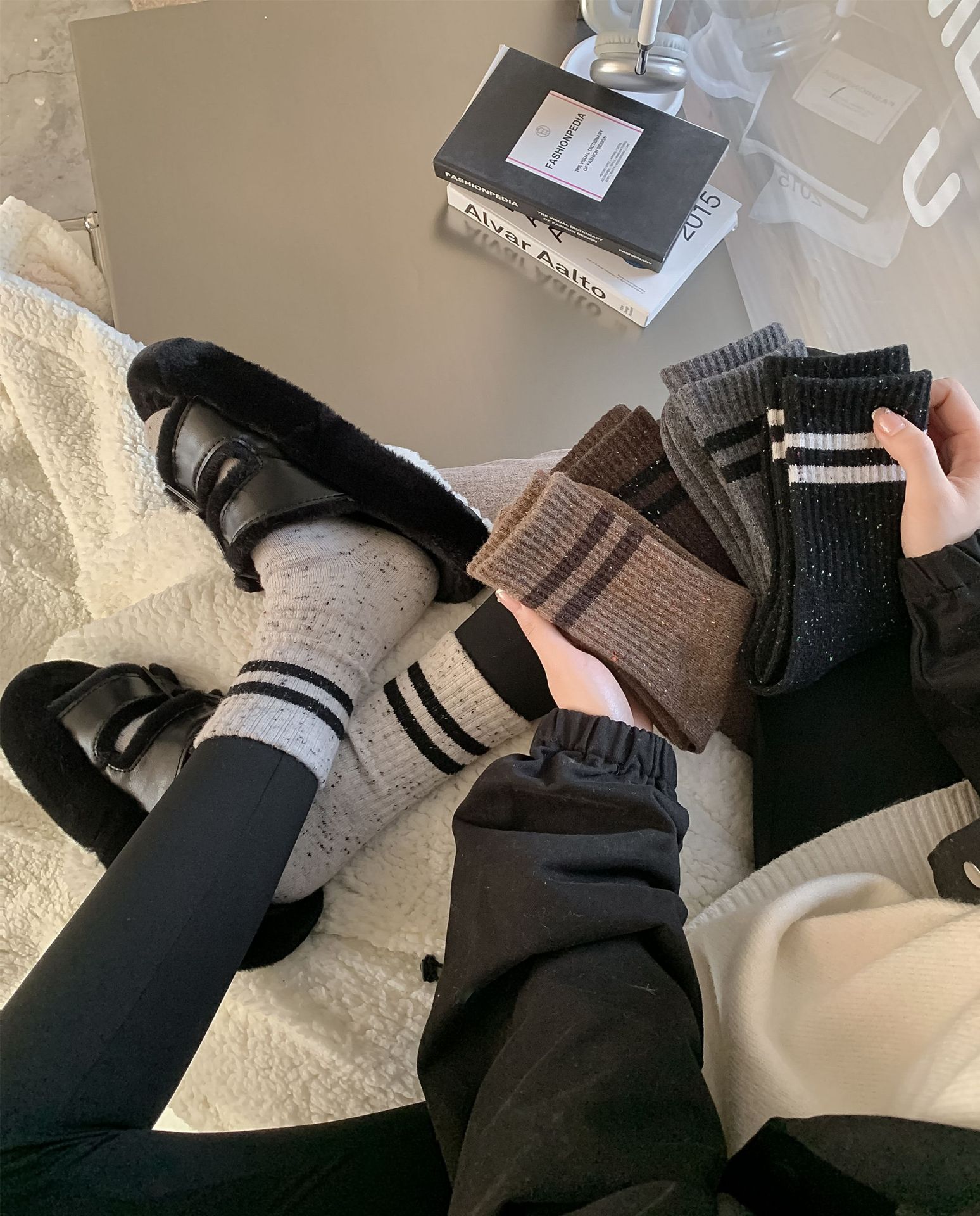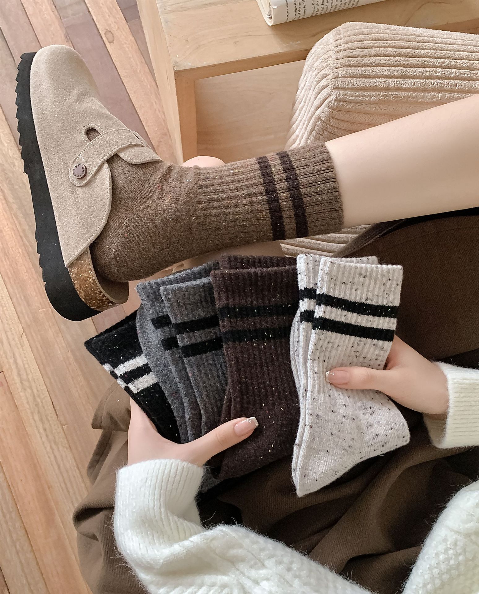 2024 년 가을과 겨울 새로운 2 바 포인트 원사 여성용 미드 튜브 양말 두꺼운 일본 단순 올 매치 따뜻한 팩