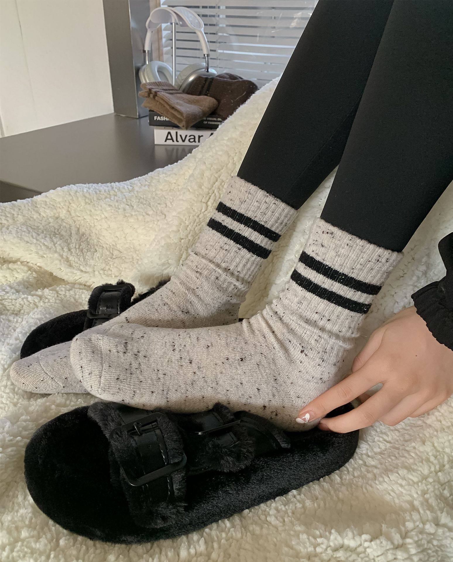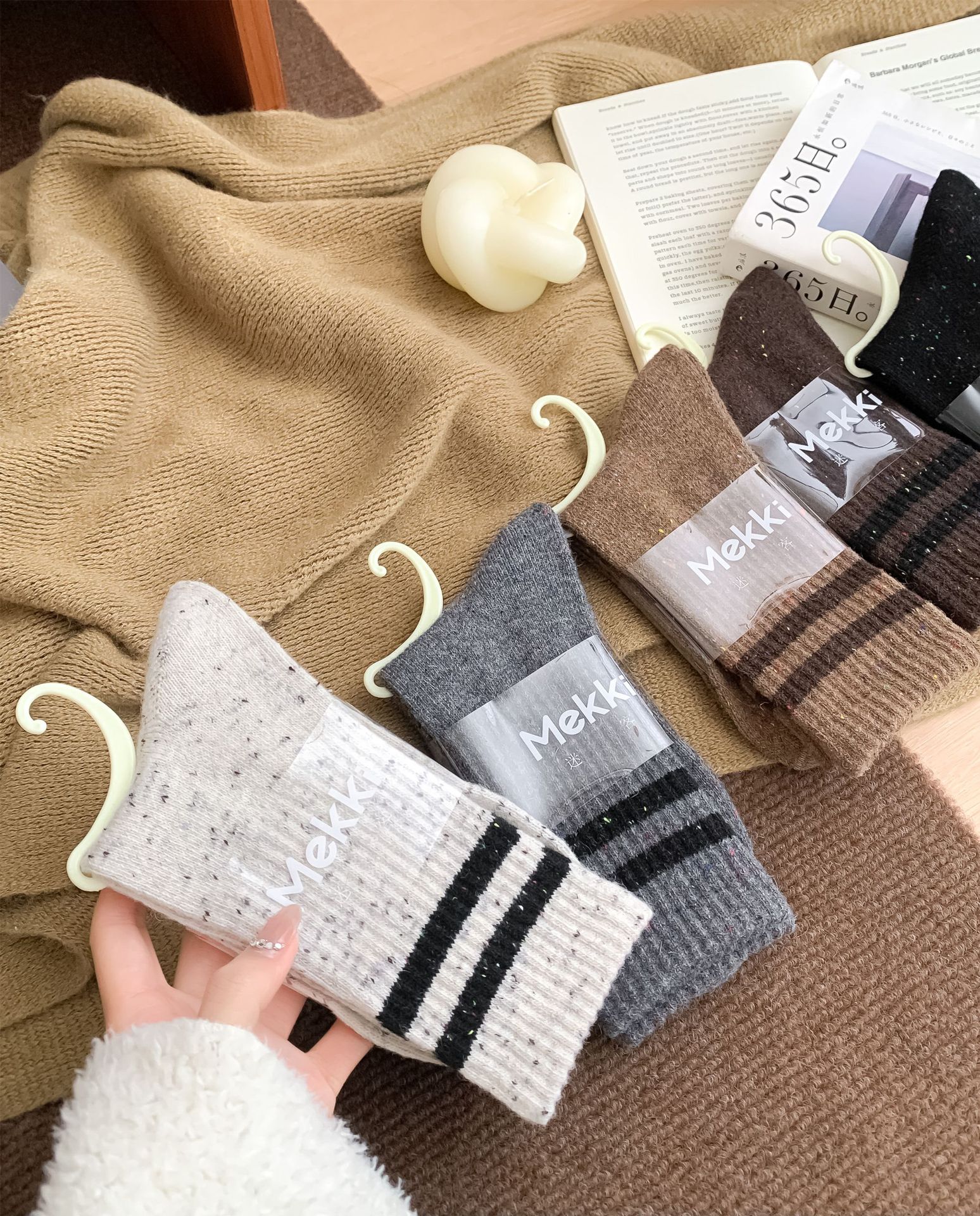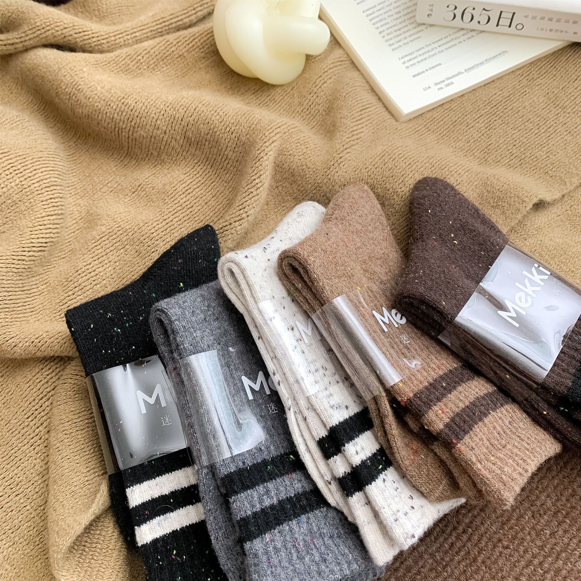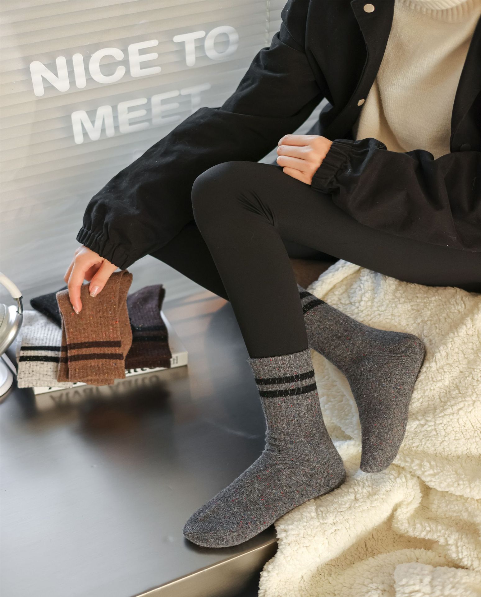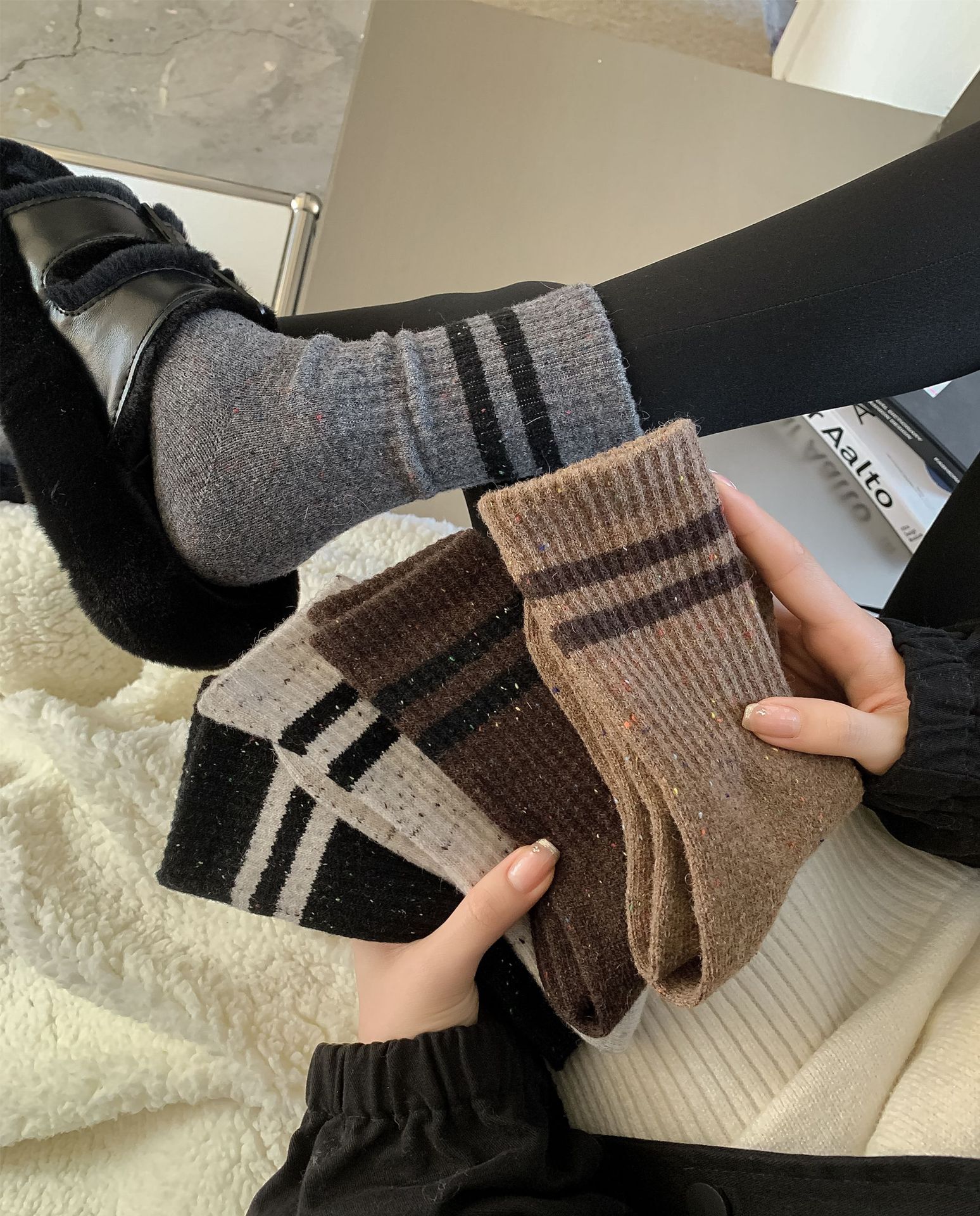 2024 년 가을과 겨울 새로운 2 바 포인트 원사 여성용 미드 튜브 양말 두꺼운 일본 단순 올 매치 따뜻한 팩