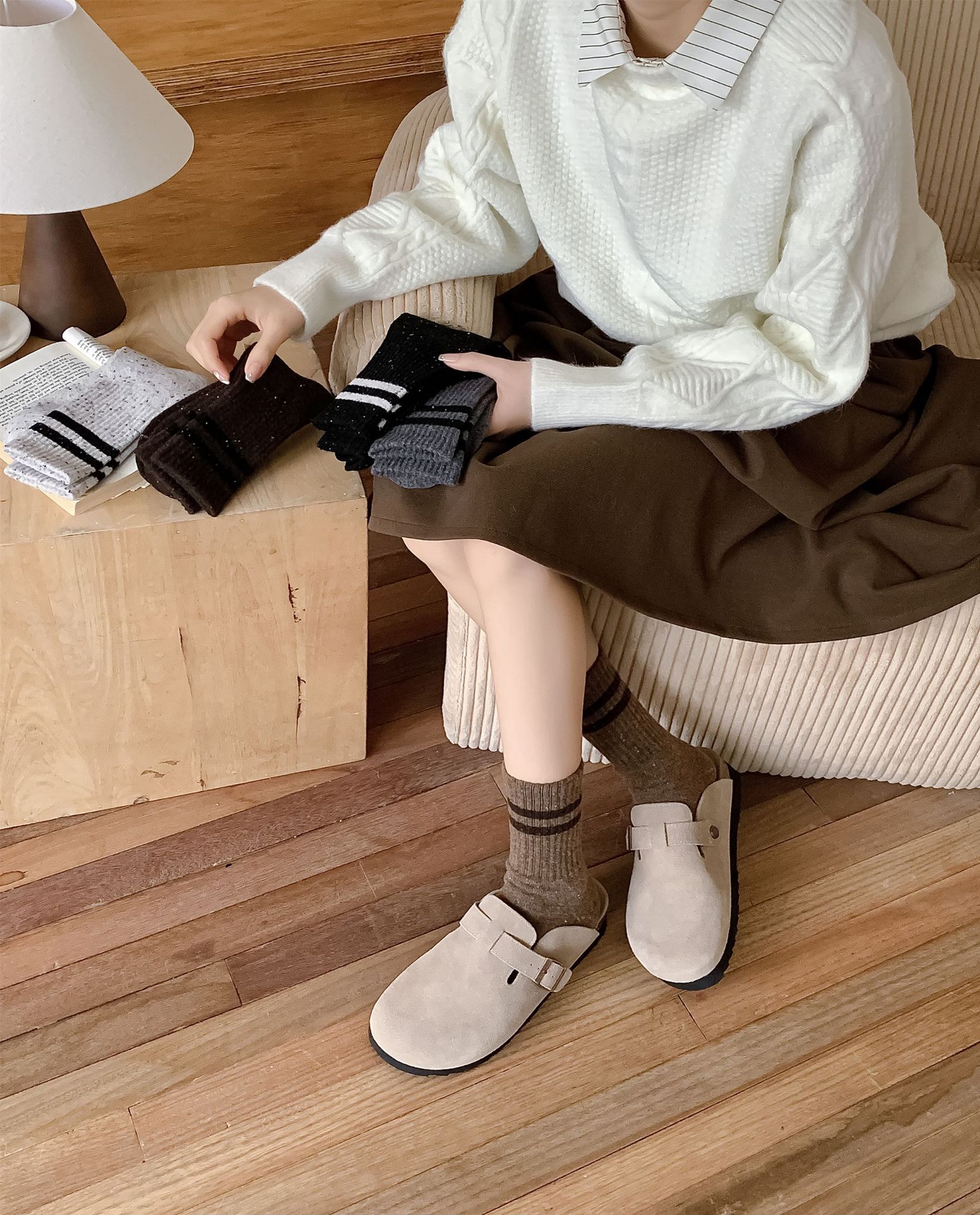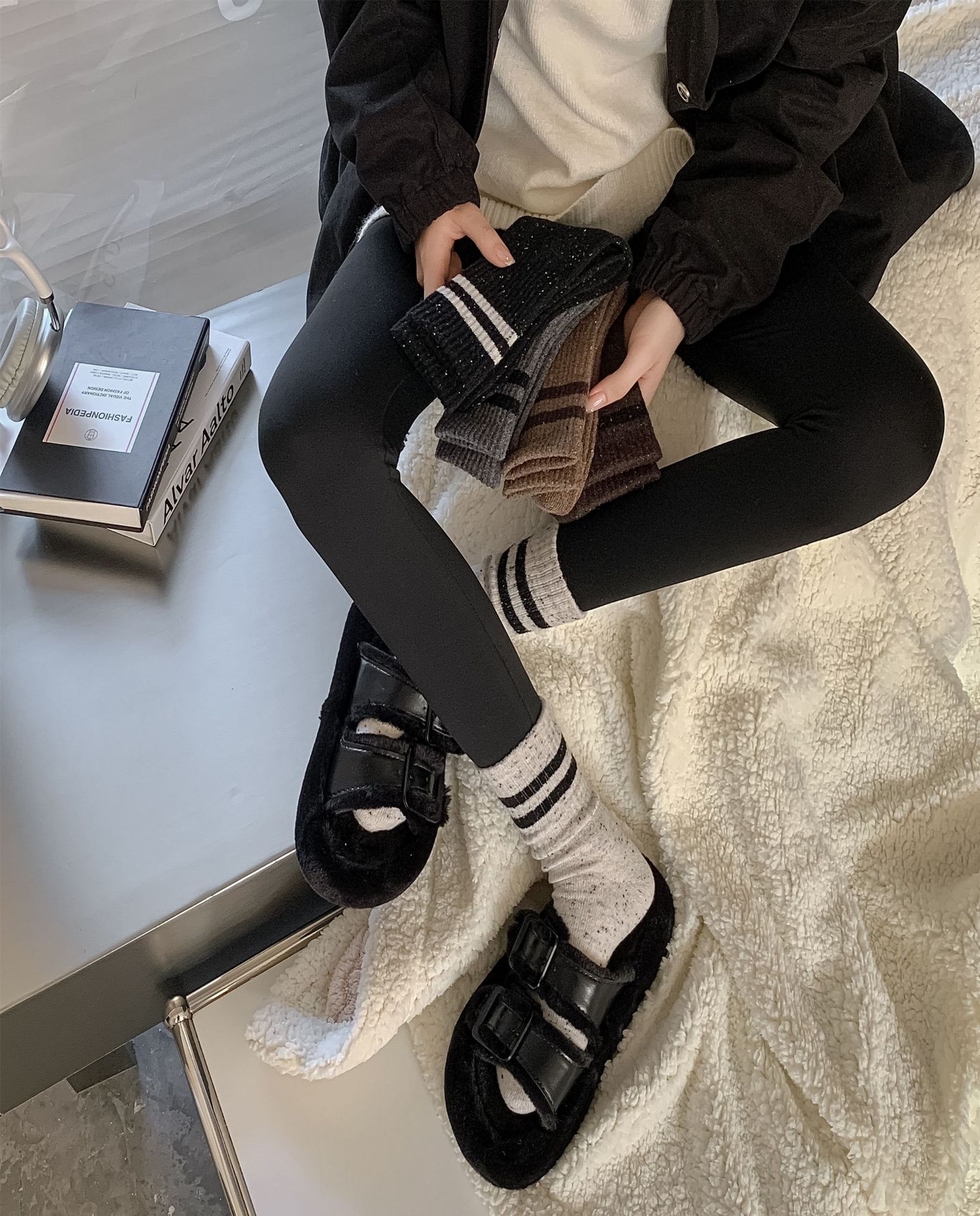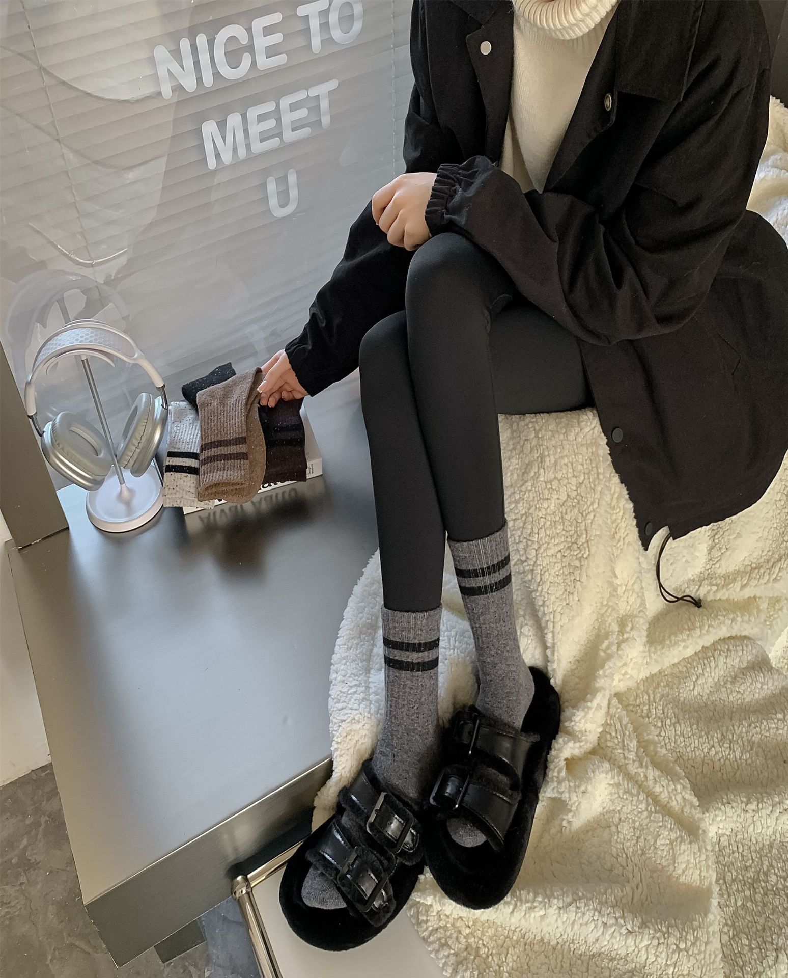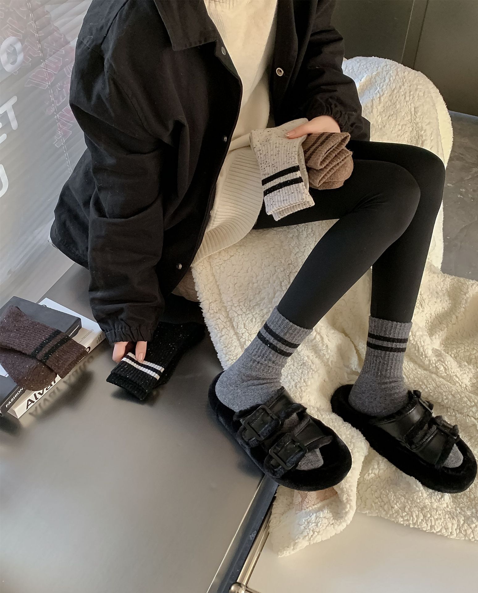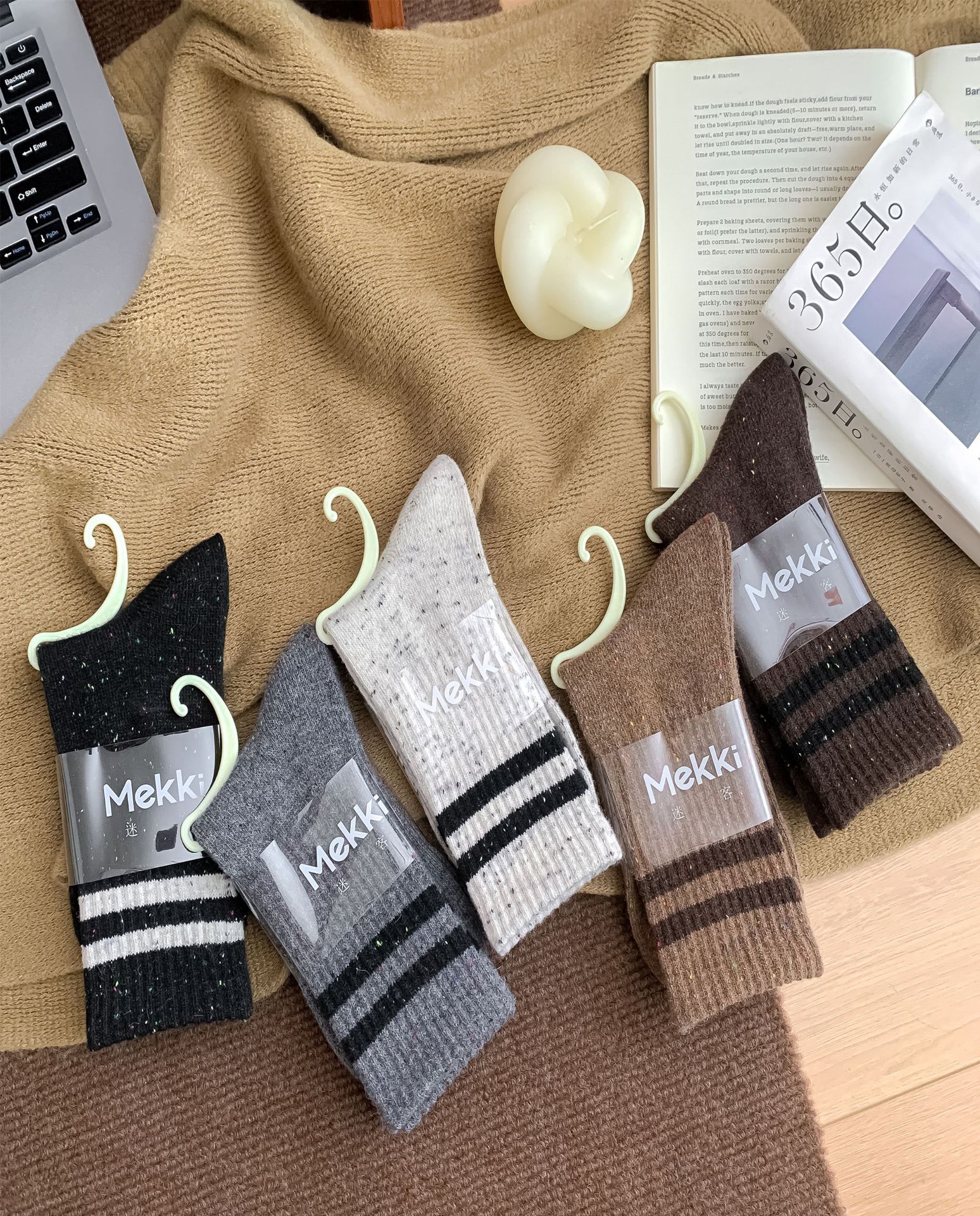 2024 년 가을과 겨울 새로운 2 바 포인트 원사 여성용 미드 튜브 양말 두꺼운 일본 단순 올 매치 따뜻한 팩