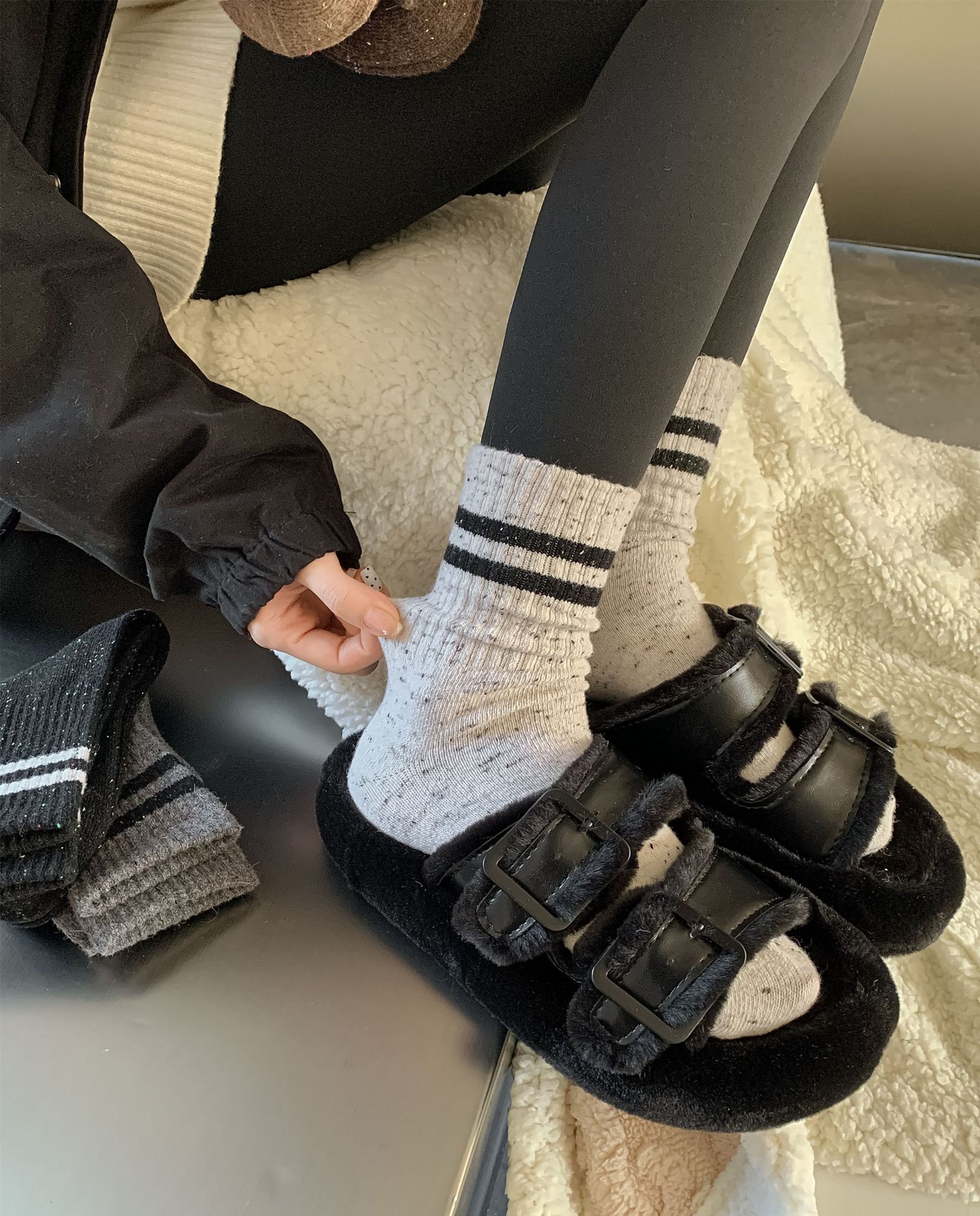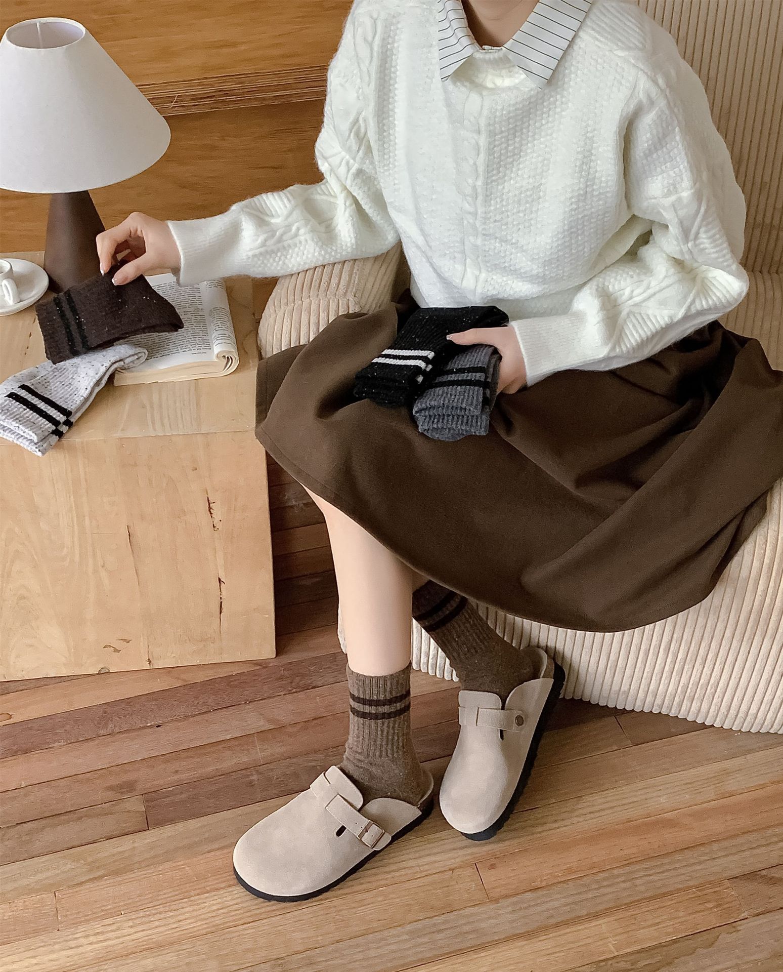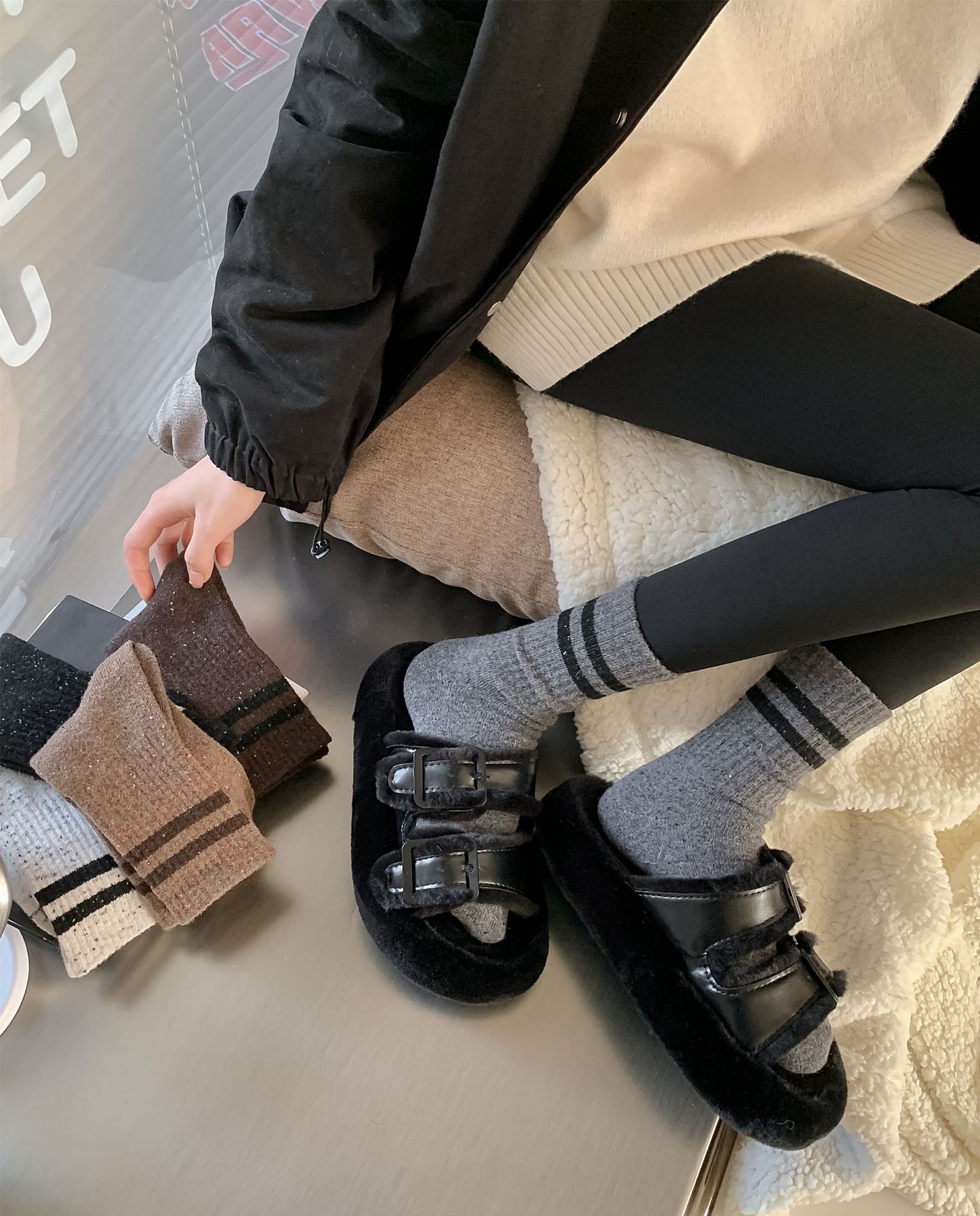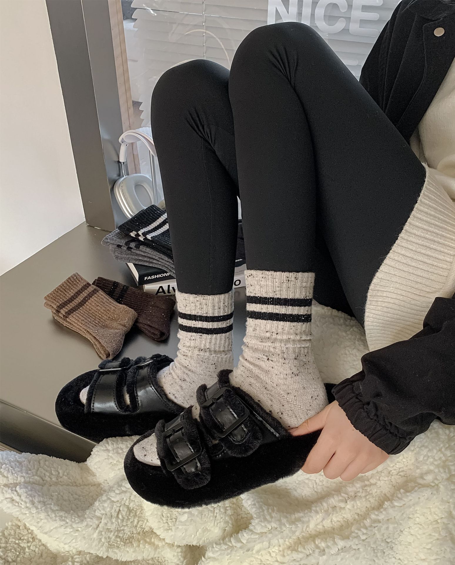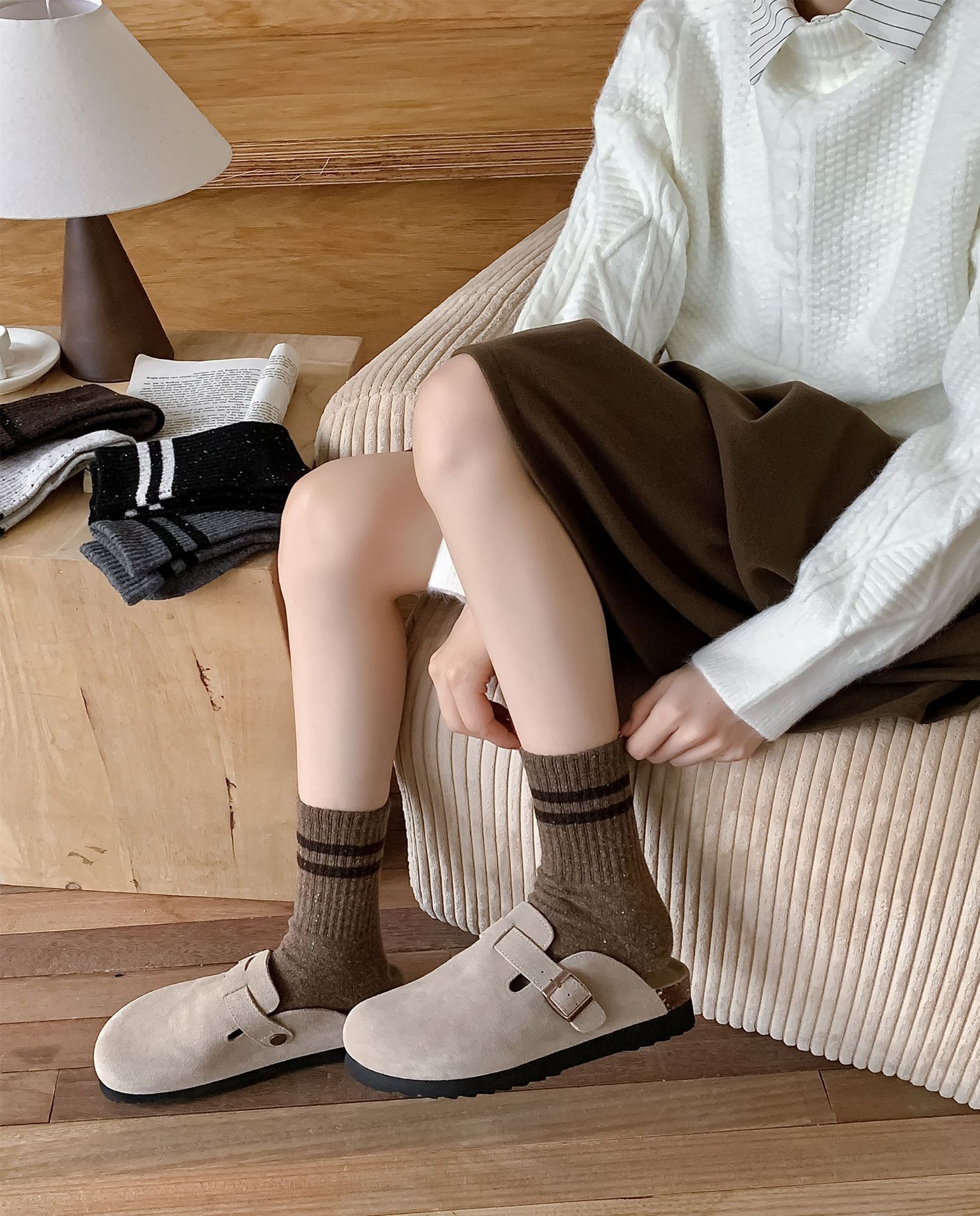 2024 년 가을과 겨울 새로운 2 바 포인트 원사 여성용 미드 튜브 양말 두꺼운 일본 단순 올 매치 따뜻한 팩