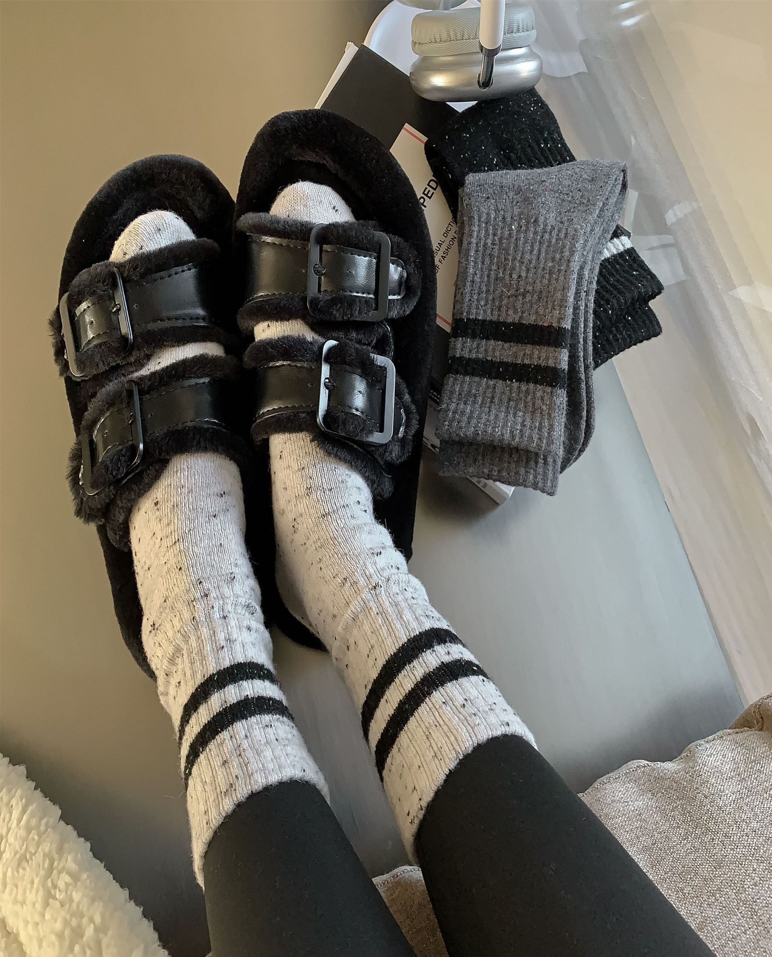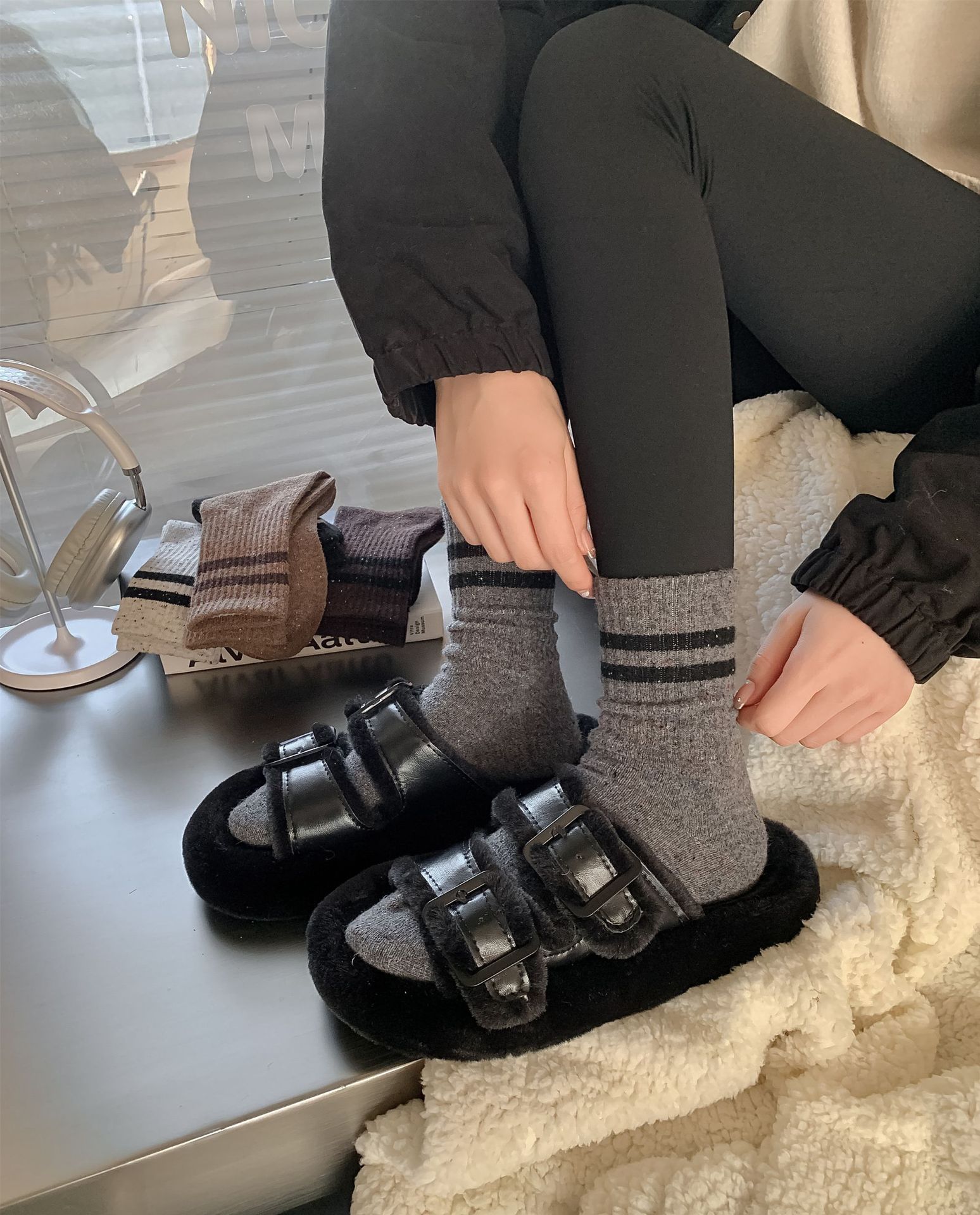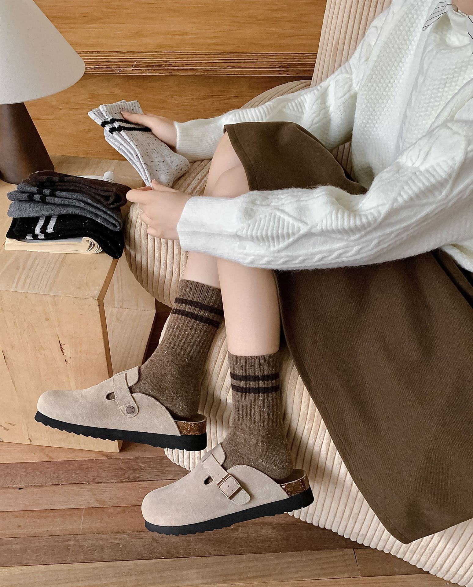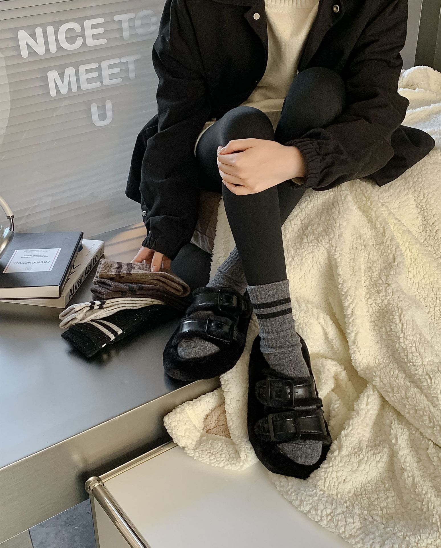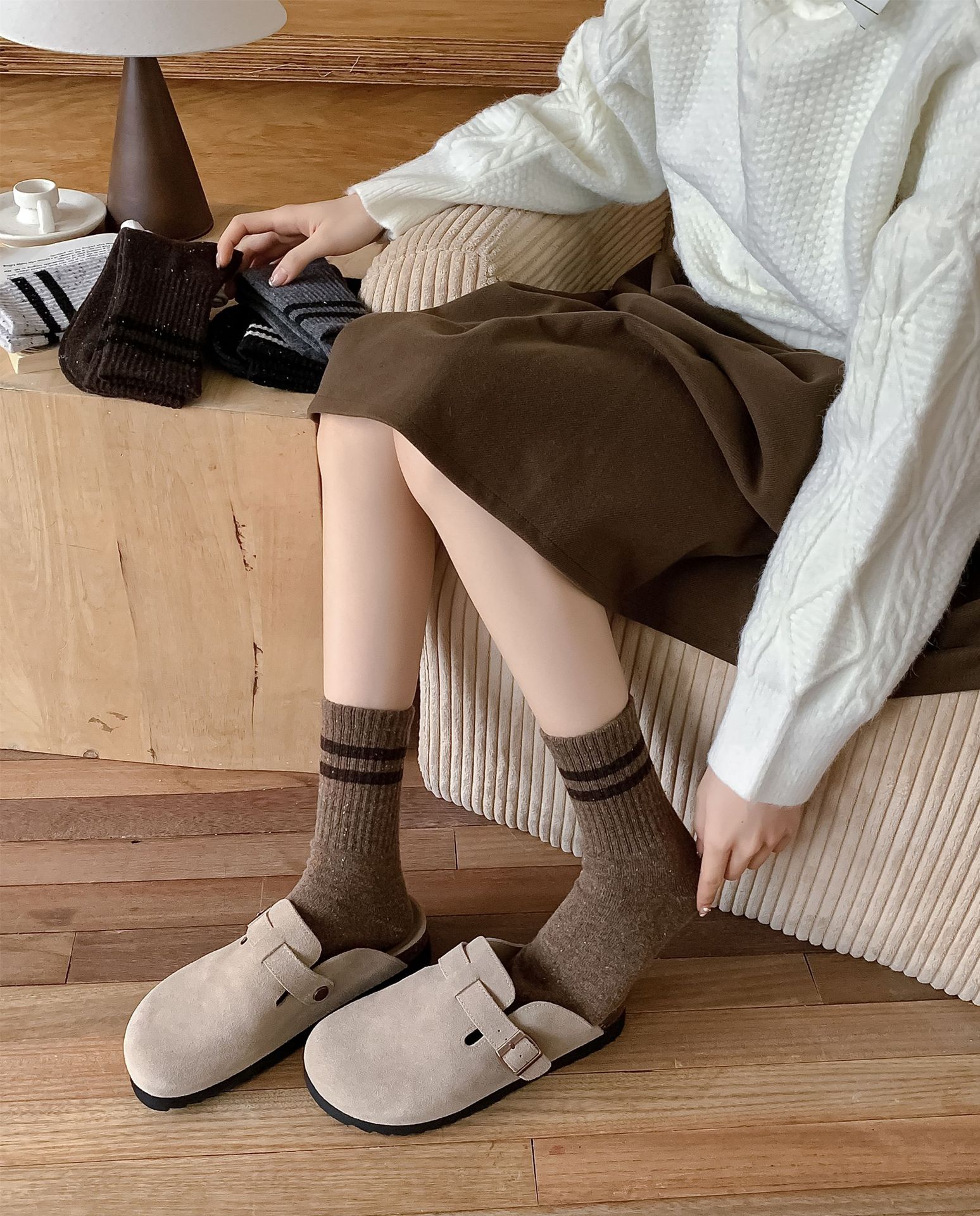 2024 년 가을과 겨울 새로운 2 바 포인트 원사 여성용 미드 튜브 양말 두꺼운 일본 단순 올 매치 따뜻한 팩