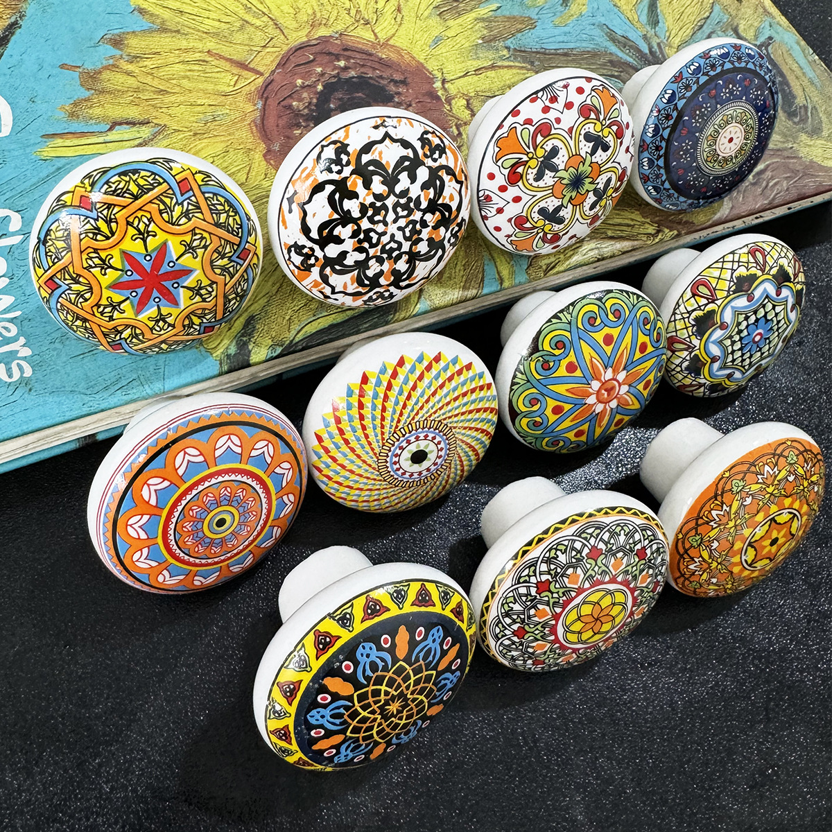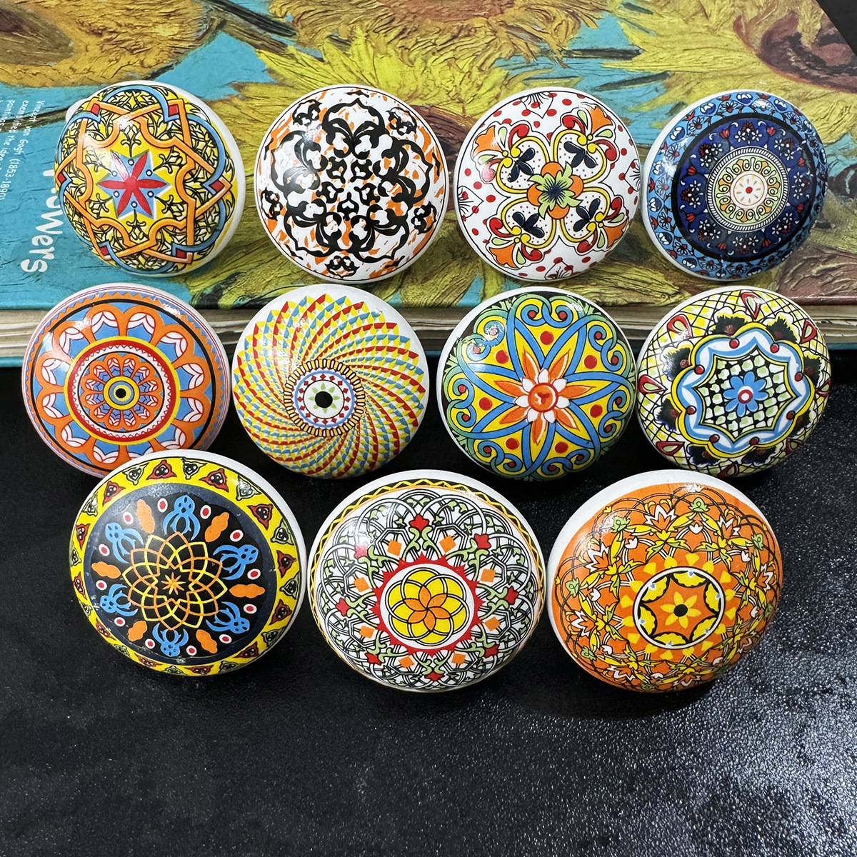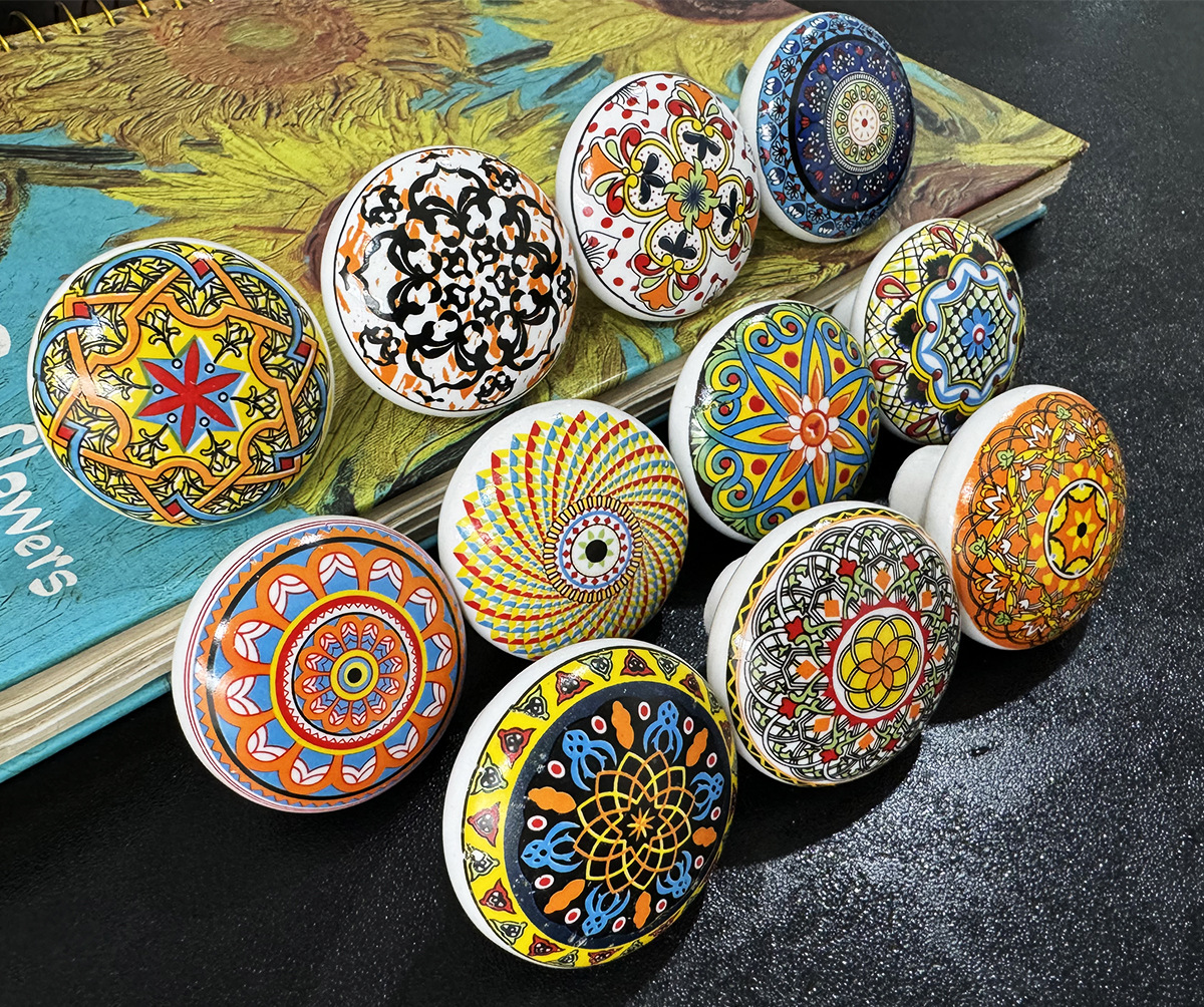 보헤미안 세라믹 단일 구멍 손잡이 유럽 스타일 캐비닛 옷장 문 손잡이 가구 서랍 단일 구멍 복고풍 손잡이 도매