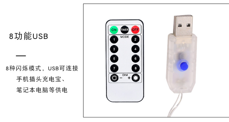 • 50.5m 램프 [남성 및 여성 플러그인 리모콘 모델] 8가지 깜박임(투명선)