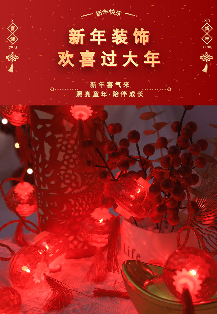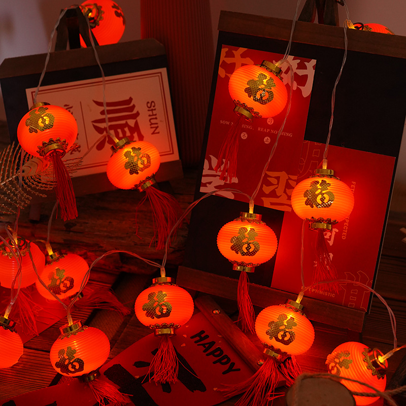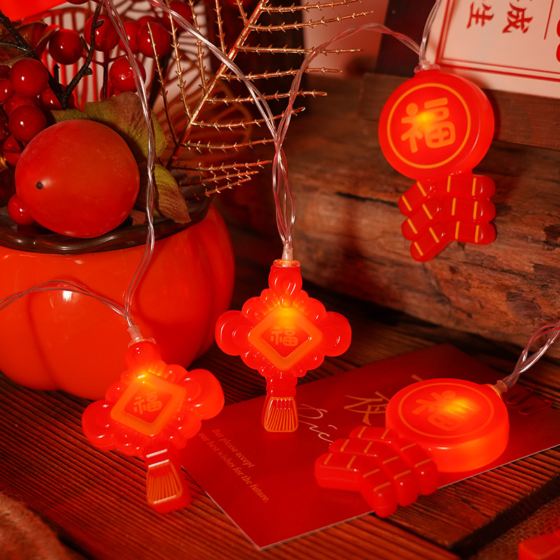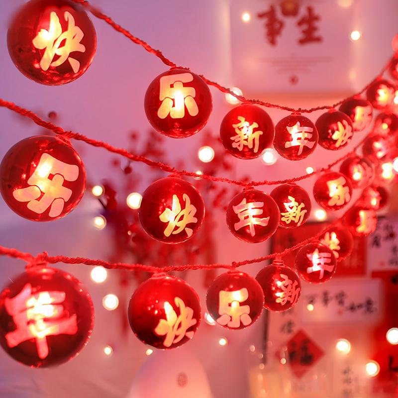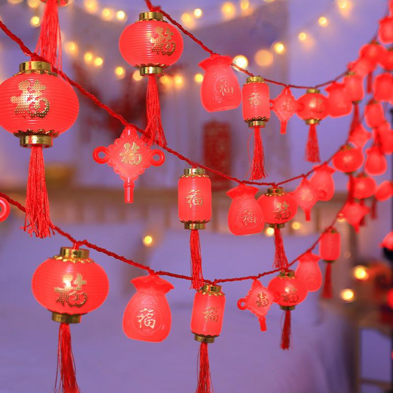 새해 장식 라이트 스트링 레드 랜턴 스트링 라이트 가구 축제 분위기 빛 행운의 가방 행운의 단어 작은 색 빛 장식 빛을 주도스토어 가기