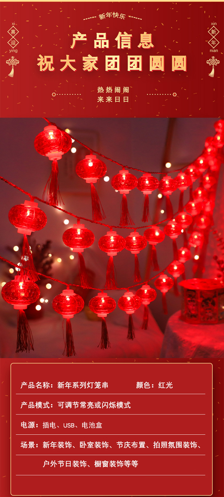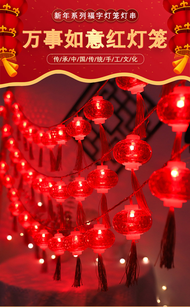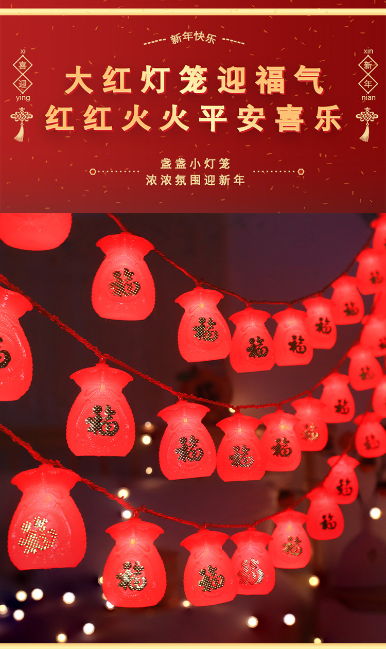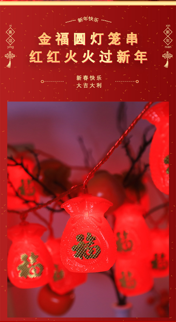 새해 장식 라이트 스트링 레드 랜턴 스트링 라이트 가구 축제 분위기 빛 행운의 가방 행운의 단어 작은 색 빛 장식 빛을 주도스토어 가기