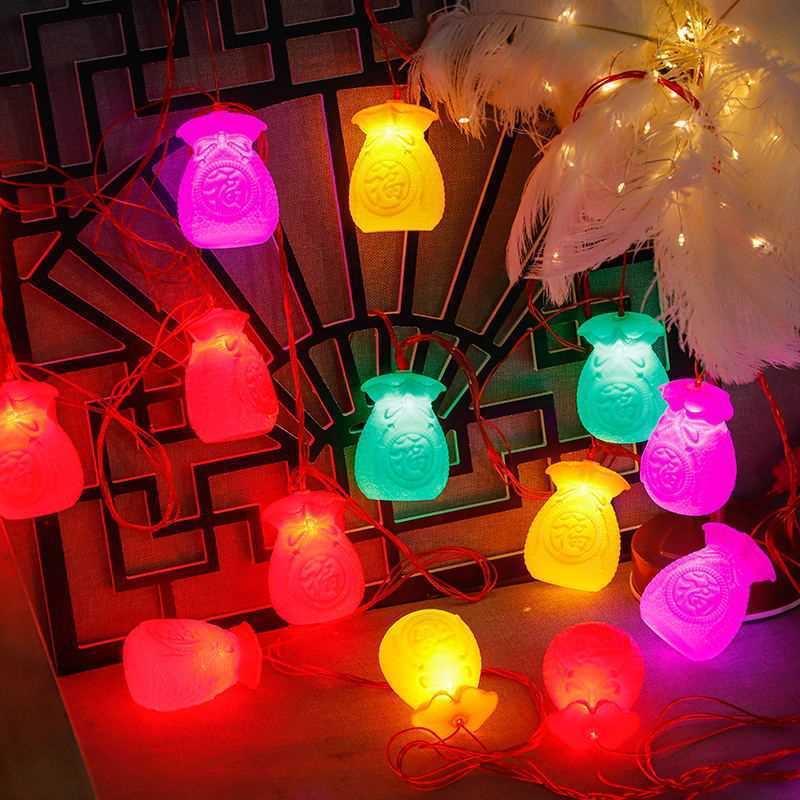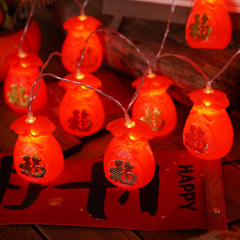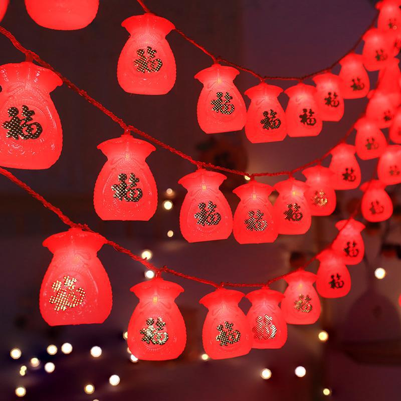 새해 장식 라이트 스트링 레드 랜턴 스트링 라이트 가구 축제 분위기 빛 행운의 가방 행운의 단어 작은 색 빛 장식 빛을 주도