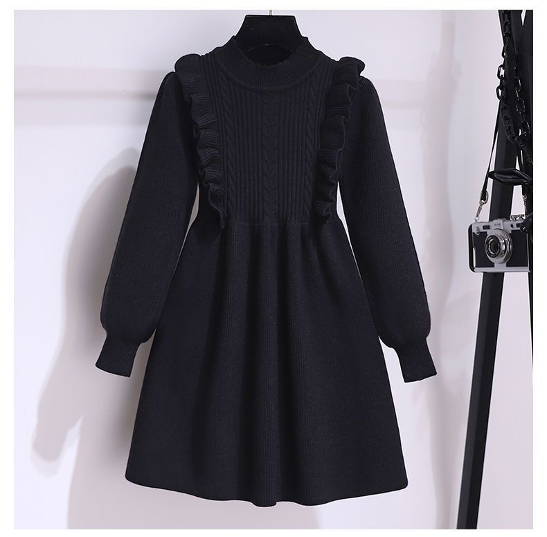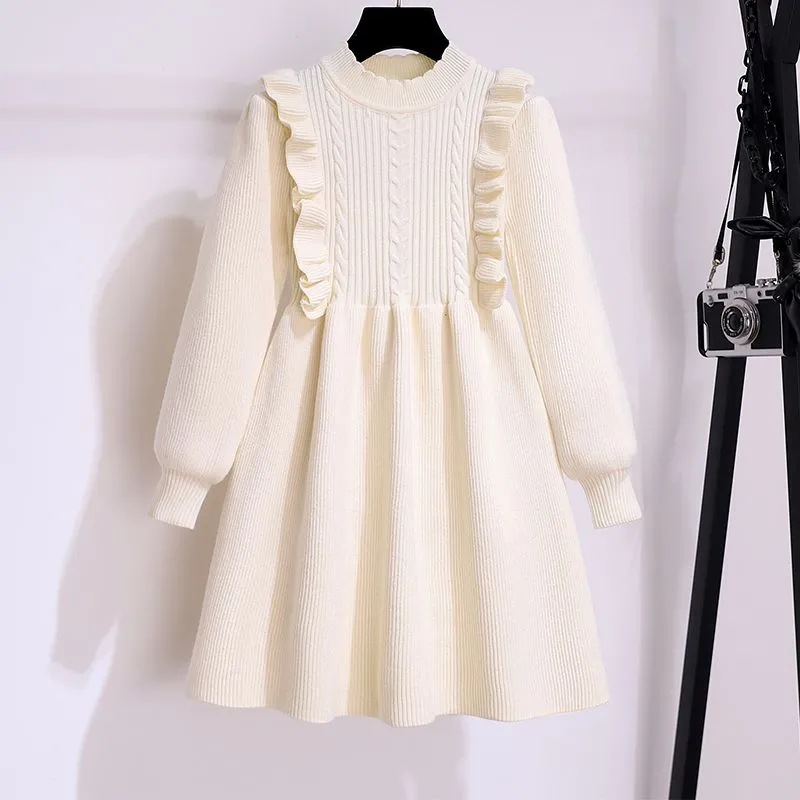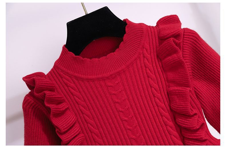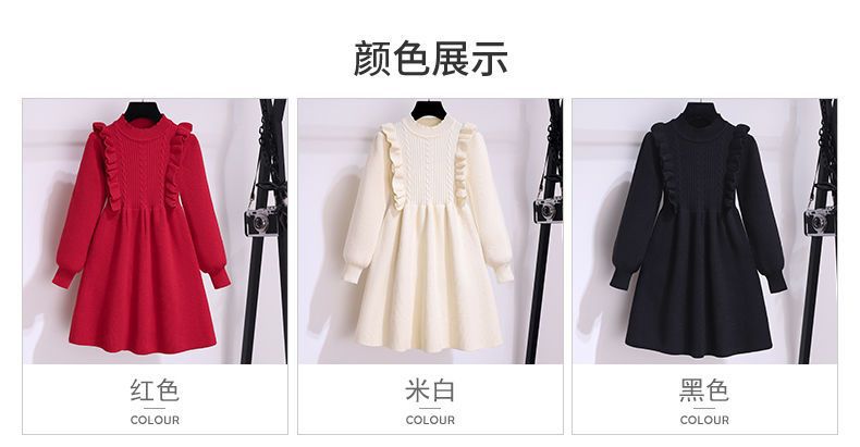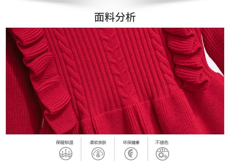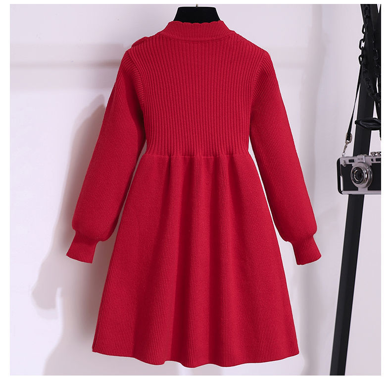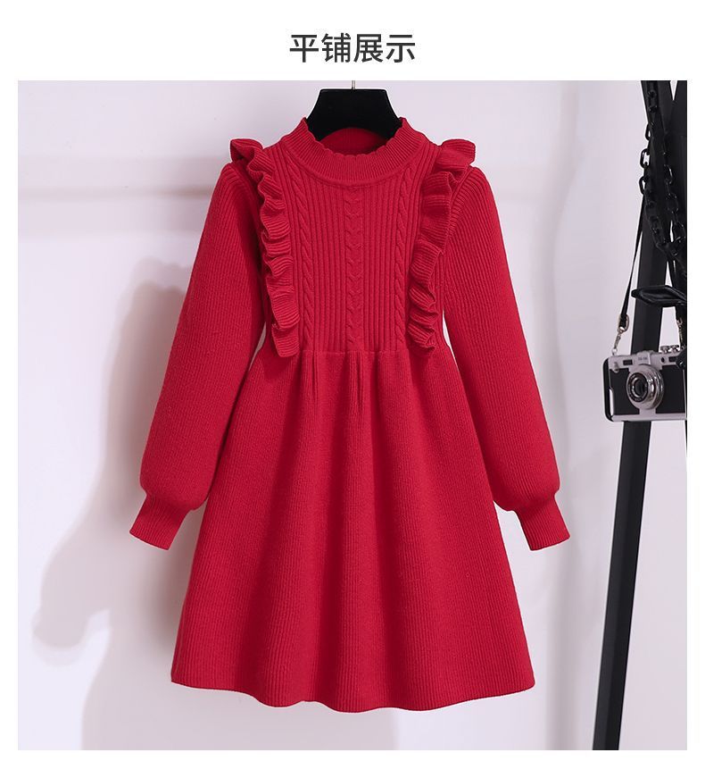 소녀 붉은 니트 원피스 가을 겨울 새로운 스타일 달콤한 공주 원피스 큰 아이들을위한 가을 패션 한국 스웨터 원피스스토어 가기