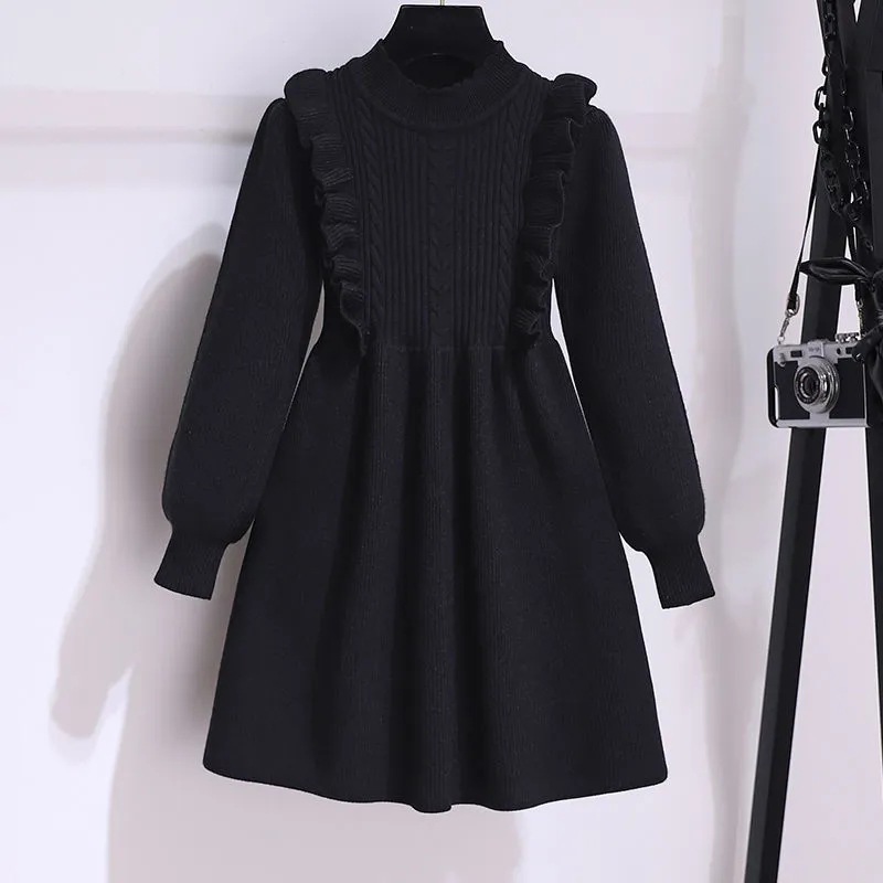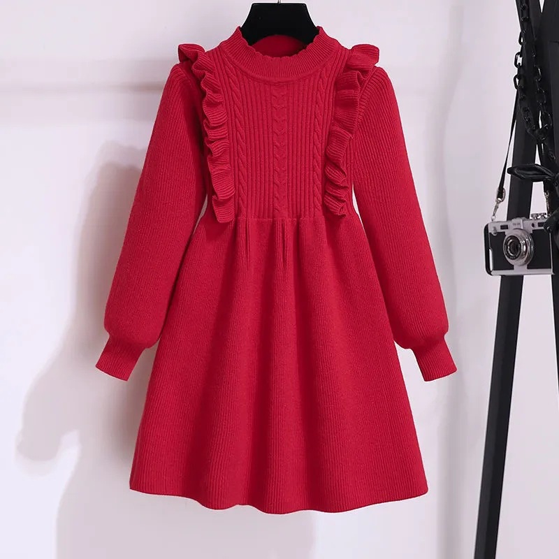 소녀 붉은 니트 원피스 가을 겨울 새로운 스타일 달콤한 공주 원피스 큰 아이들을위한 가을 패션 한국 스웨터 원피스