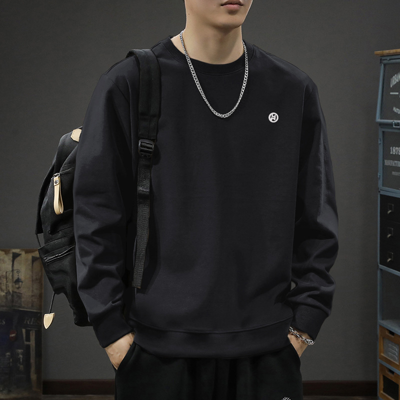• 블랙 라운드넥 스웨트셔츠 레귤러 스타일-1365 [GL]