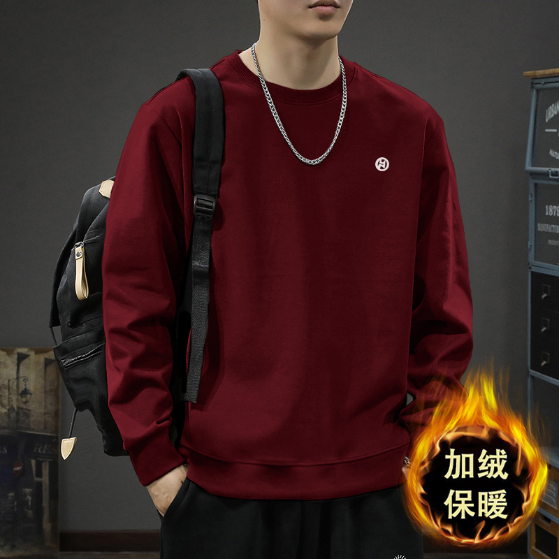 • 버건디 라운드넥 스웨트셔츠 플러스 플리스 스타일-1365【GL】