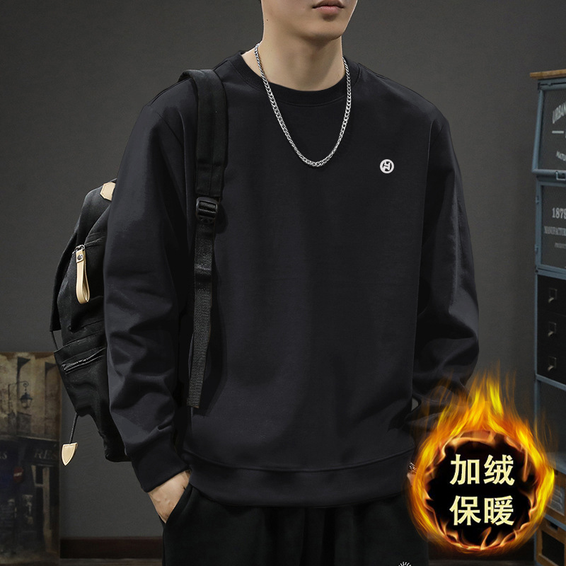 • 블랙 라운드넥 스웨트셔츠 플러스 플리스 스타일-1365【GL】