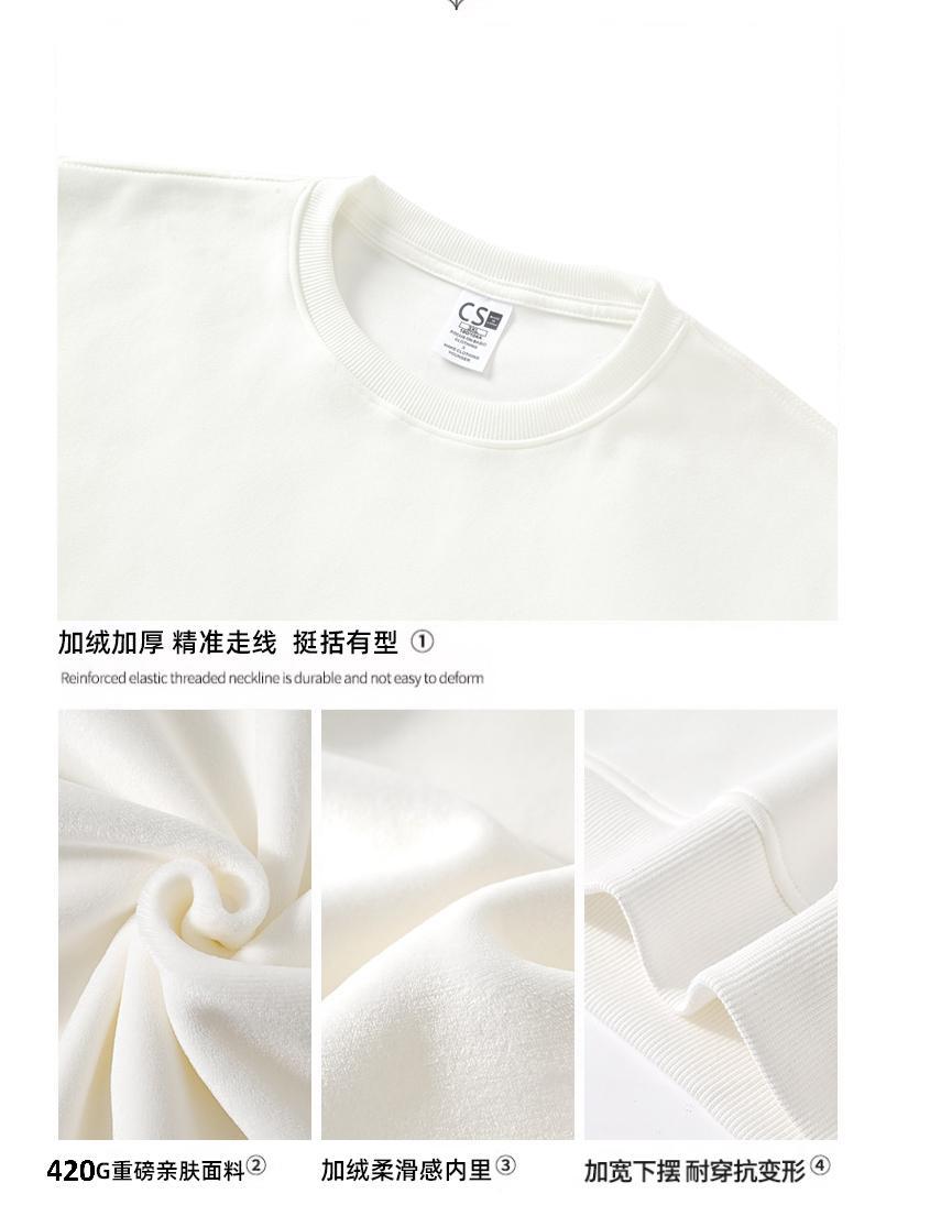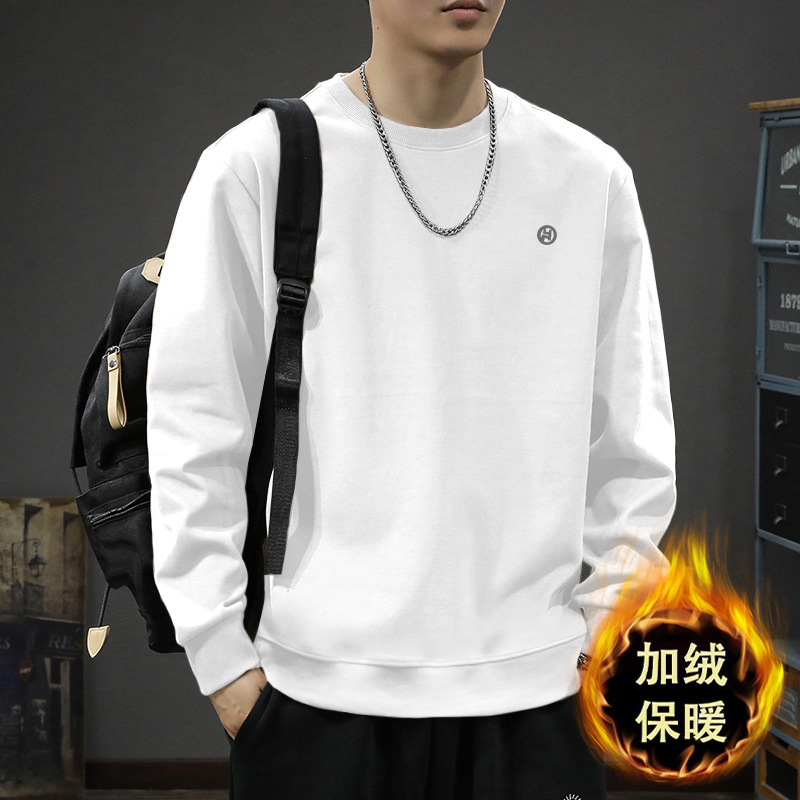 • 화이트 라운드넥 스웨트셔츠 플러스 플리스 스타일-1365【GL】