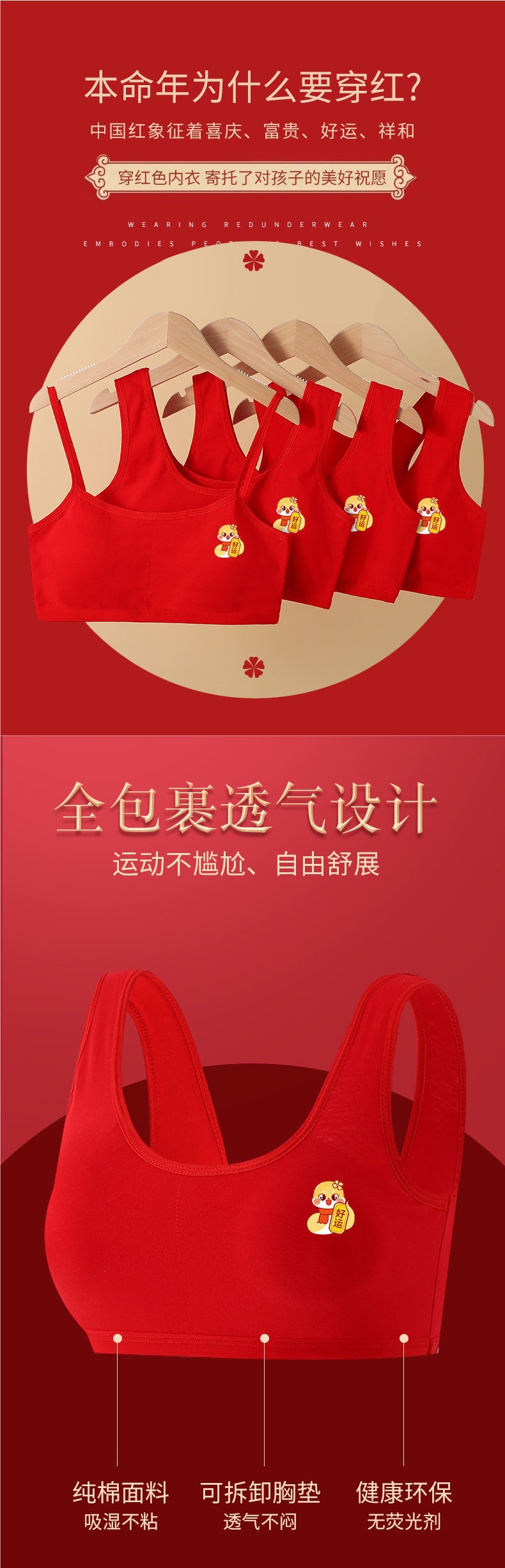어린이 브닝 니언 속옷 세트 중학생 12 세 조끼 큰 아이의 해 스네이크 튜브 탑 소녀 레드 브라