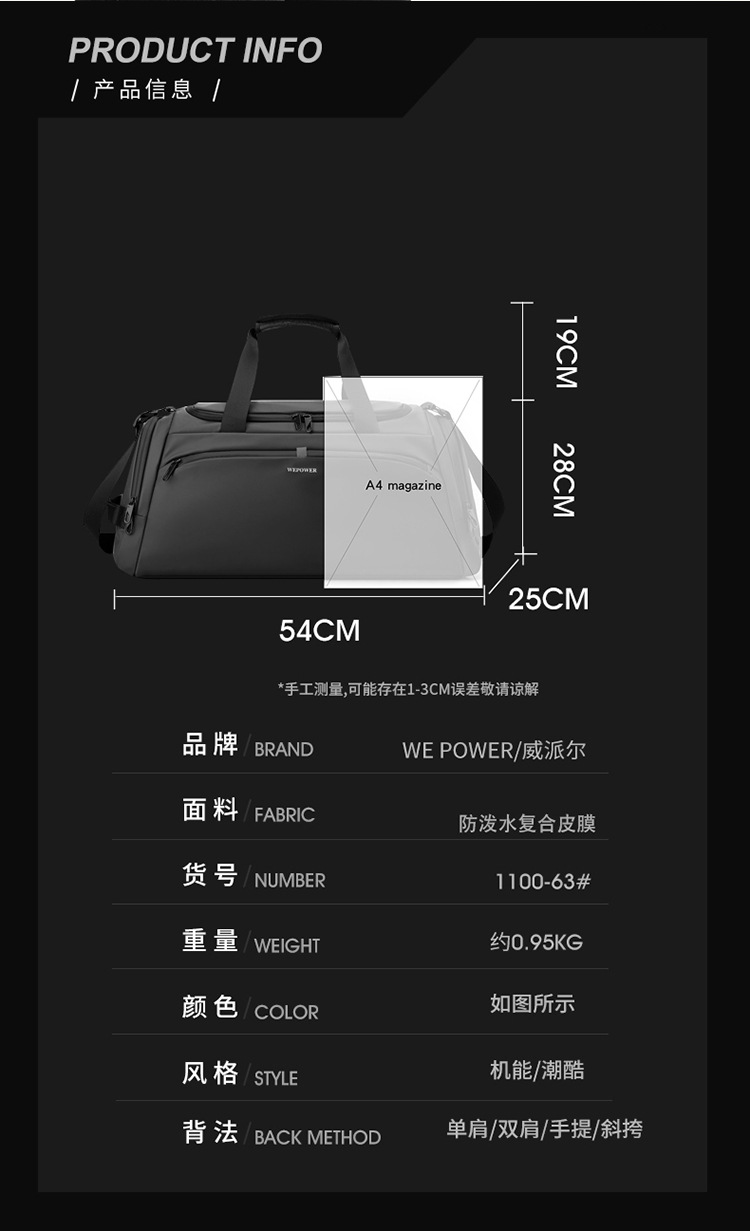 【产品货号】1100-63#旅行包、可双肩、单肩、斜挎包、可手提