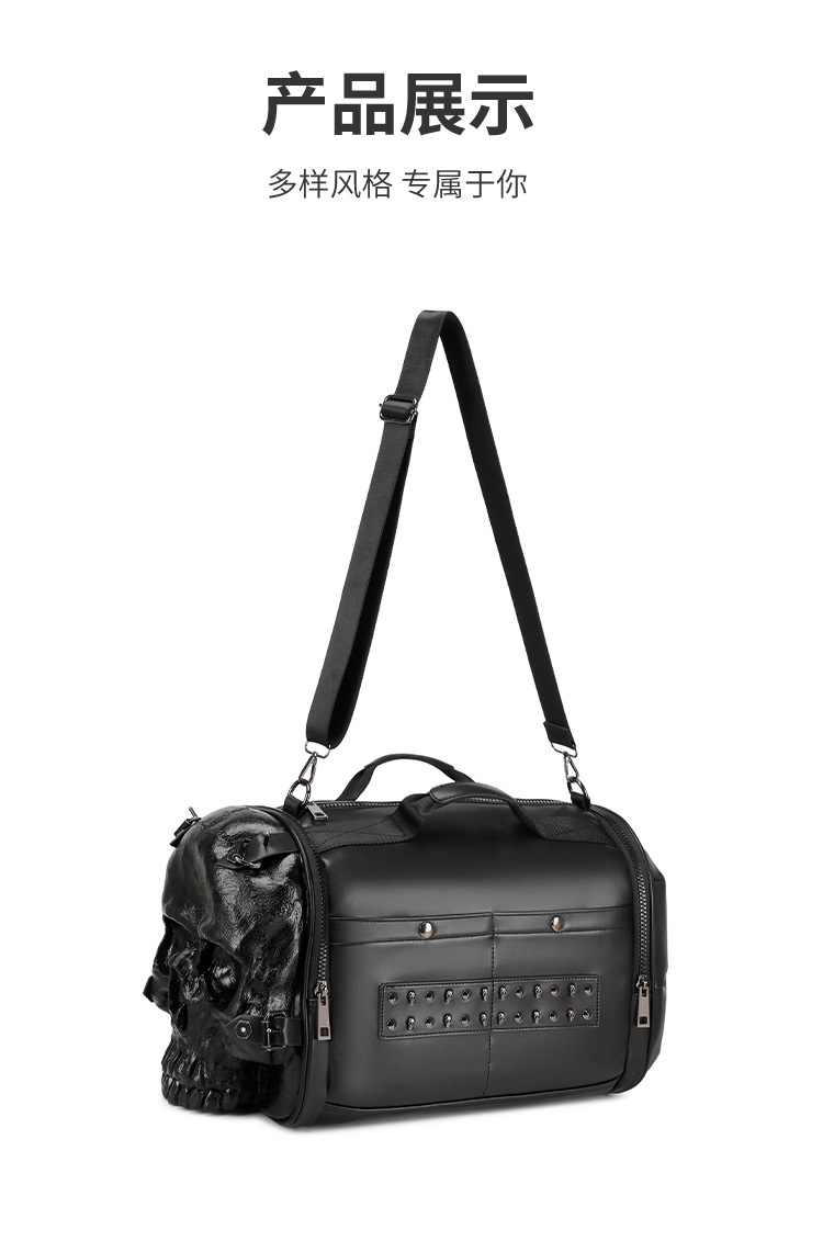 크로스-국경 3D 트렌디 쿨 해골 남자 가방 퍼가죽 리벳 대용량 어깨 크로스 바디 휴대용 여행 가방스토어 가기