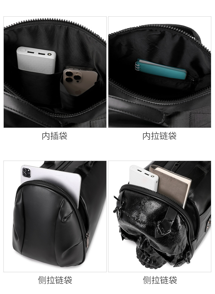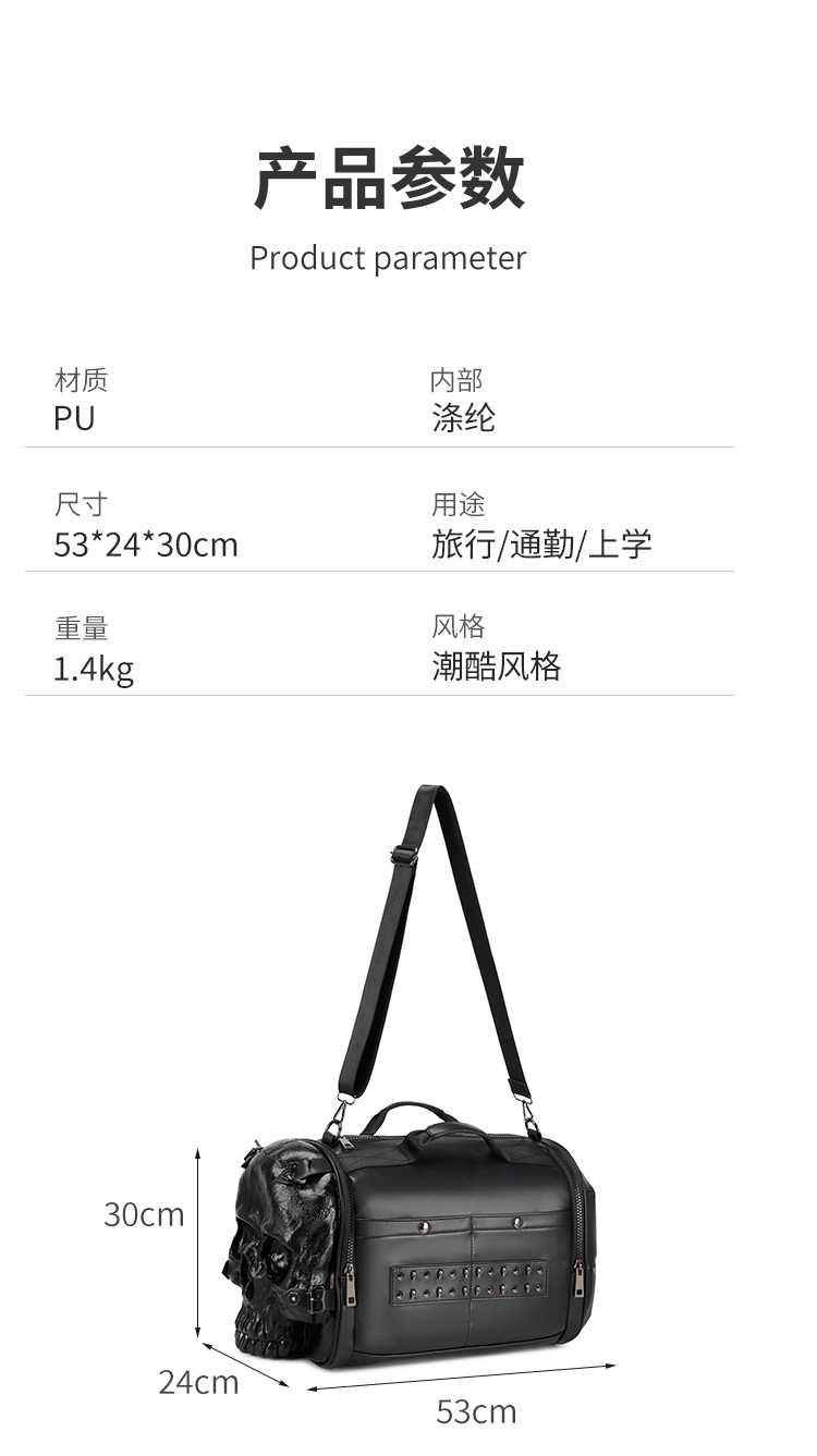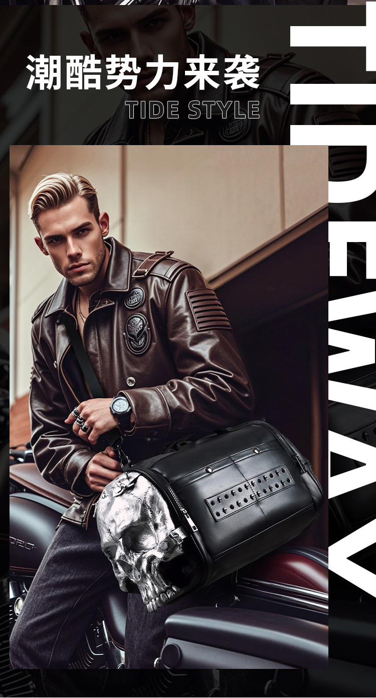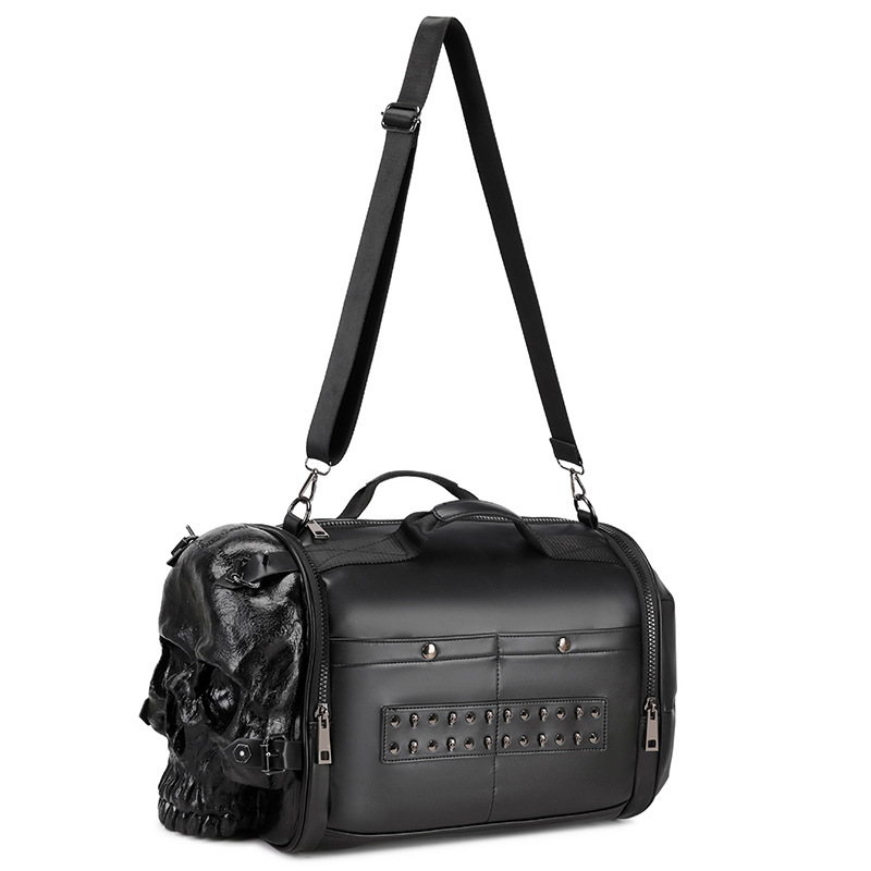 크로스-국경 3D 트렌디 쿨 해골 남자 가방 퍼가죽 리벳 대용량 어깨 크로스 바디 휴대용 여행 가방