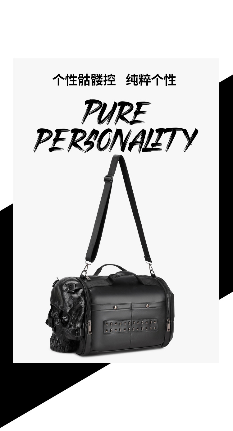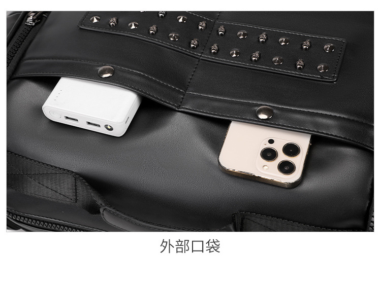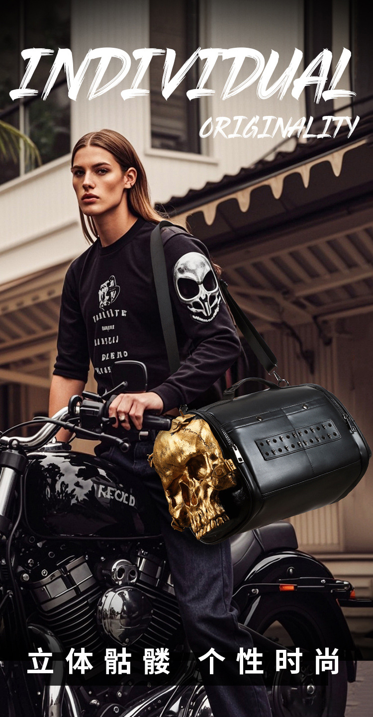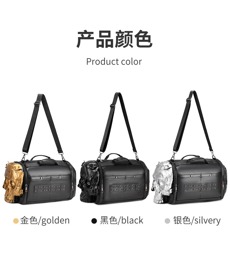 크로스-국경 3D 트렌디 쿨 해골 남자 가방 퍼가죽 리벳 대용량 어깨 크로스 바디 휴대용 여행 가방