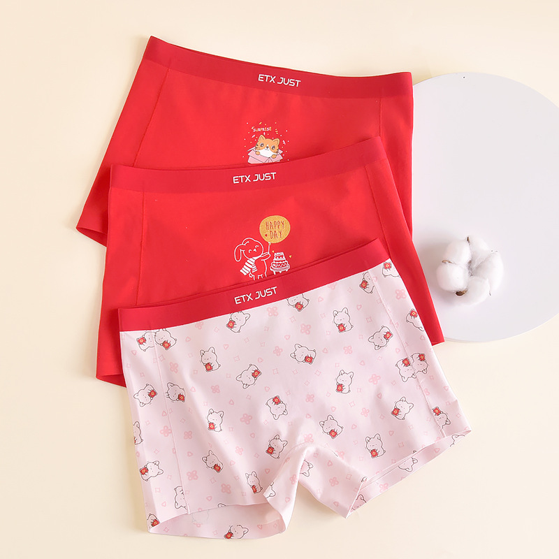 名称:男女童无痕盒装平角内裤新年节日款红色棉短裤中大童学生四角内裤
