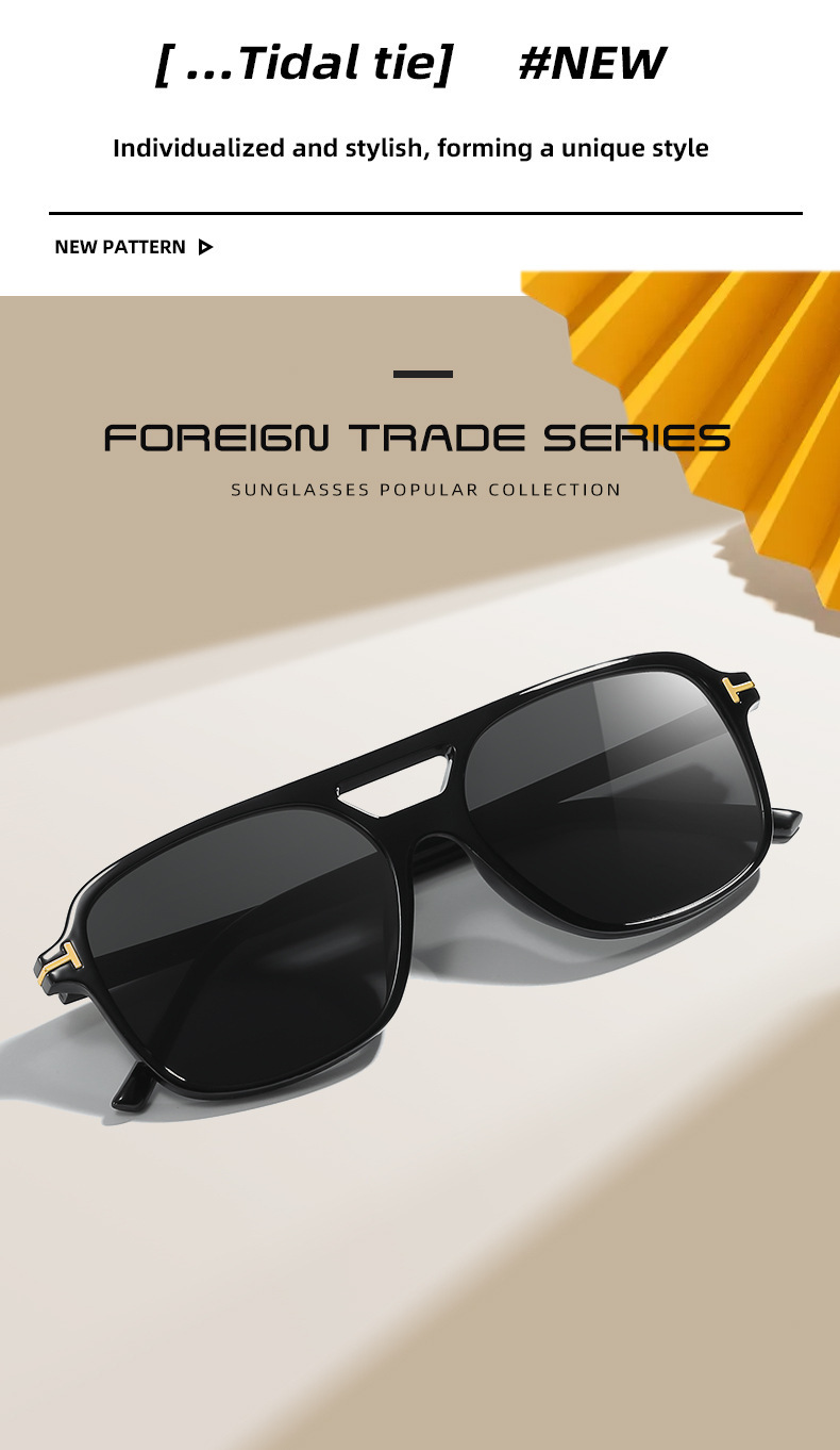 새로운 T-word 유럽과 미국의 조종사 복고풍 더블 빔 선글라스 하이 센스 선글라스 안티 UV 선글라스 조수