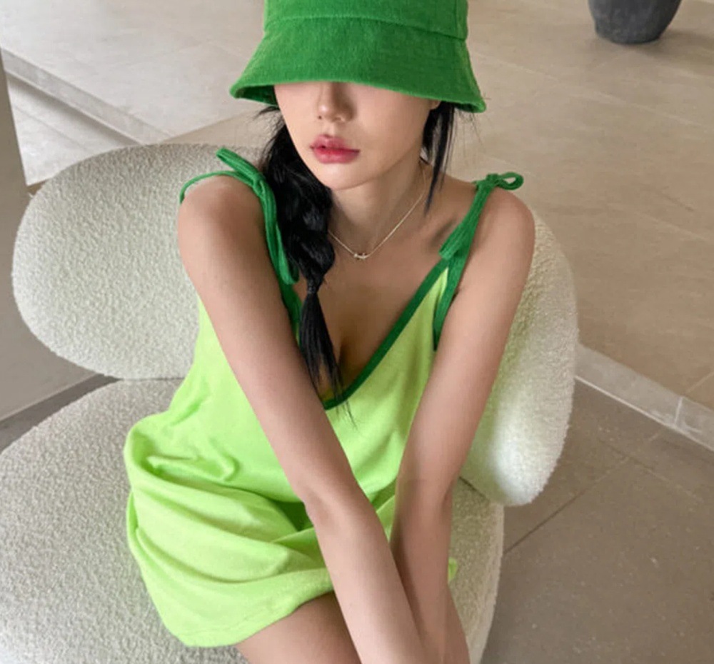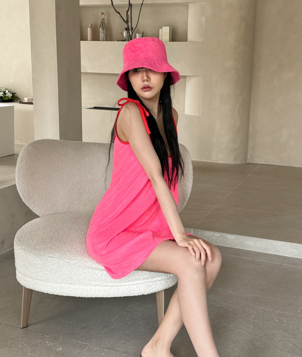 국경 간 한국 동대문 Ins 스타일 느슨한 보수 단색 단순 어깨 끈 비치 원피스 수영복스토어 가기