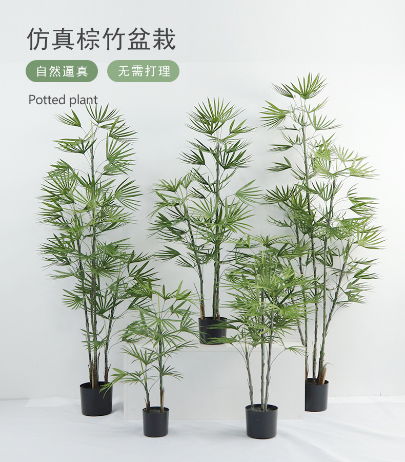 시뮬레이션 다크 브라운 대나무 녹색 식물 고급 잎 가짜 나무 화분 거실 쇼핑몰 상점 창 호텔 레스토랑 장식 장식품스토어 가기
