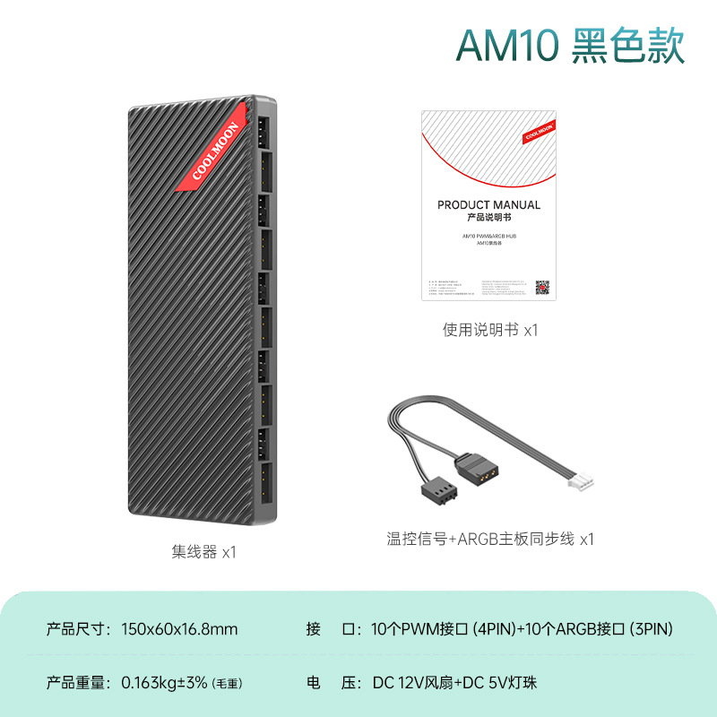 AM10集线器包含10个PWM+10个5V3针接口,独立sata供电,背部磁吸便捷安装,超薄机身可放机箱背后,单个彩盒包装,90pcs/box,单箱尺寸:35*34*33cm,14.1kg/box,品牌直营,大量现货供应,支持单个拿样,30天内采购金额达3000元,返还样品费用!跨境可提供图片包,详情请咨询客服