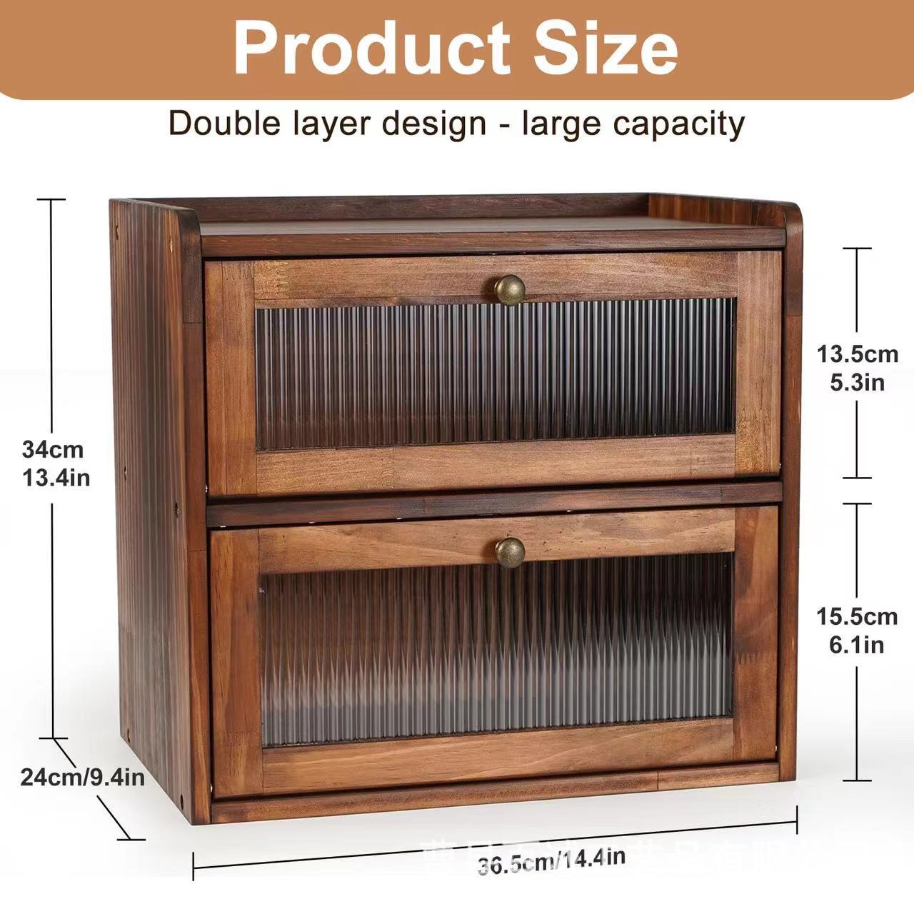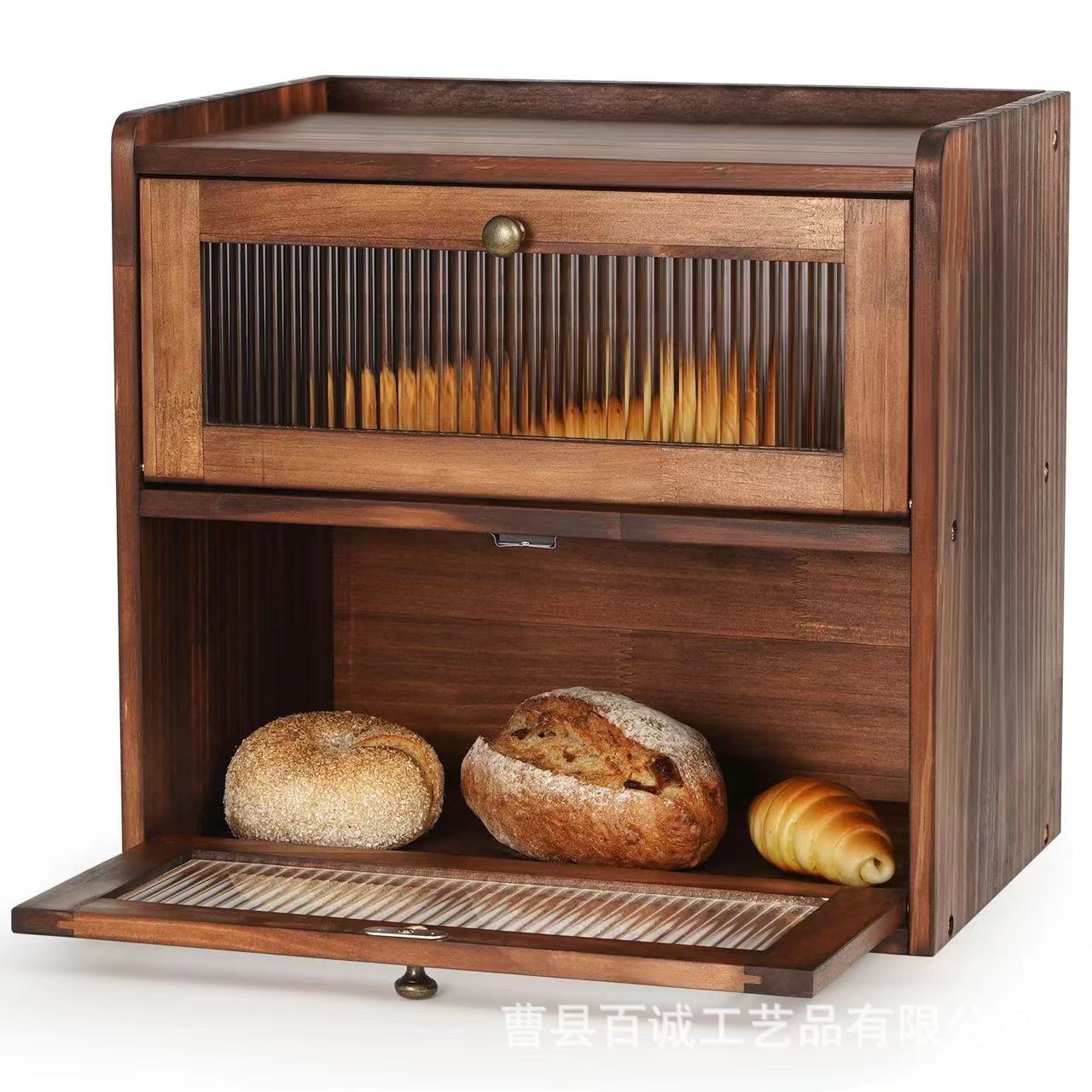 주방 조리대 나무 저장 상자 두 배 층 방진 빵 상자 뚜껑 식기 상자 다목적 과일 및 야채 저장 상자스토어 가기