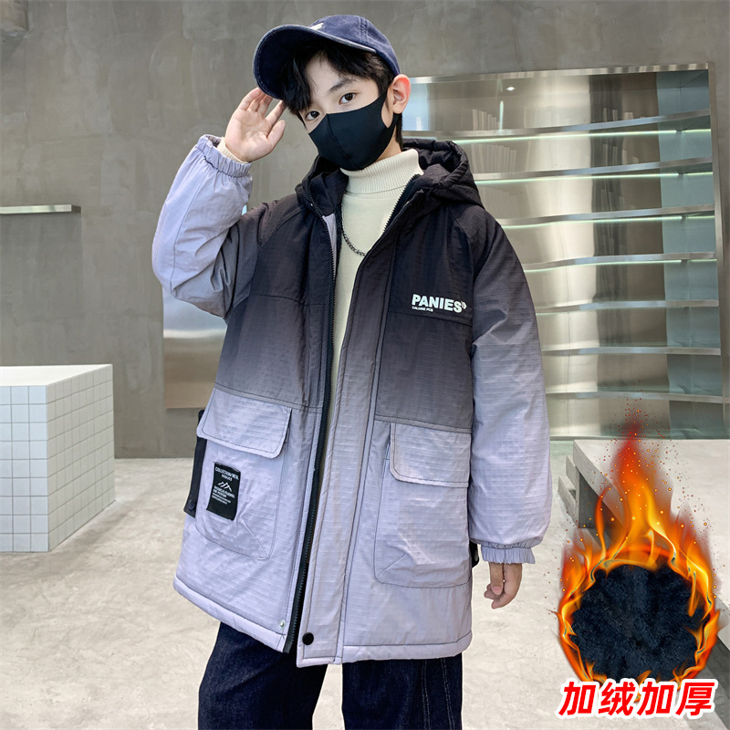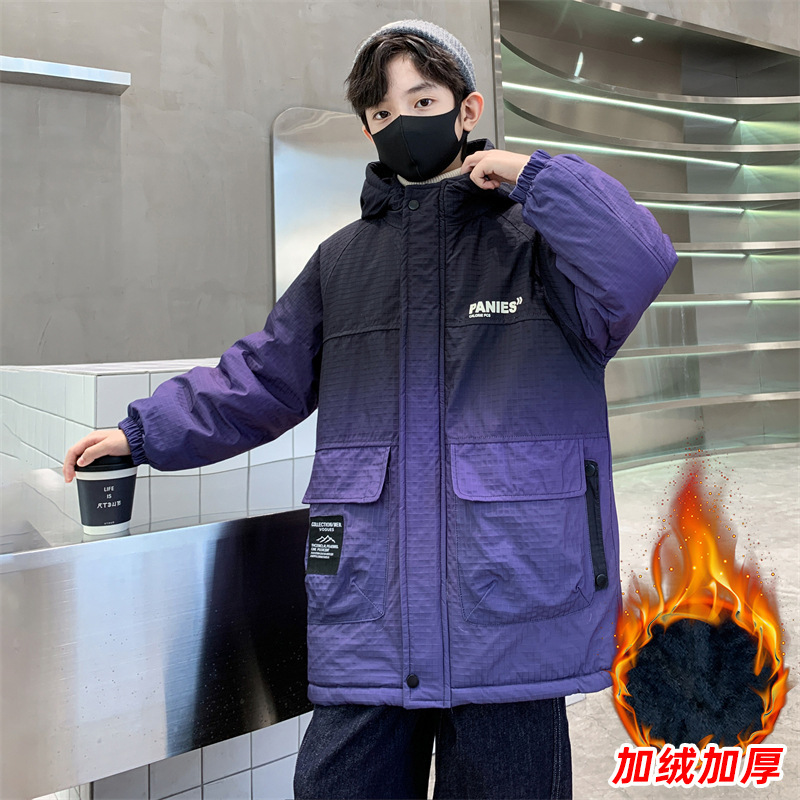 남학생 겨울 코트 2024 새로운 cuhk 어린이 가을과 겨울 기모 겨울 파커 두꺼운 잘 생긴 면화 패딩 코트