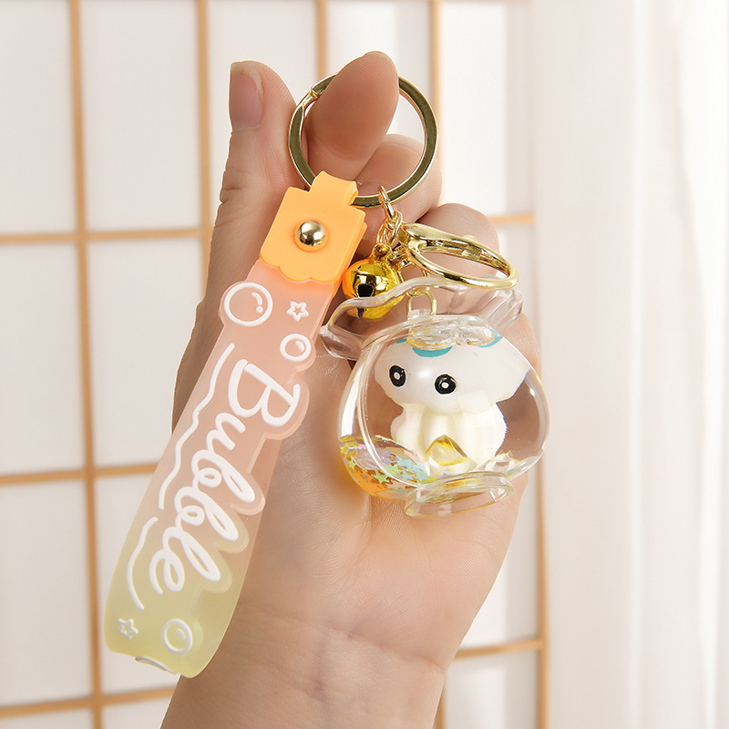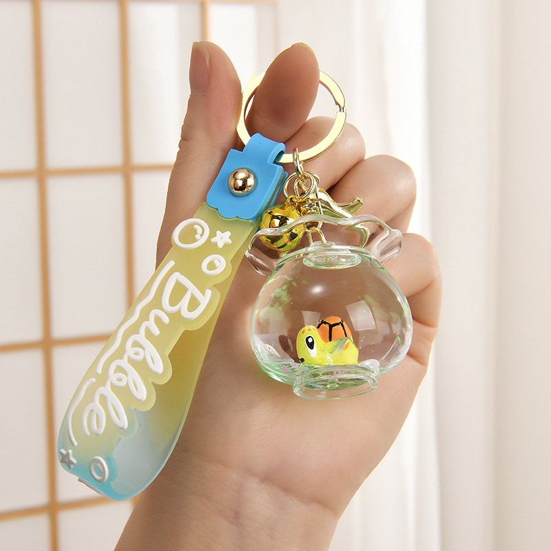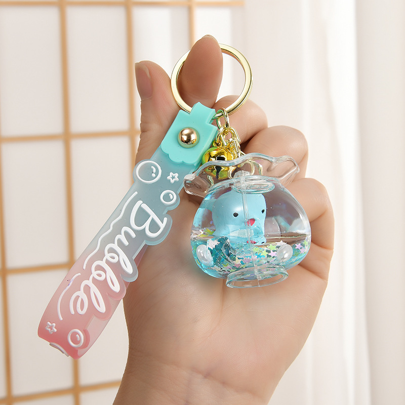 인터넷 유명한 기름 병 뜨거운 물고기 탱크 해양 동물 열쇠 고리 퀵 샌드 오일 병 책상 액세서리 가방 펜던트스토어 가기