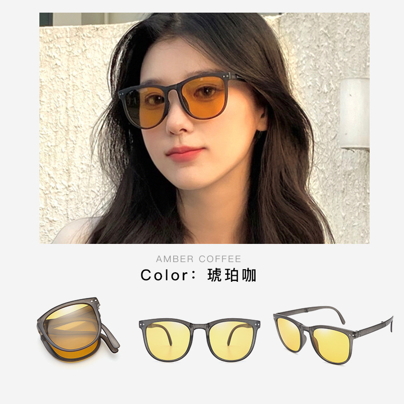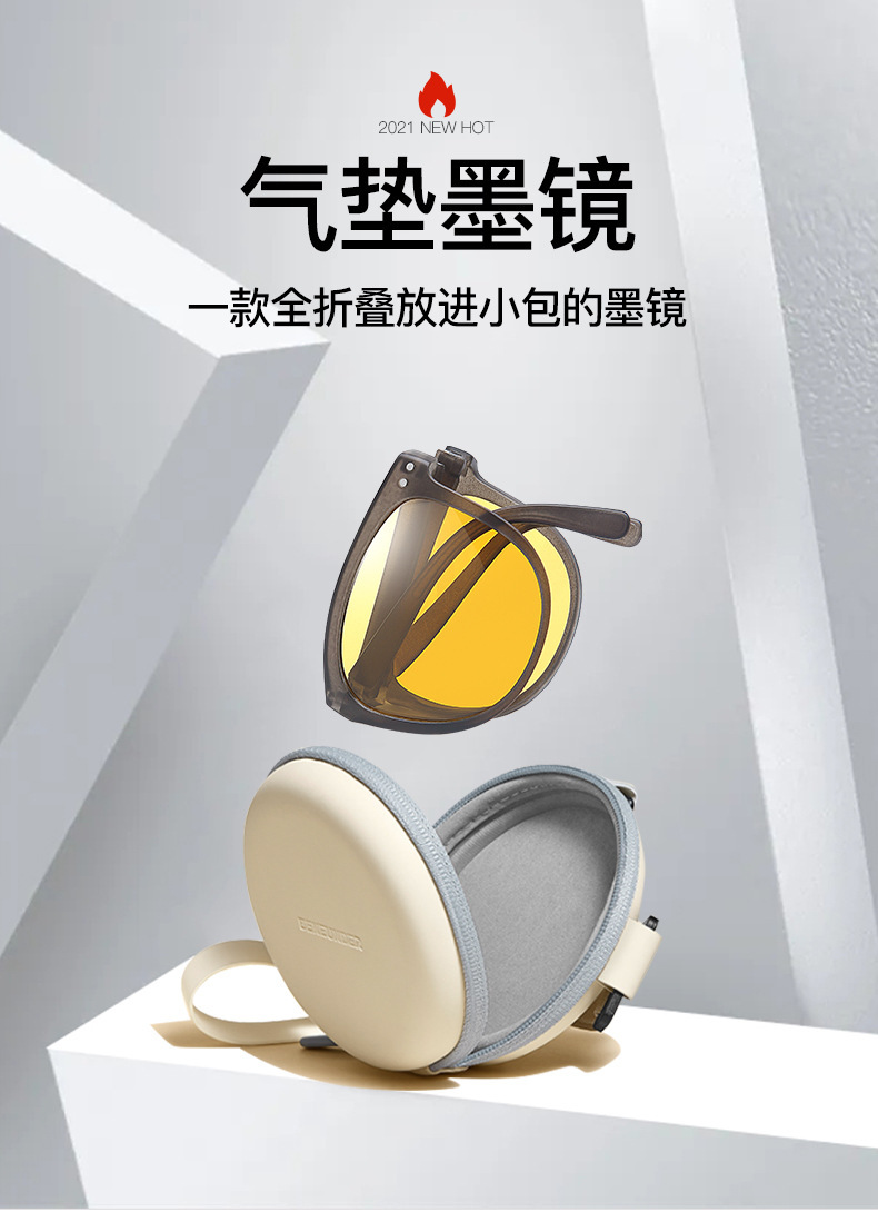 새로운 접는 선글라스 편광 된 여성 공기 쿠션 쉬운 저장 높은 질감 유행 운전 안티-UV 안경스토어 가기