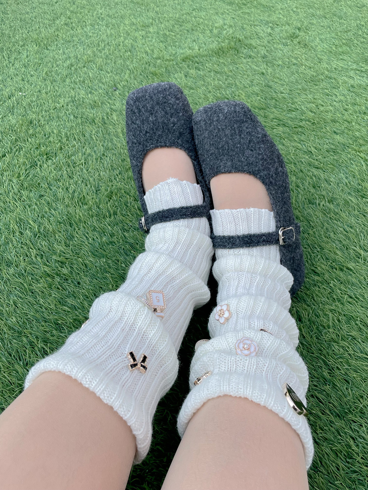 표준 솔리드 컬러 다리 세트 가을과 겨울 YK2 울 수직 패턴 넓은 다리 세트 달콤한 중간 튜브 스택 양말