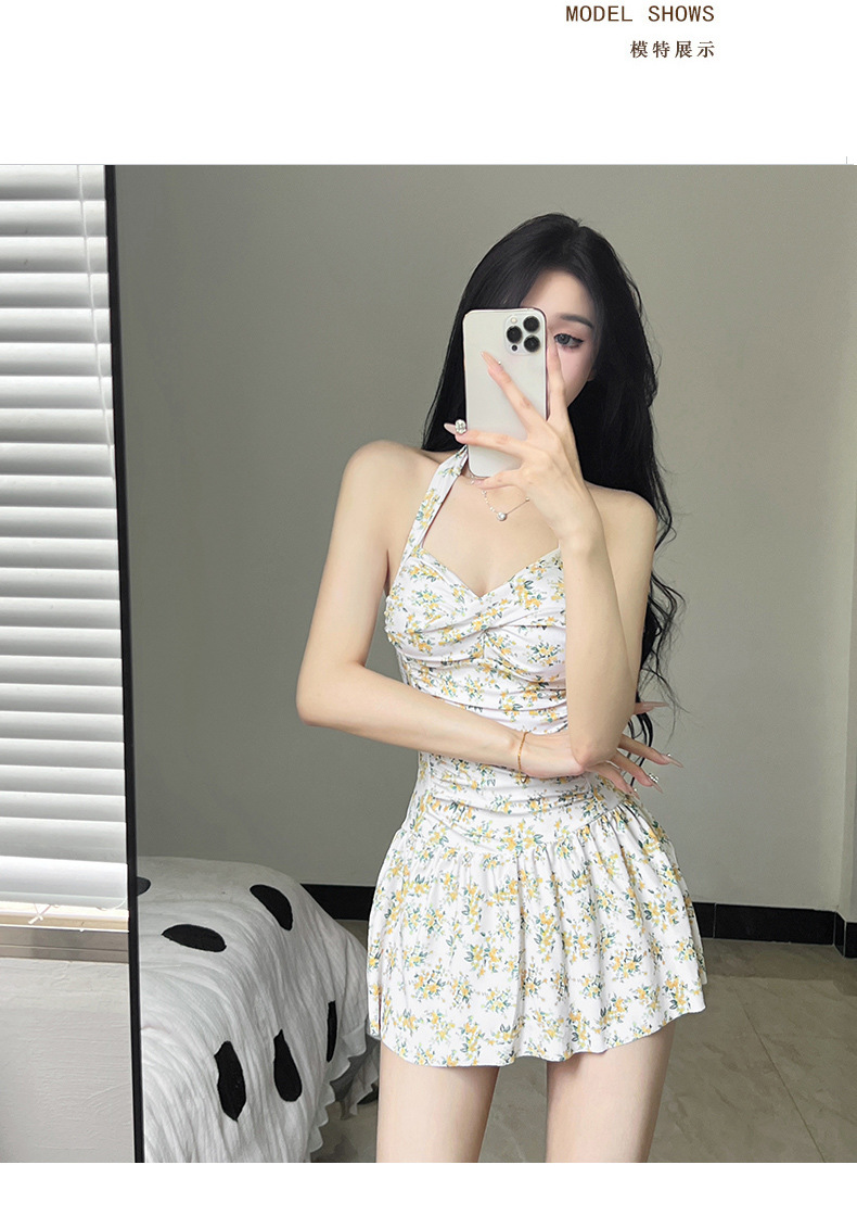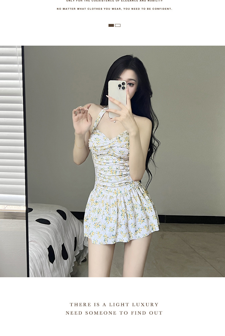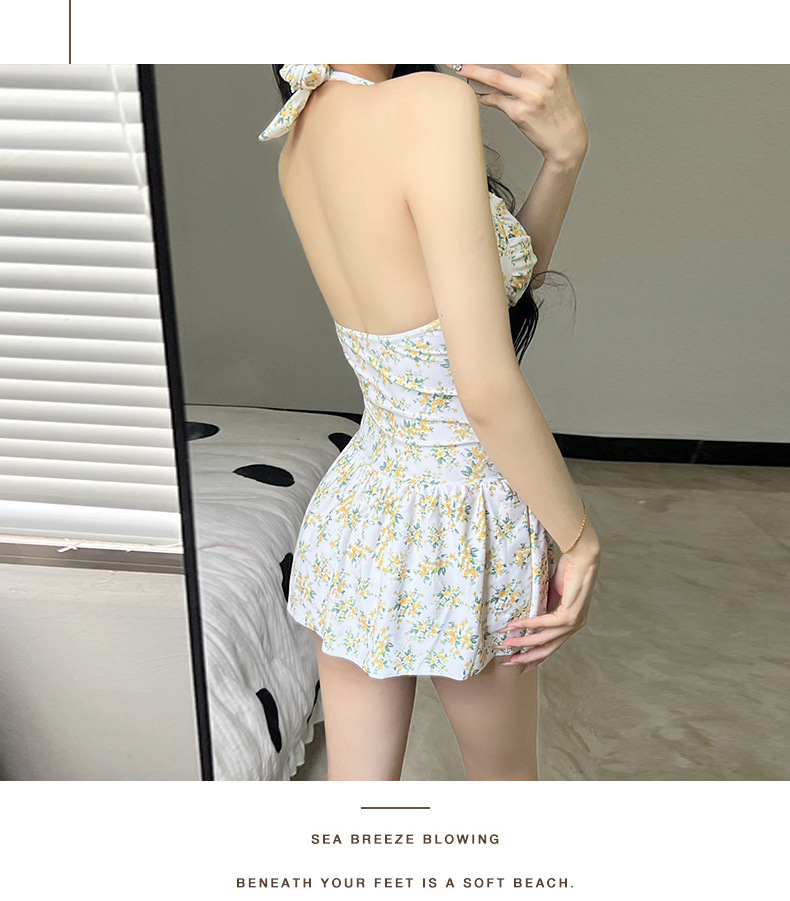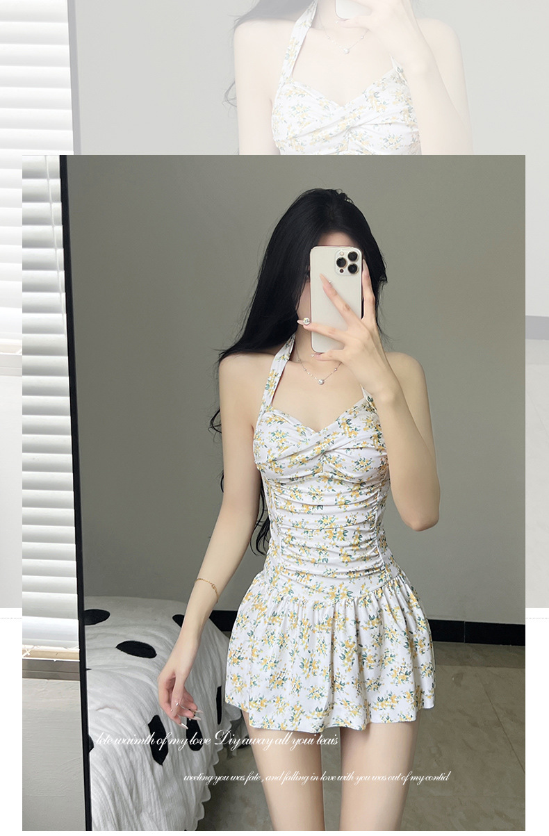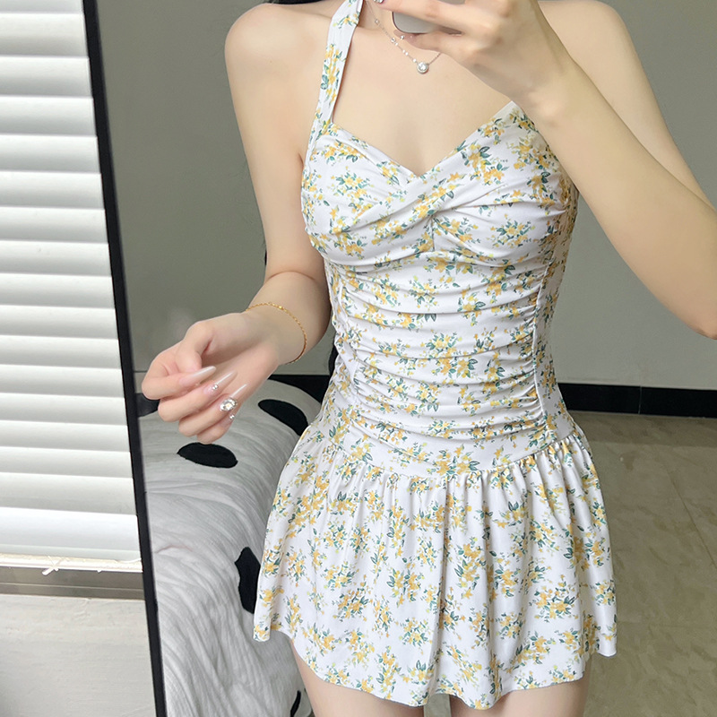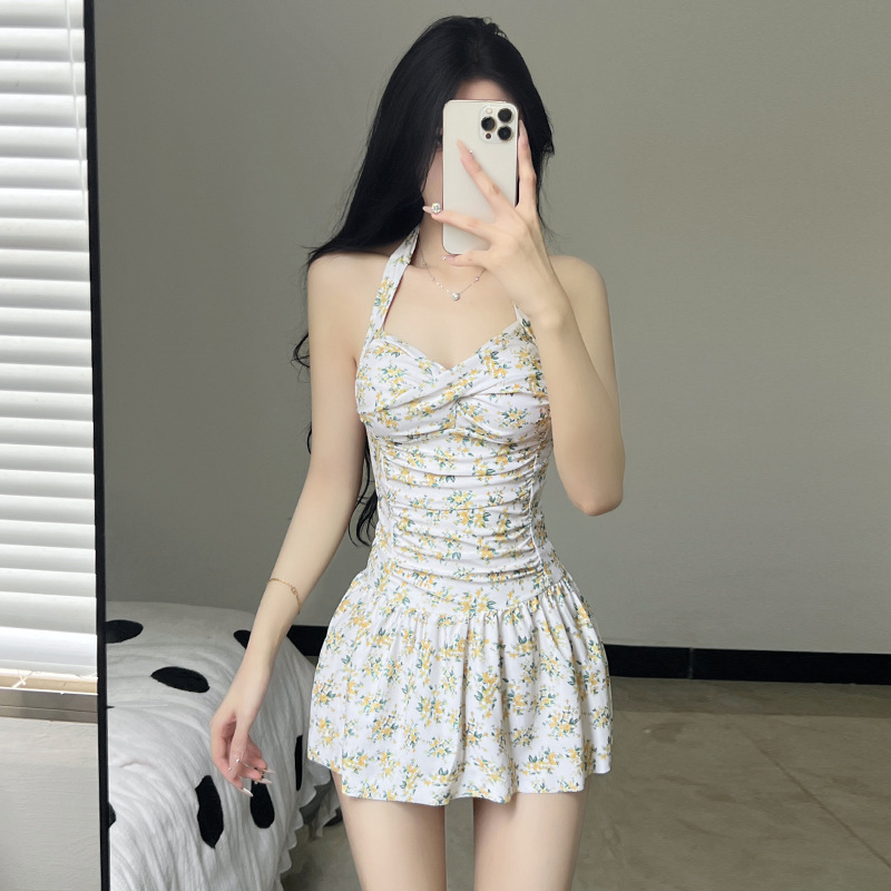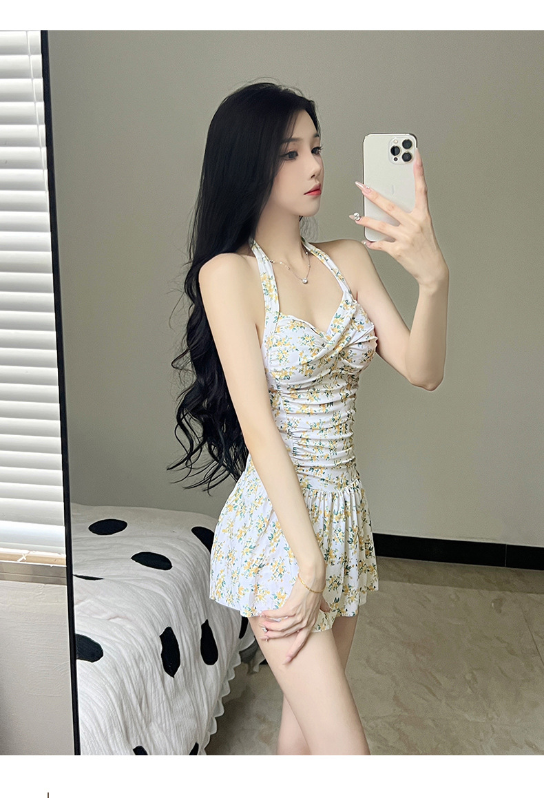 수영복 여성 2025 년 새 섹시 넥 원피스 스커트 육체 커버 슬리밍 나비 인쇄 일본과 한국 스타일 온천 수영복스토어 가기