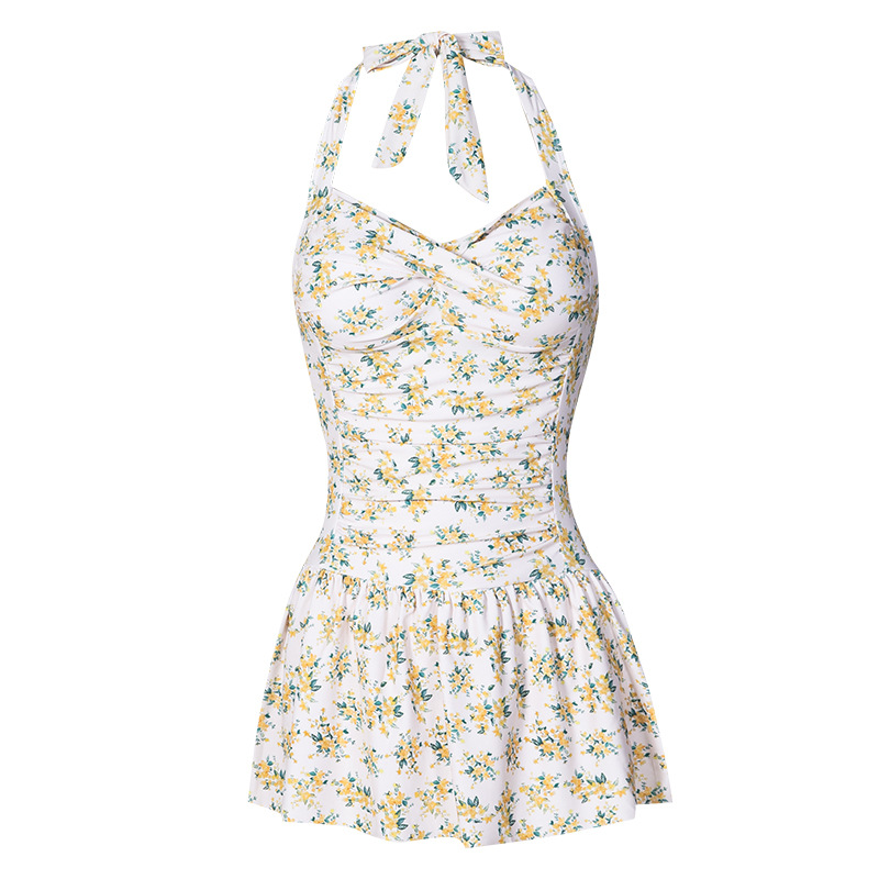 수영복 여성 2025 년 새 섹시 넥 원피스 스커트 육체 커버 슬리밍 나비 인쇄 일본과 한국 스타일 온천 수영복