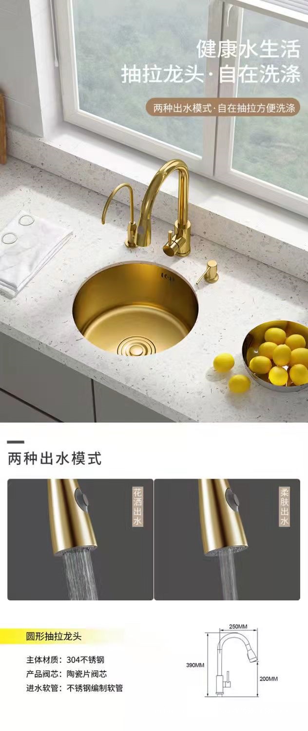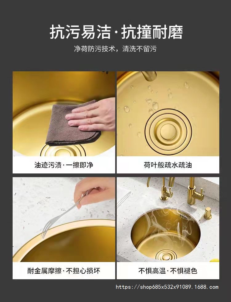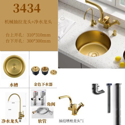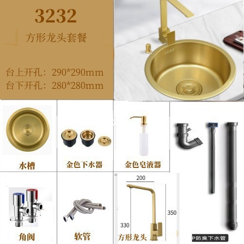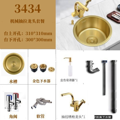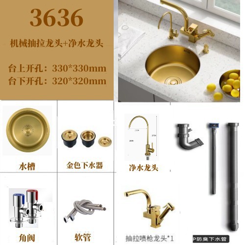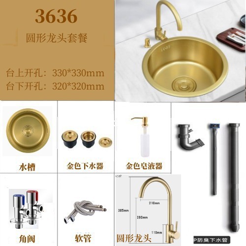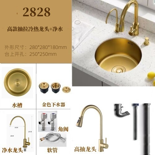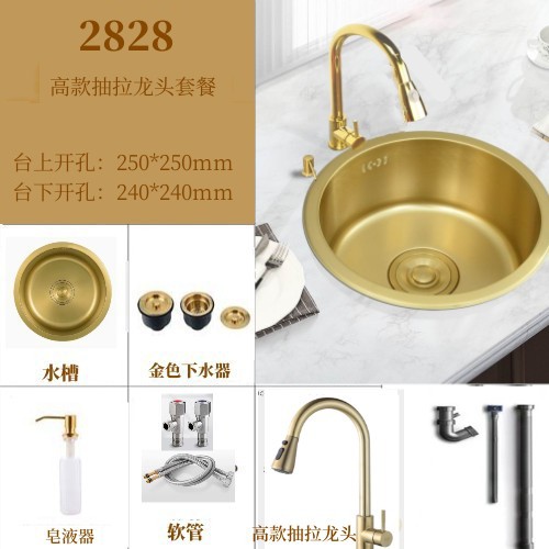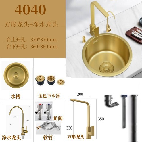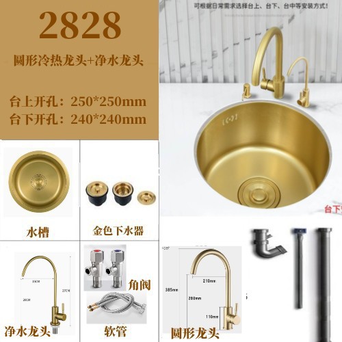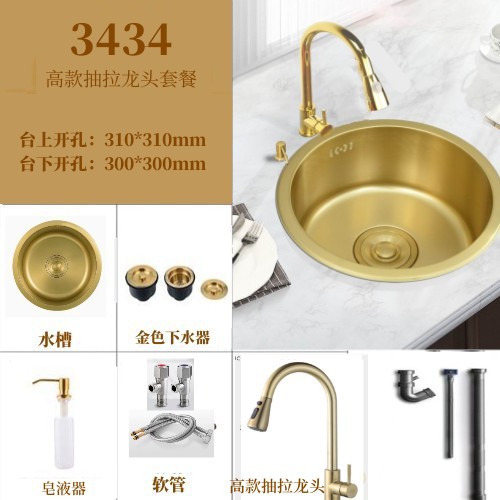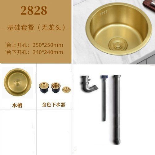 골든 나노 라운드 싱크 싱글 싱크 미니 스몰 사이즈 스테인레스 스틸 바 발코니 주방 야채 세척 분지스토어 가기