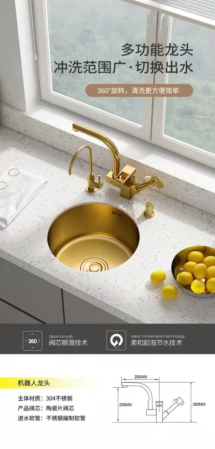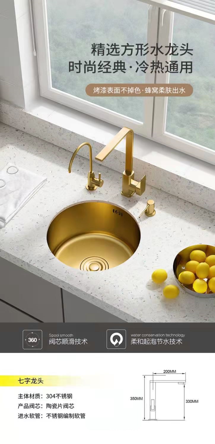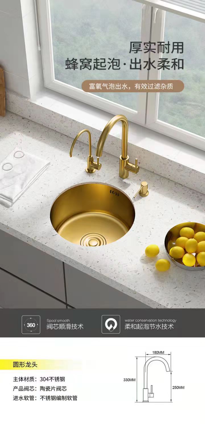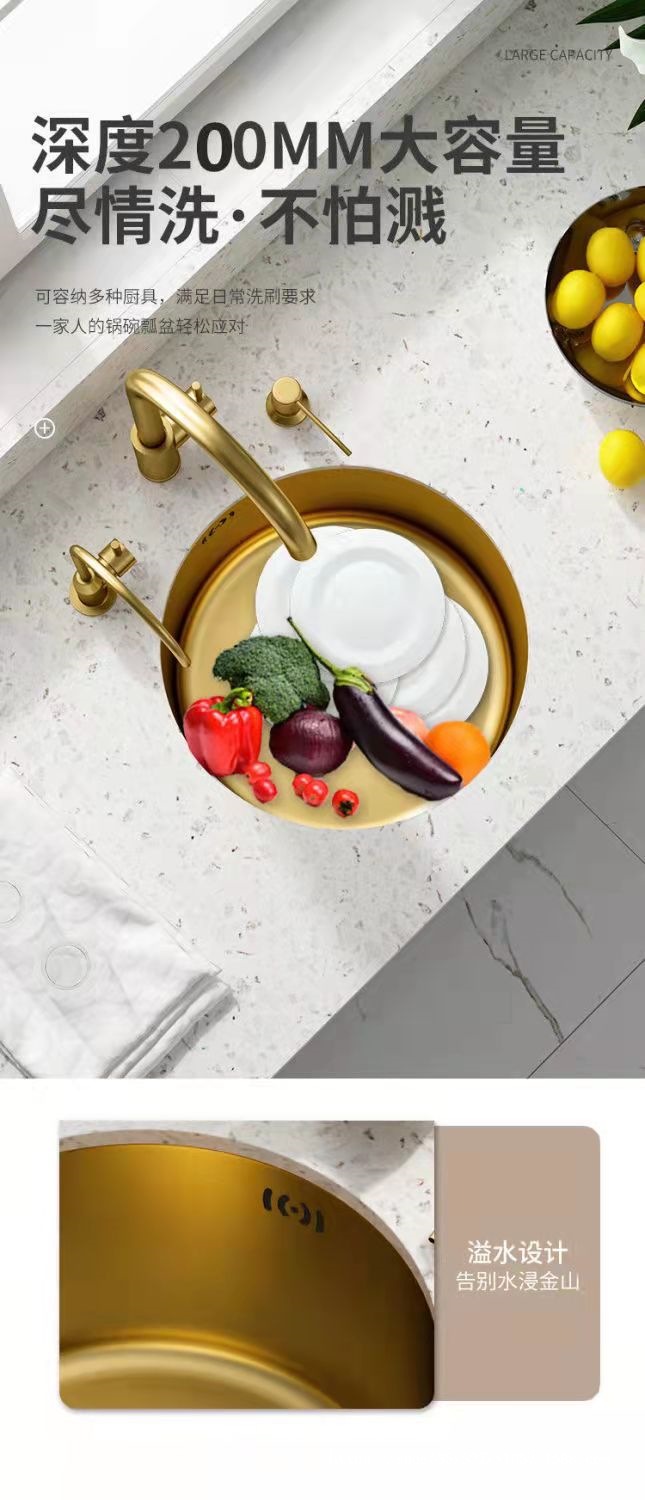 골든 나노 라운드 싱크 싱글 싱크 미니 스몰 사이즈 스테인레스 스틸 바 발코니 주방 야채 세척 분지