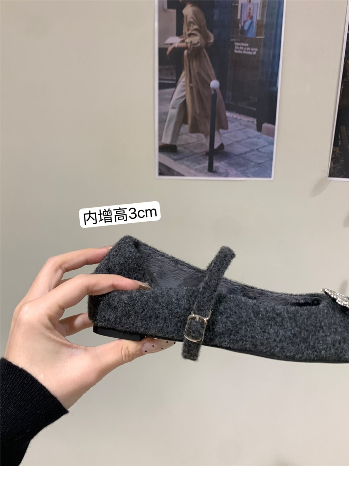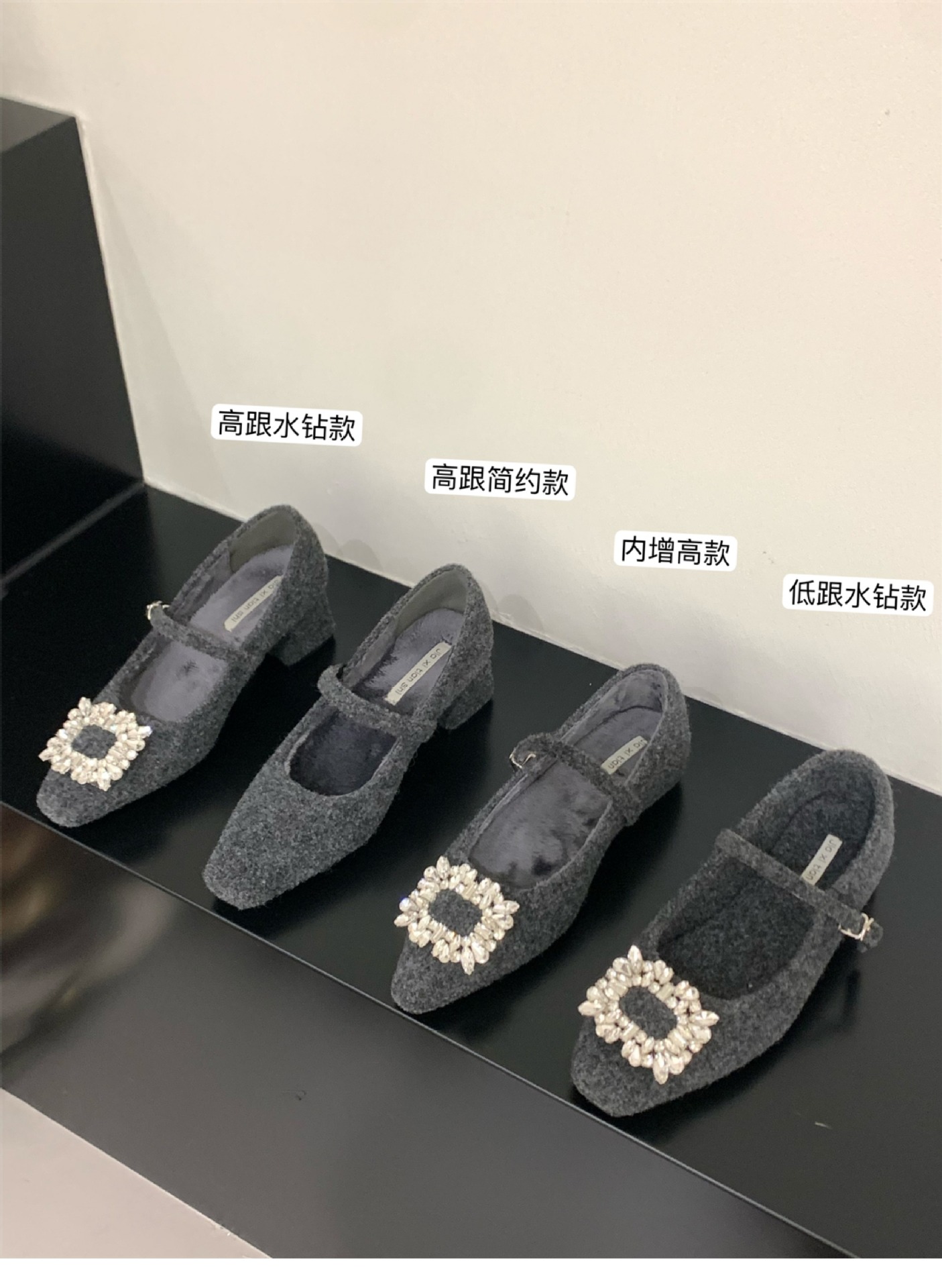 프랑스 하이힐 그레이 스퀘어 헤드 라인 스톤 신발 여성 신발 2024 가을과 겨울 기모 저녁 메리 제인 마오 마오 신발스토어 가기
