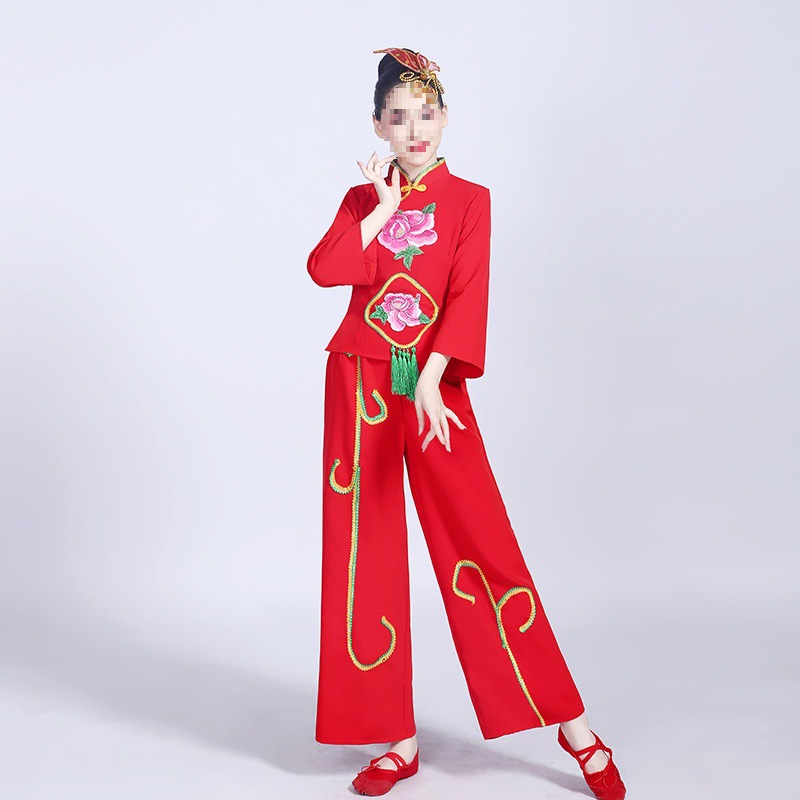 2024 새로운 스타일 공연 의상 여성 양코 댄스 의상 허리 팬 댄스 성인 중년 및 노인 스퀘어 댄스 세트