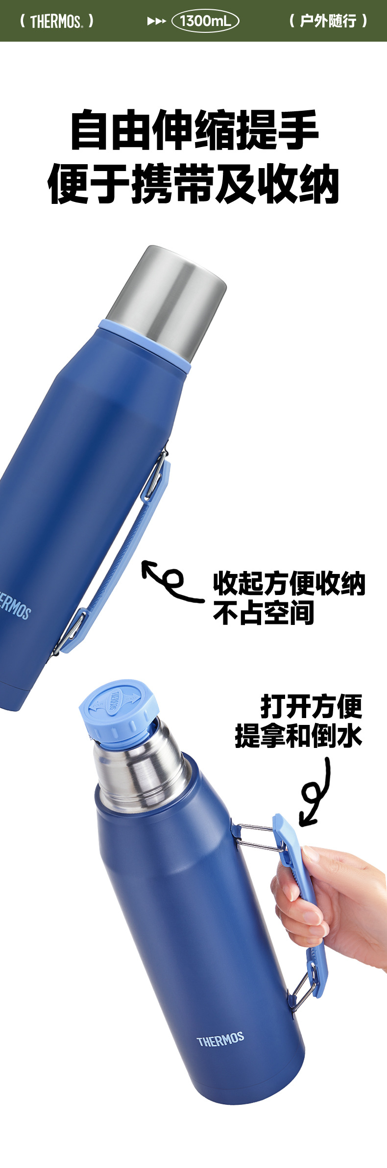 보온병 큰 용량 보온병 TSKP-1300 간단한 휴대용 여행 자동차 캠핑 보온병 주전자스토어 가기